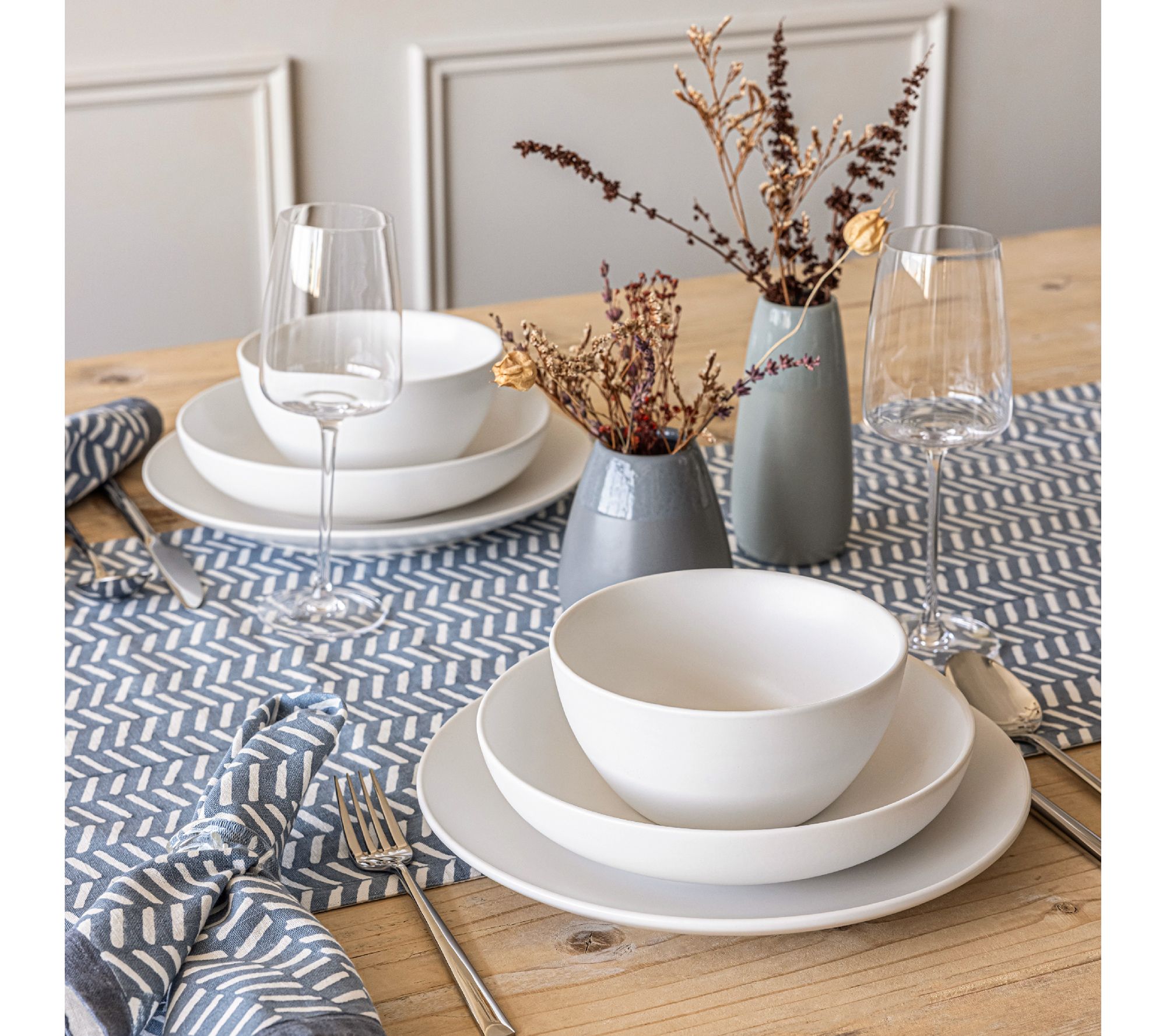 Set a beautiful table with the over&back coupe 12-piece semi-matte stoneware dinnerware set. With a modern blend of classic and contemporary designs, these dishes are perfect for everyday use or entertaining guests. From Over&Back.