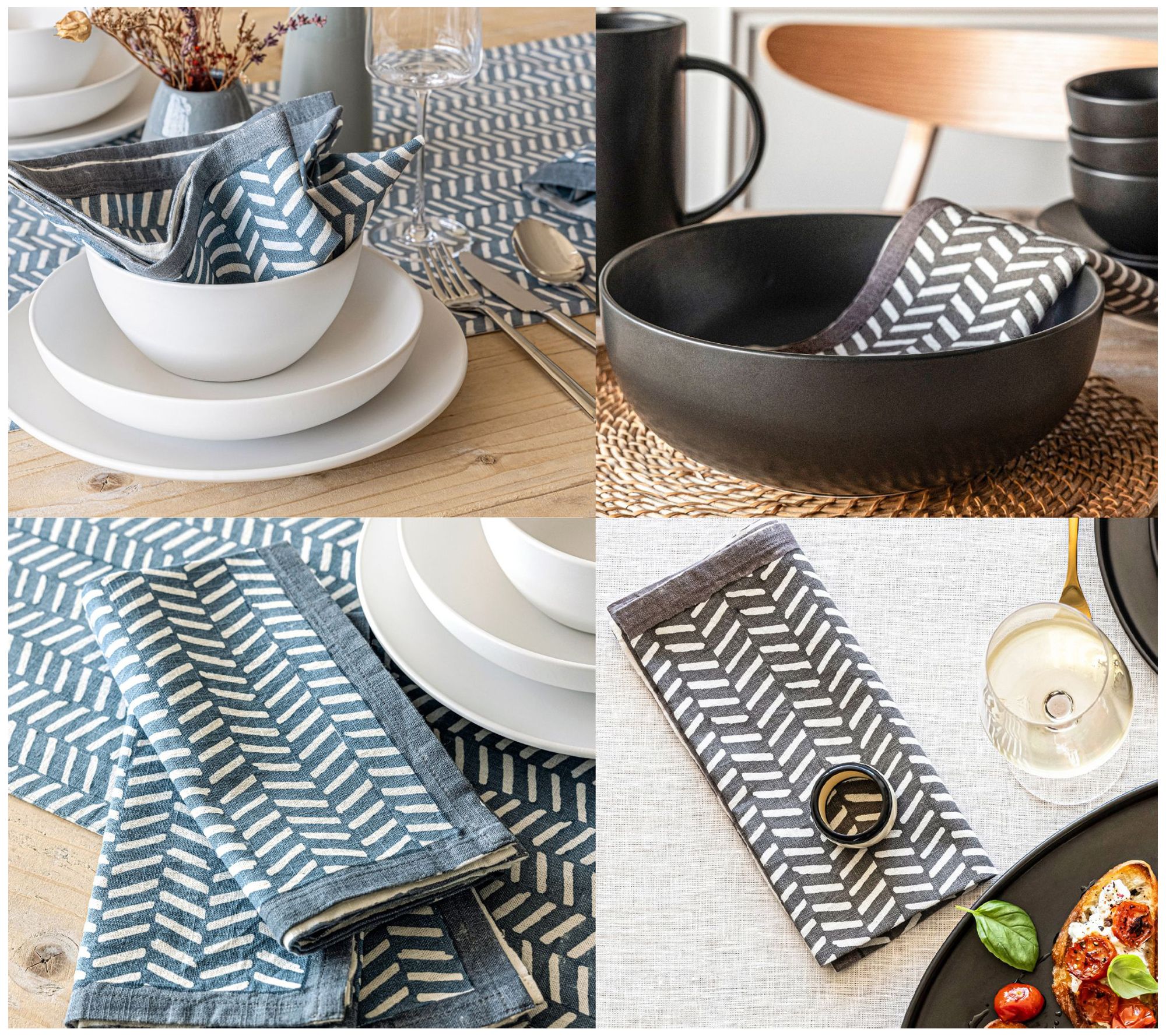 Enhance your dining experience with overback's Hand-Blocked Printed Cotton Cloth Napkins. Each set includes four napkins, meticulously crafted by artisans using hand-carved wood blocks to create unique, charming designs. Mix and match with other hand-blocked prints or woven stripes for a personalized table setting. From overback.