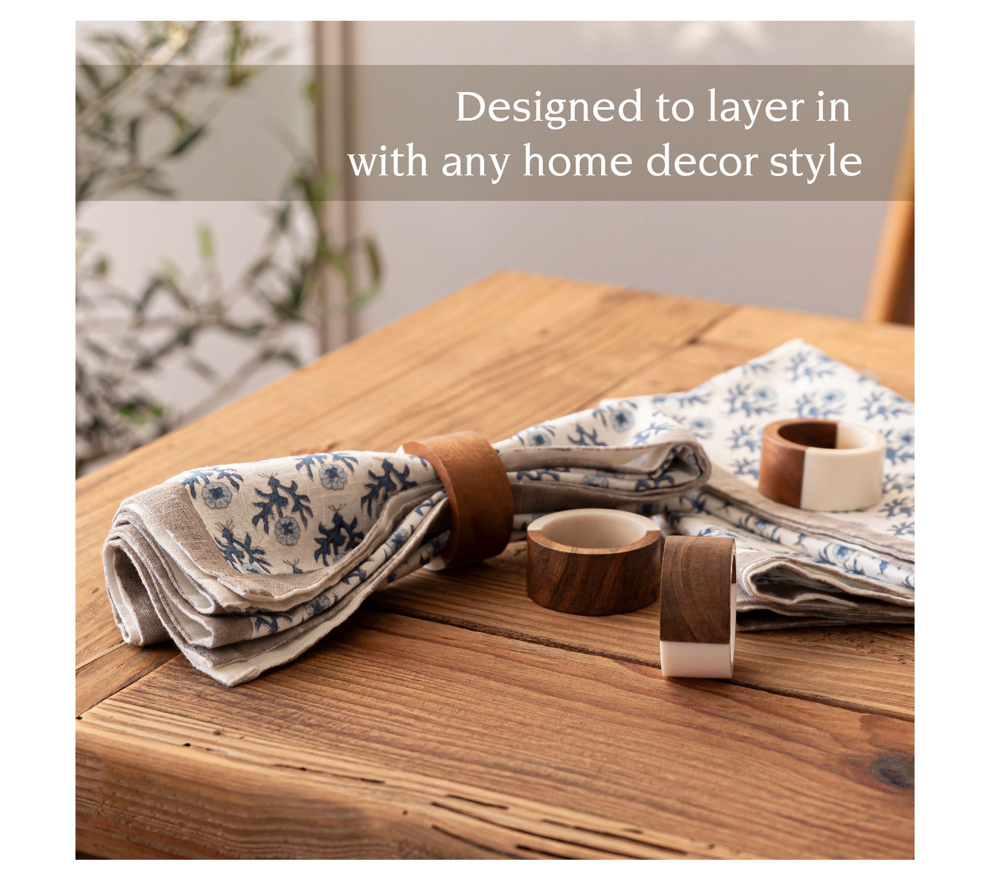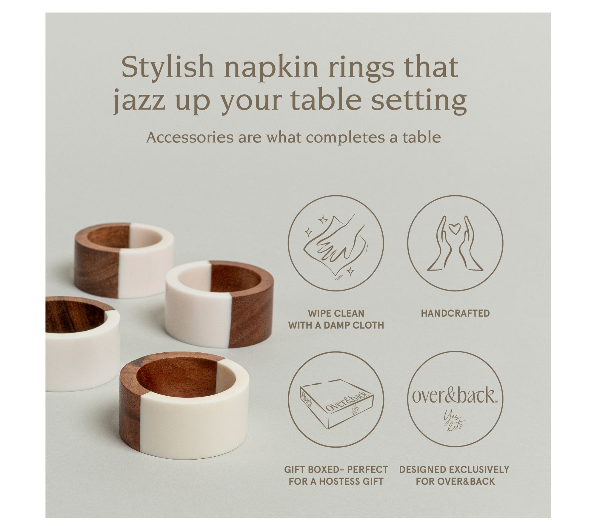Make every meal feel special with these charming napkin rings from Over & Back. Crafted from resin and wood, they bring an elegant touch to any table setting. Whether for a casual family meal or a formal dinner party, these napkin rings elevate your dining experience and make it easy to create a memorable tablescape. From overandback.