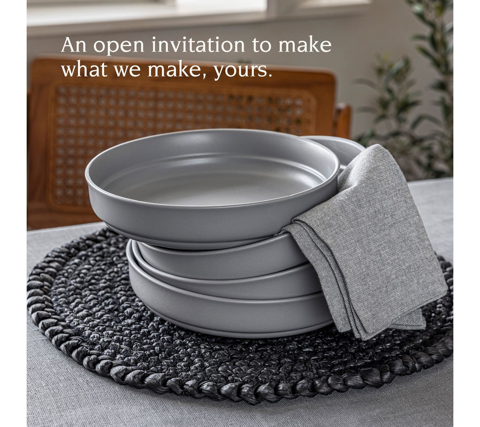 Over&Back rimmed semi-matte stoneware dinner bowls bring an elegant yet versatile style to your dining table. These bowls are perfect for mixing and matching, giving you the freedom to create your unique tablescape. From Over&Back.