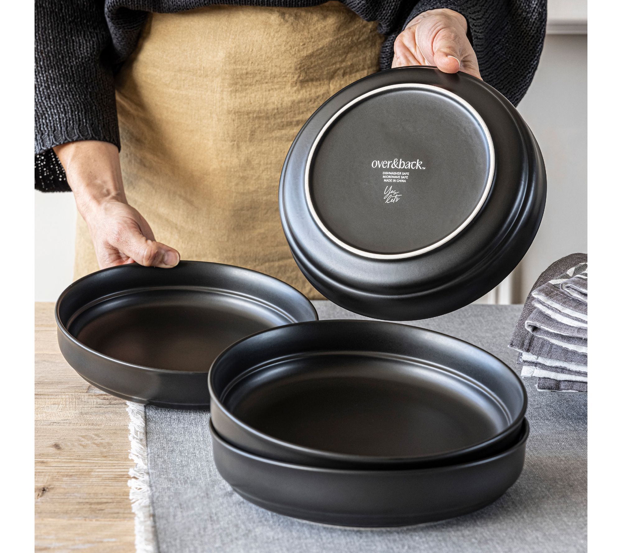 over&back Rimmed 32oz Semi-Matte Stoneware Dinner Bowls