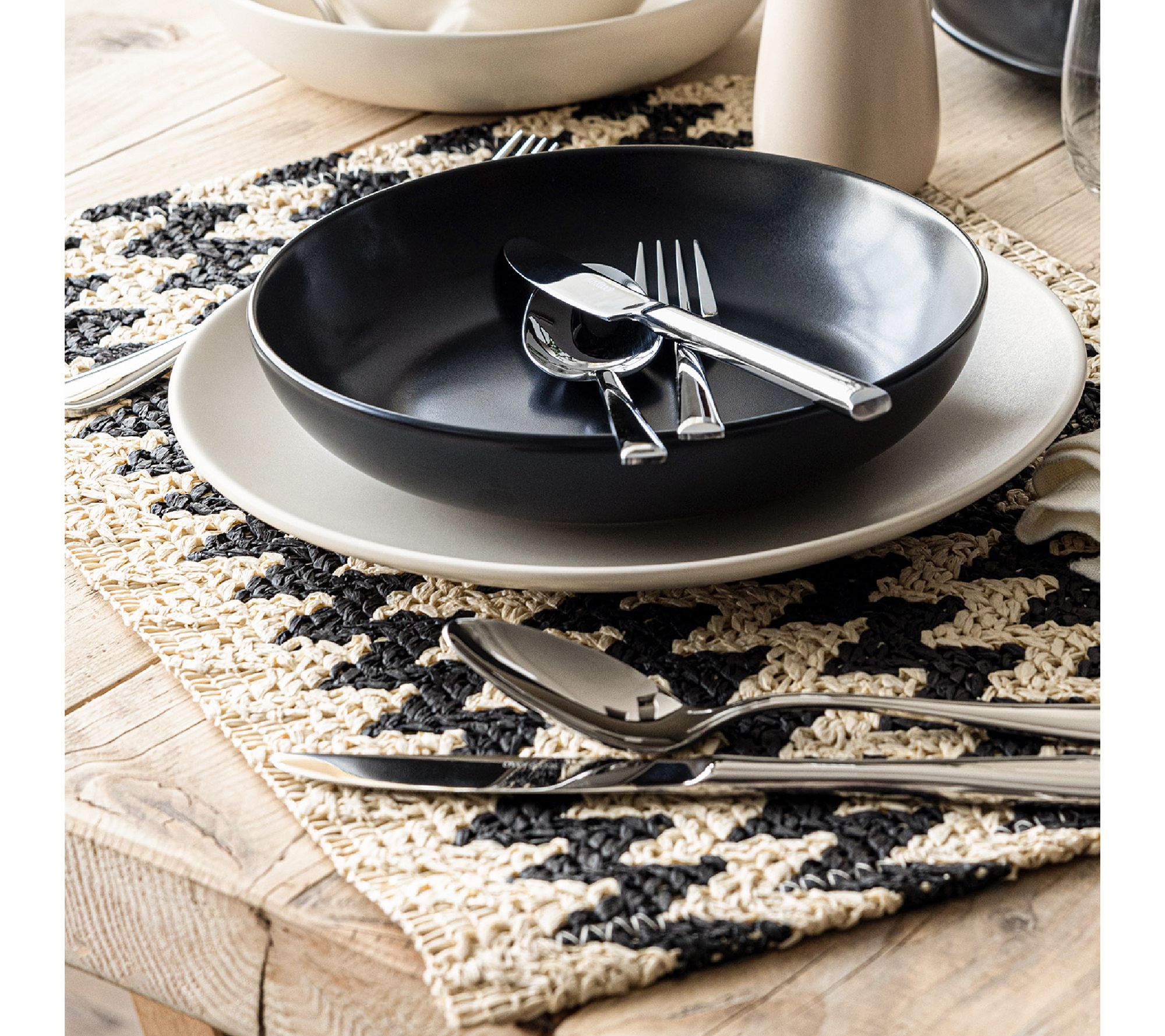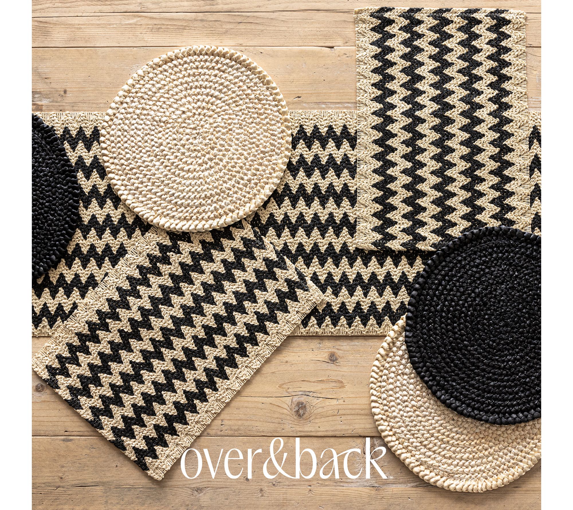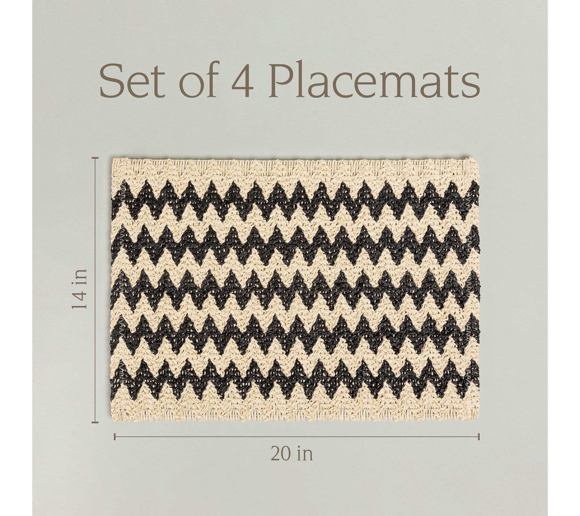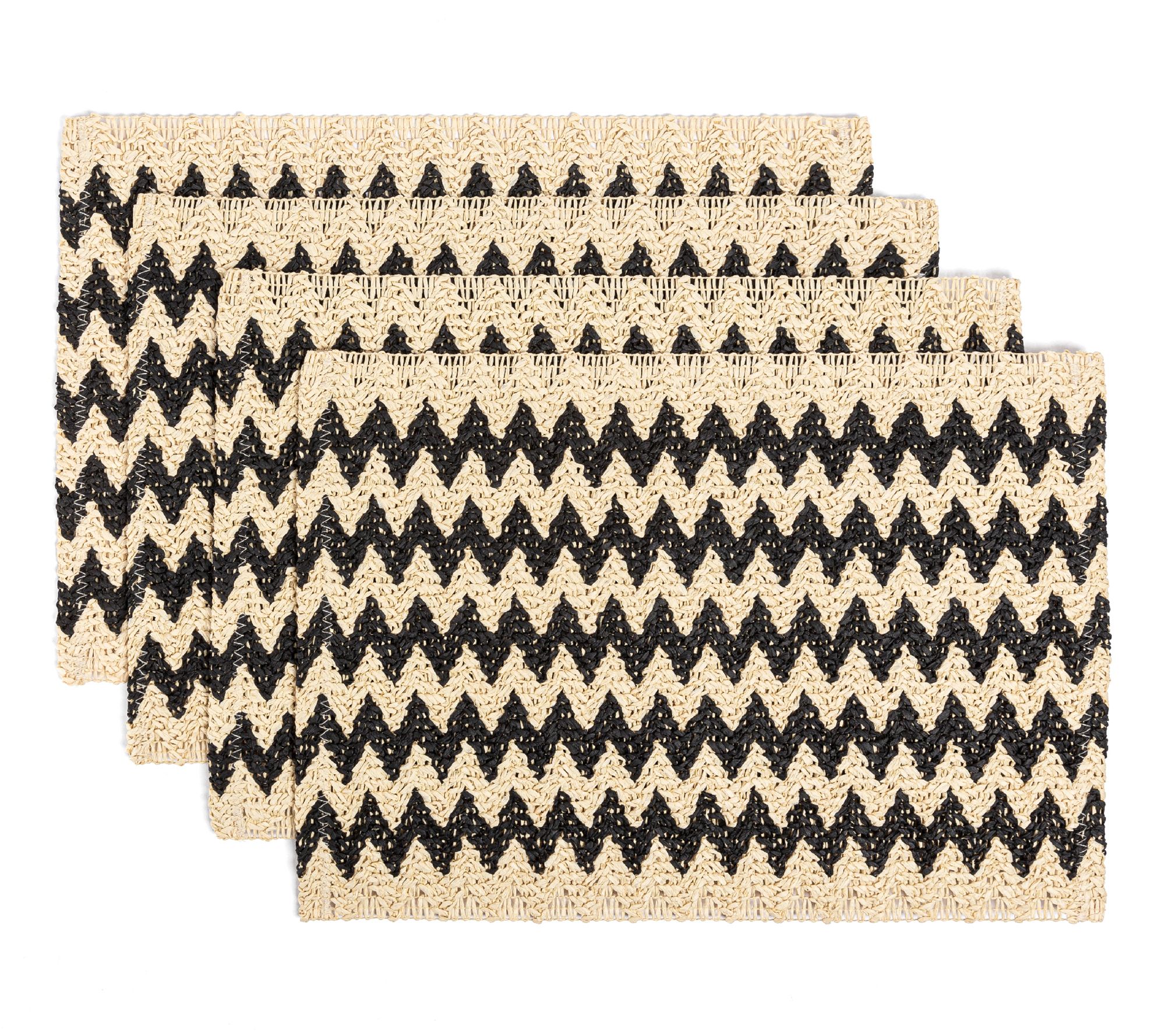 over&back Set of 4 Woven Fiber Placemats - Chevron - Black