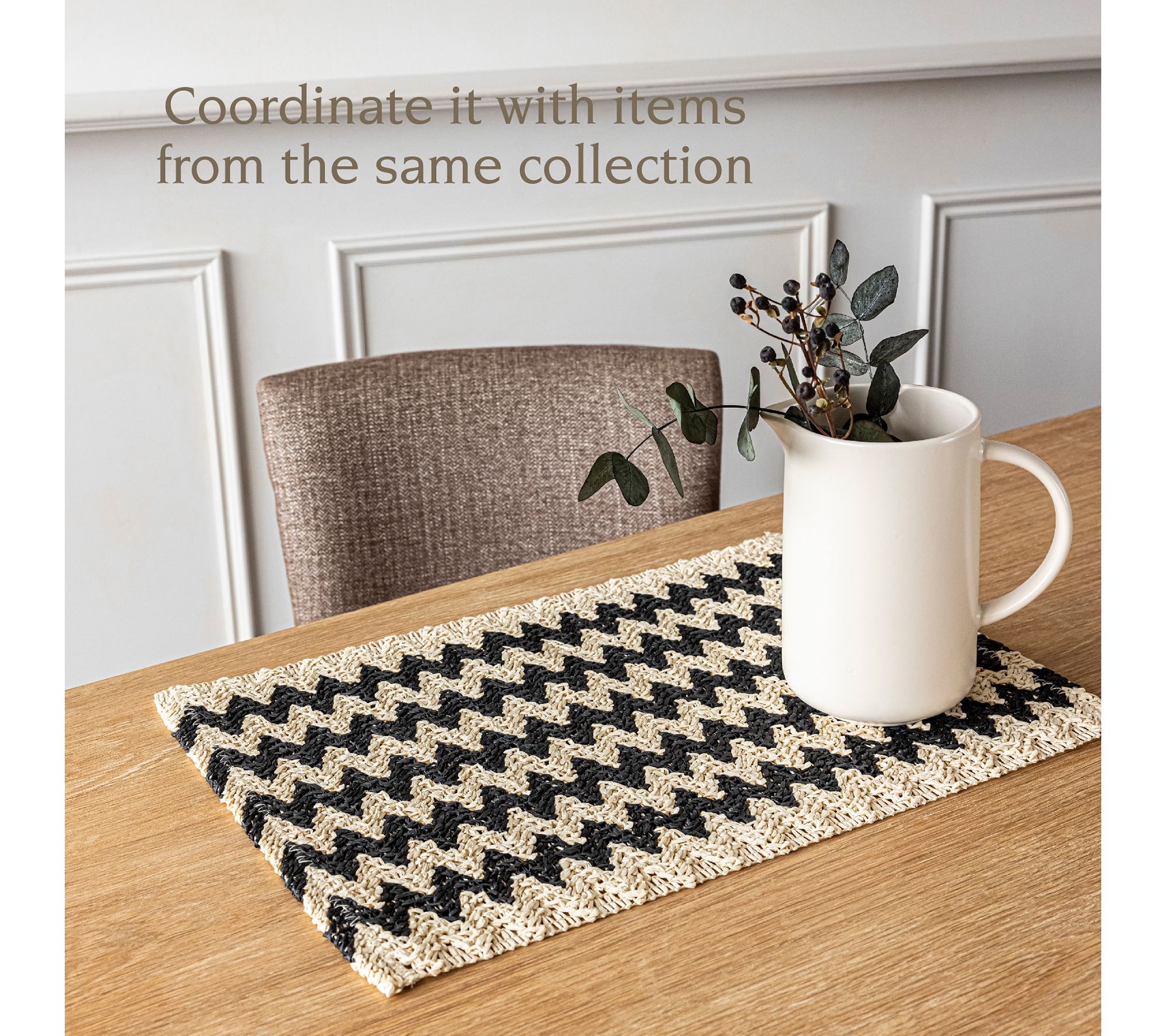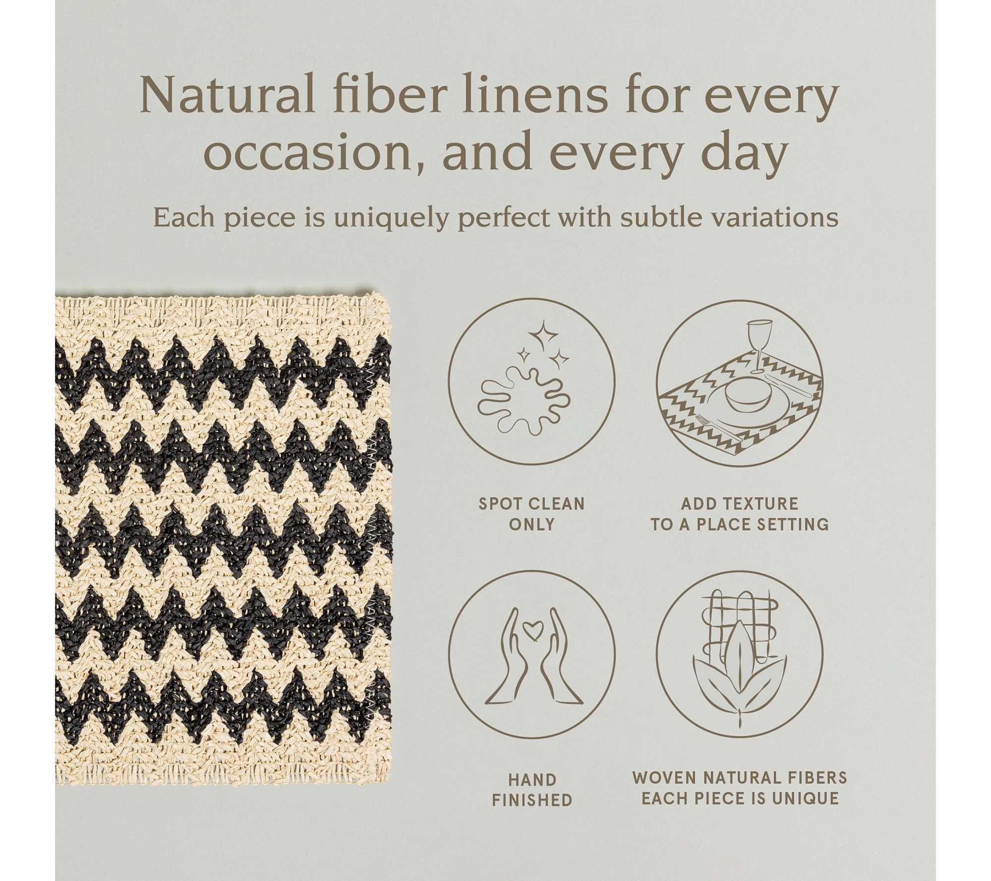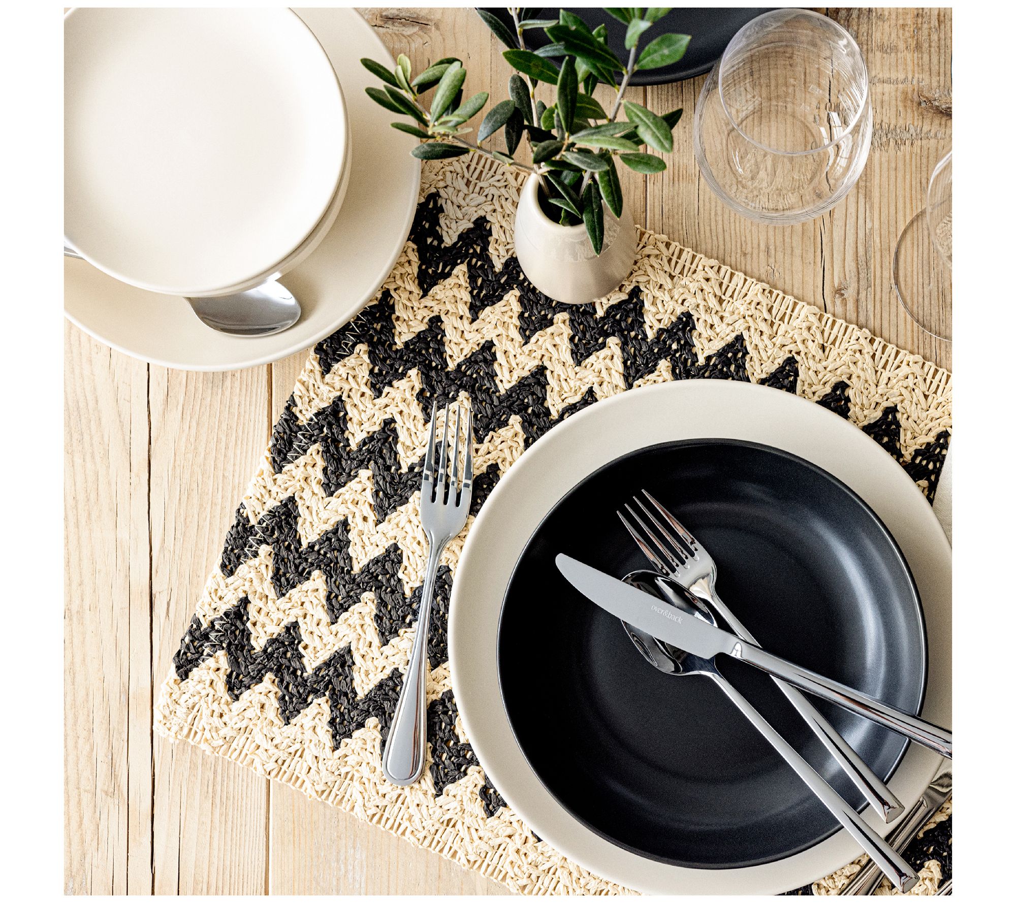 Elevate your dining experience with the overback set of four woven fiber placemats in a chic chevron pattern. Perfectly sized to protect and decorate your table, these placemats bring a touch of contemporary elegance to any meal. From over&back.