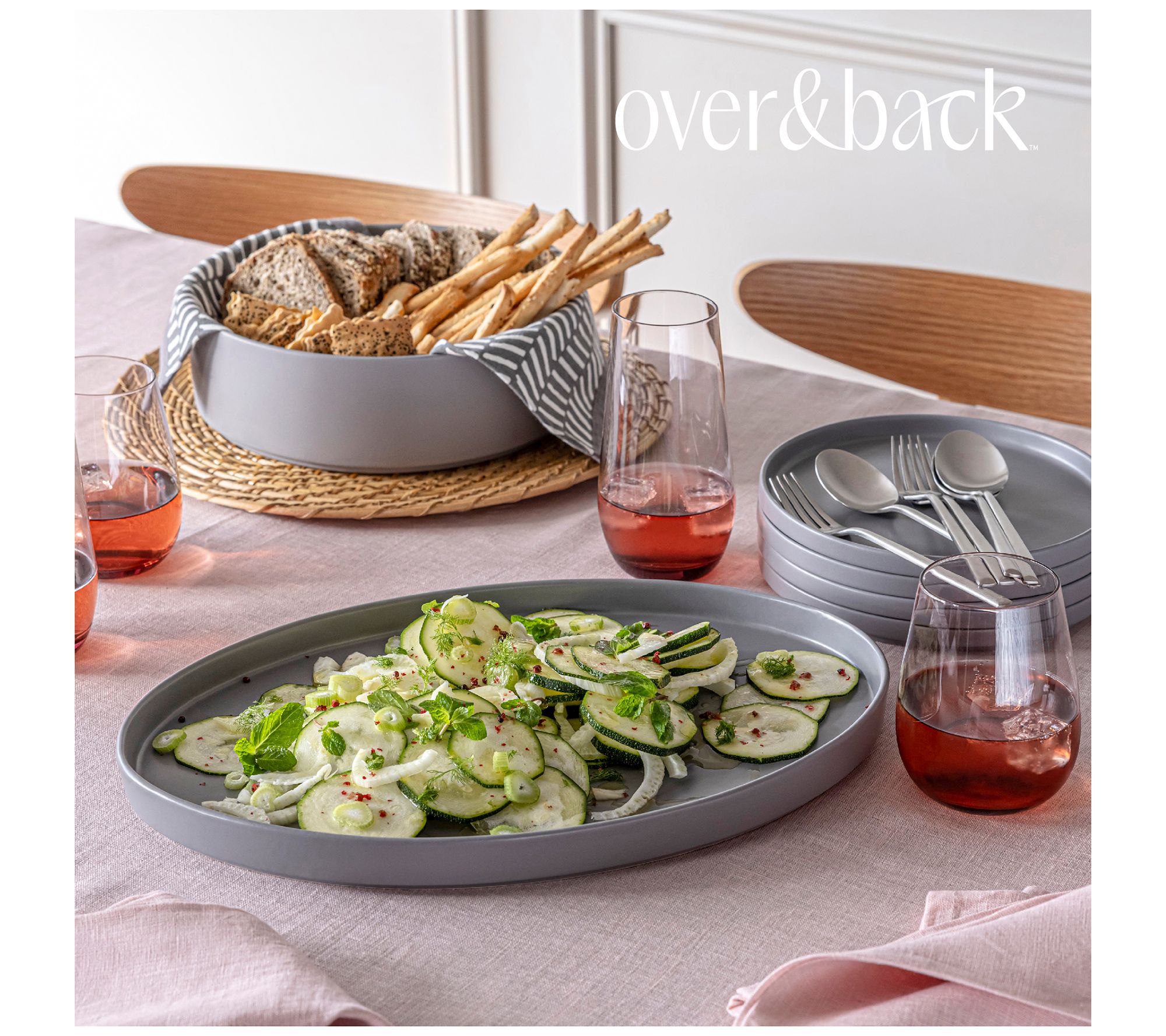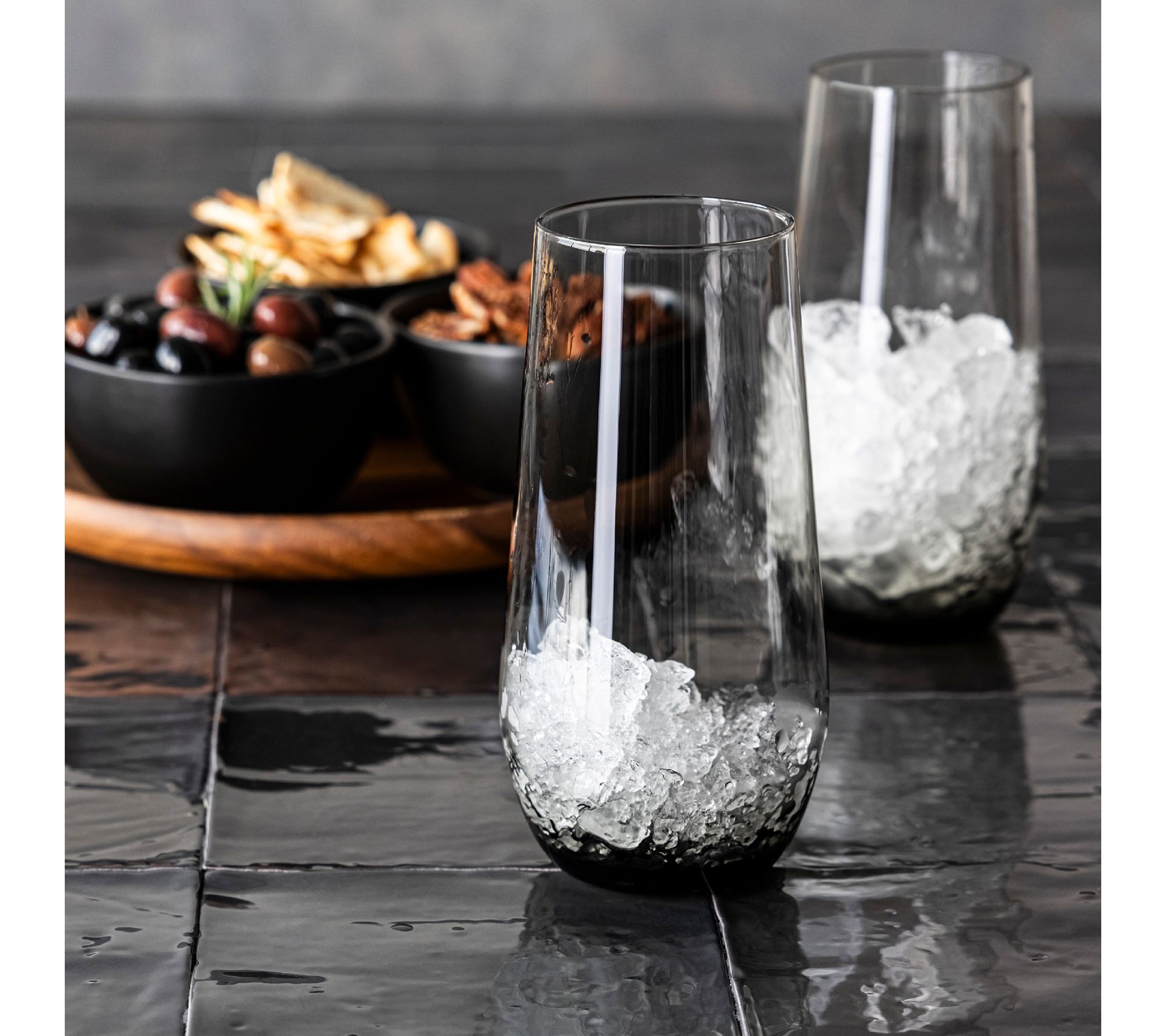 Create memorable moments with friends and family using these stylish stemless glasses. Perfect for various beverages, enjoy the high-quality craft that exudes elegance and charm at any gathering. From over&back.