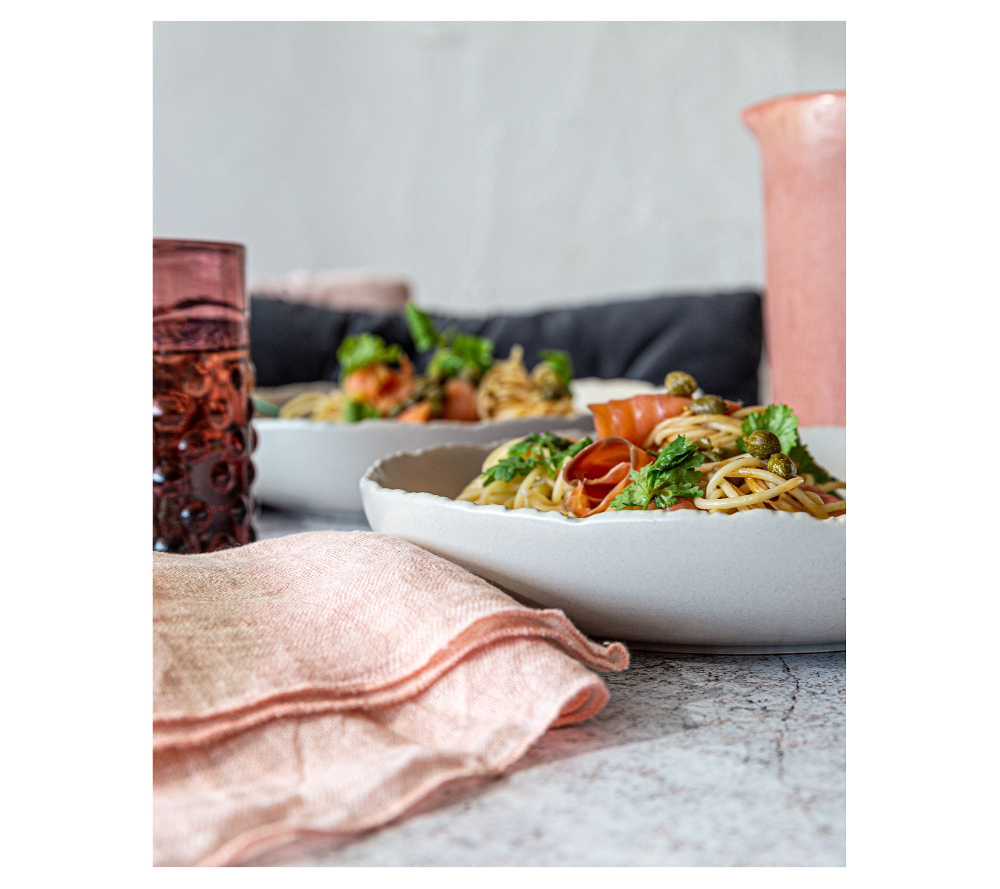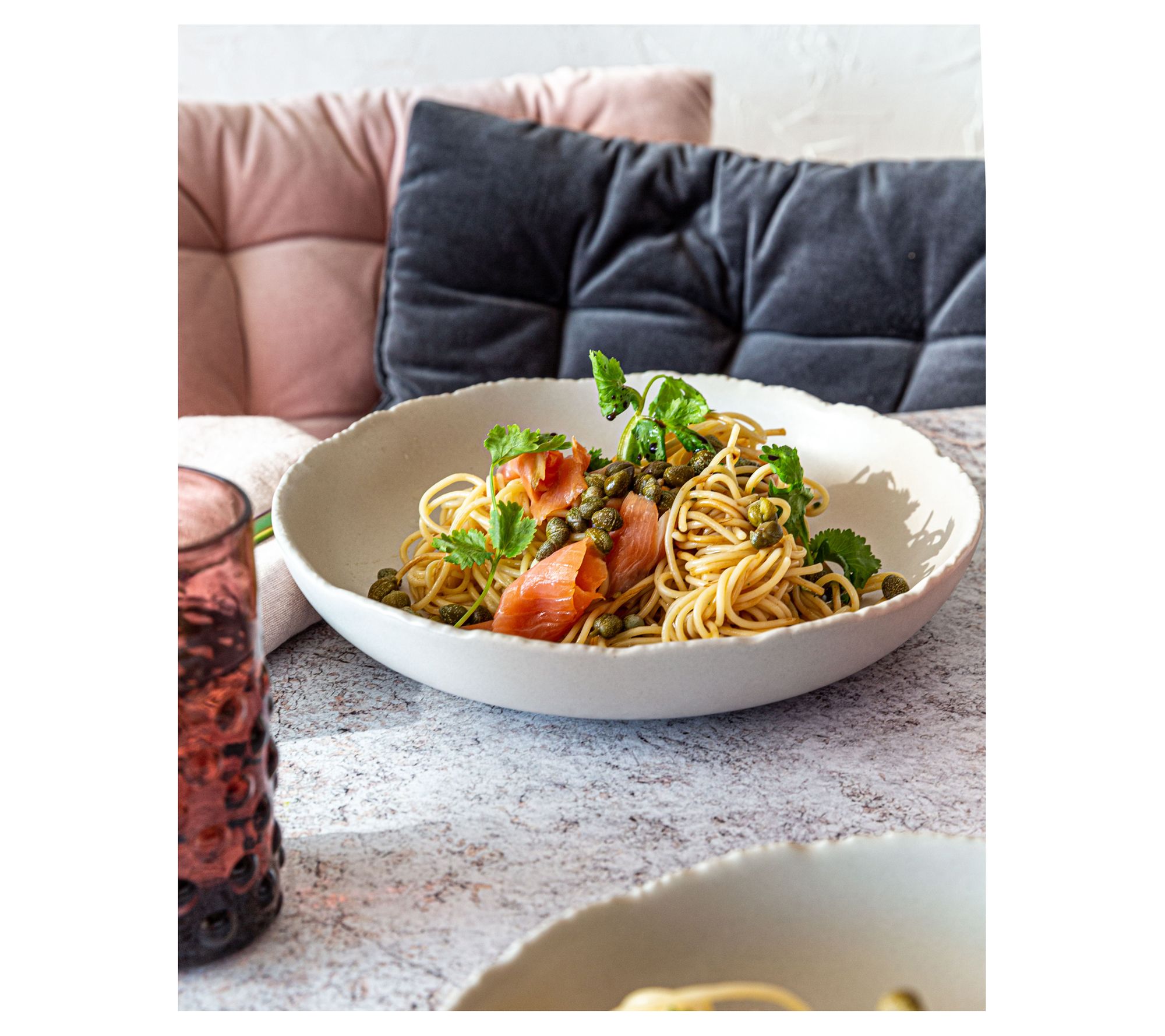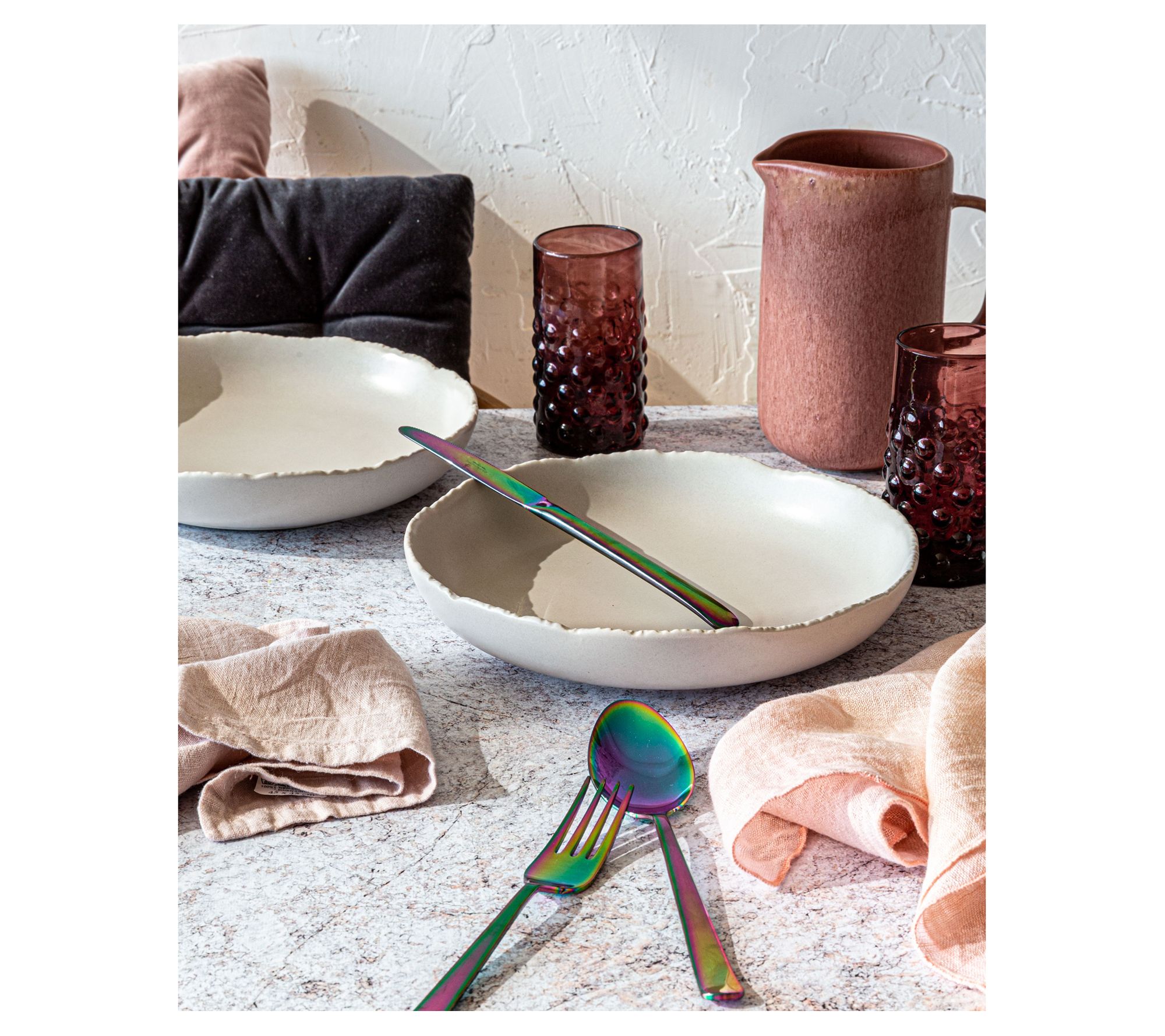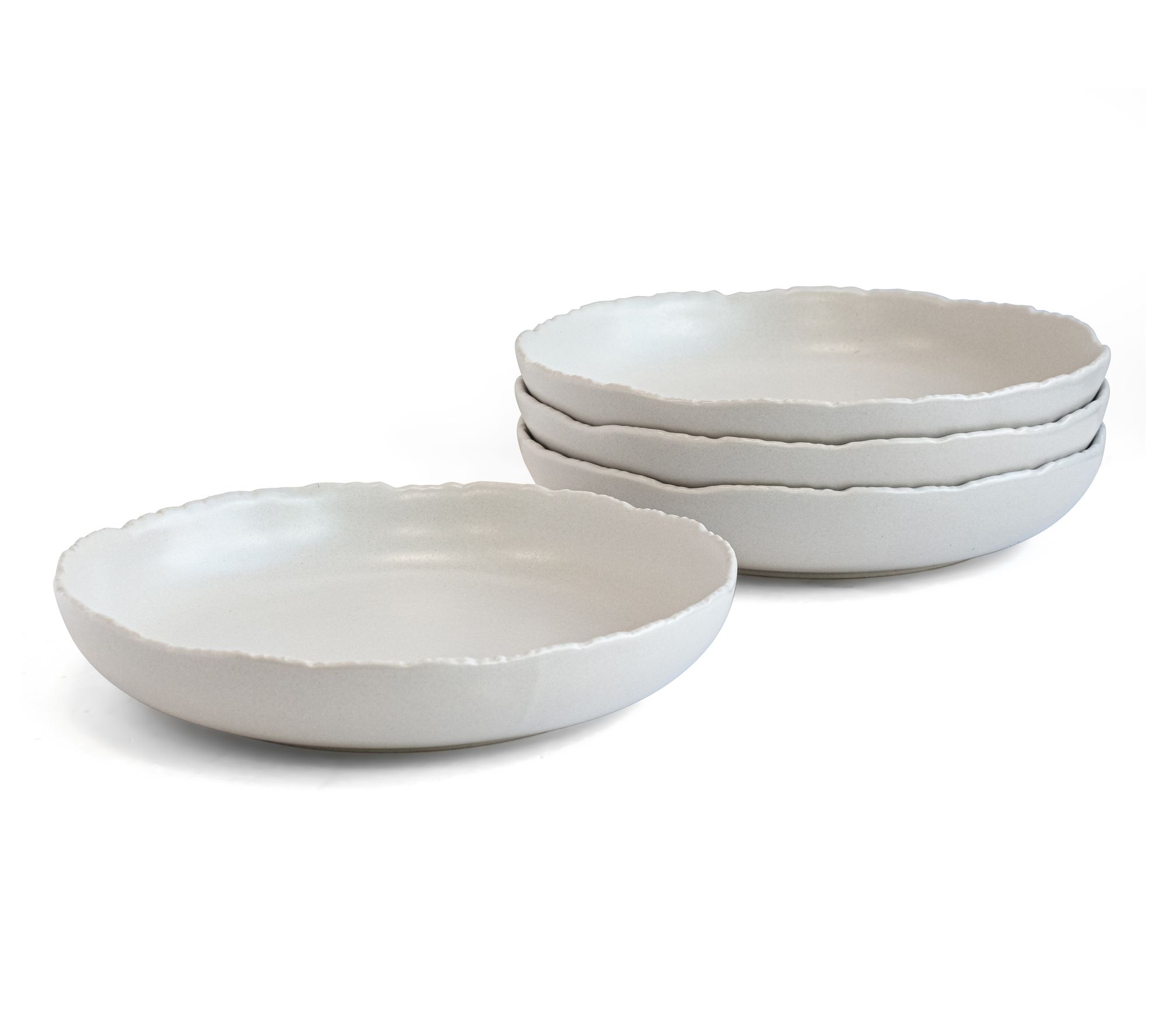 A classic shape with a unique textured rim detail and matte finish make these Cove dinner bowls a one-of-a-kind way to add elegance to your table. From overandback.