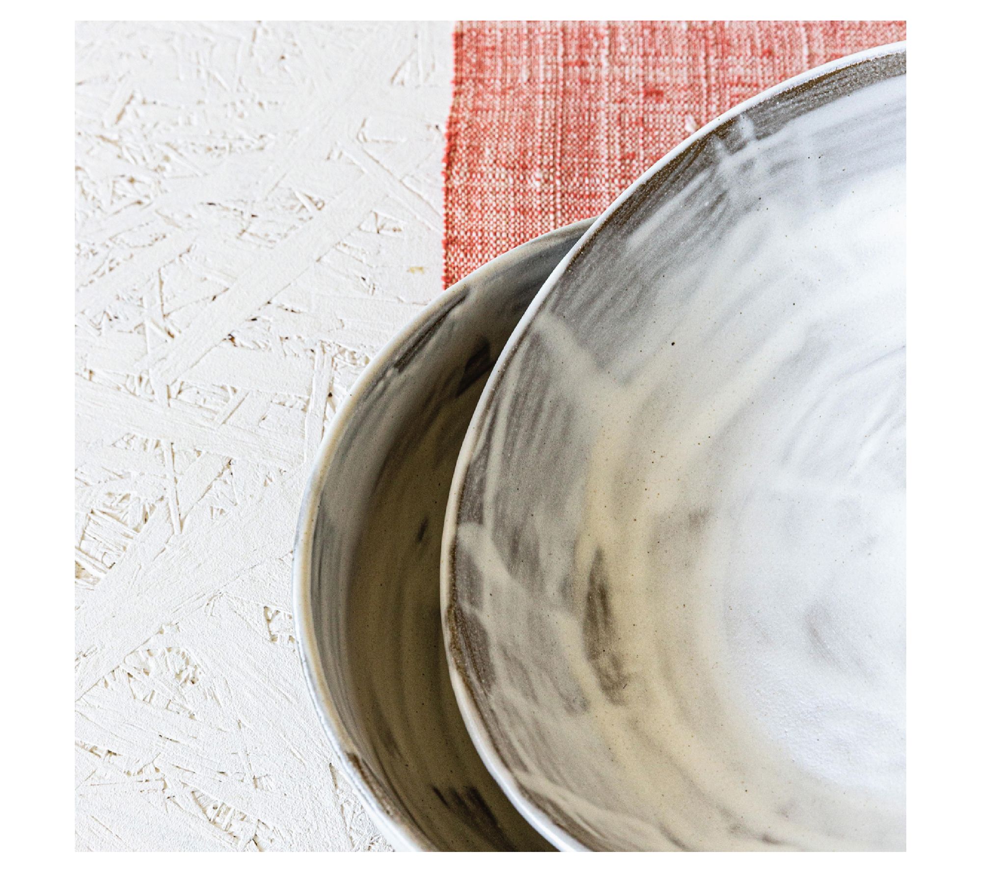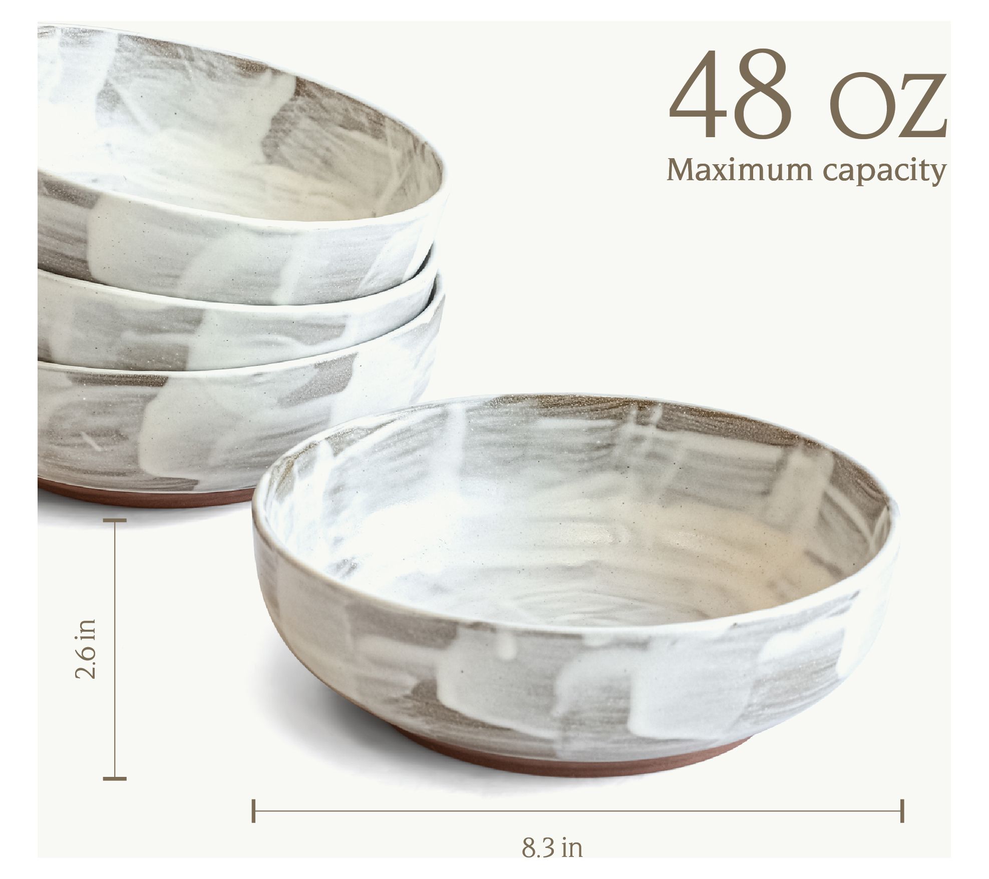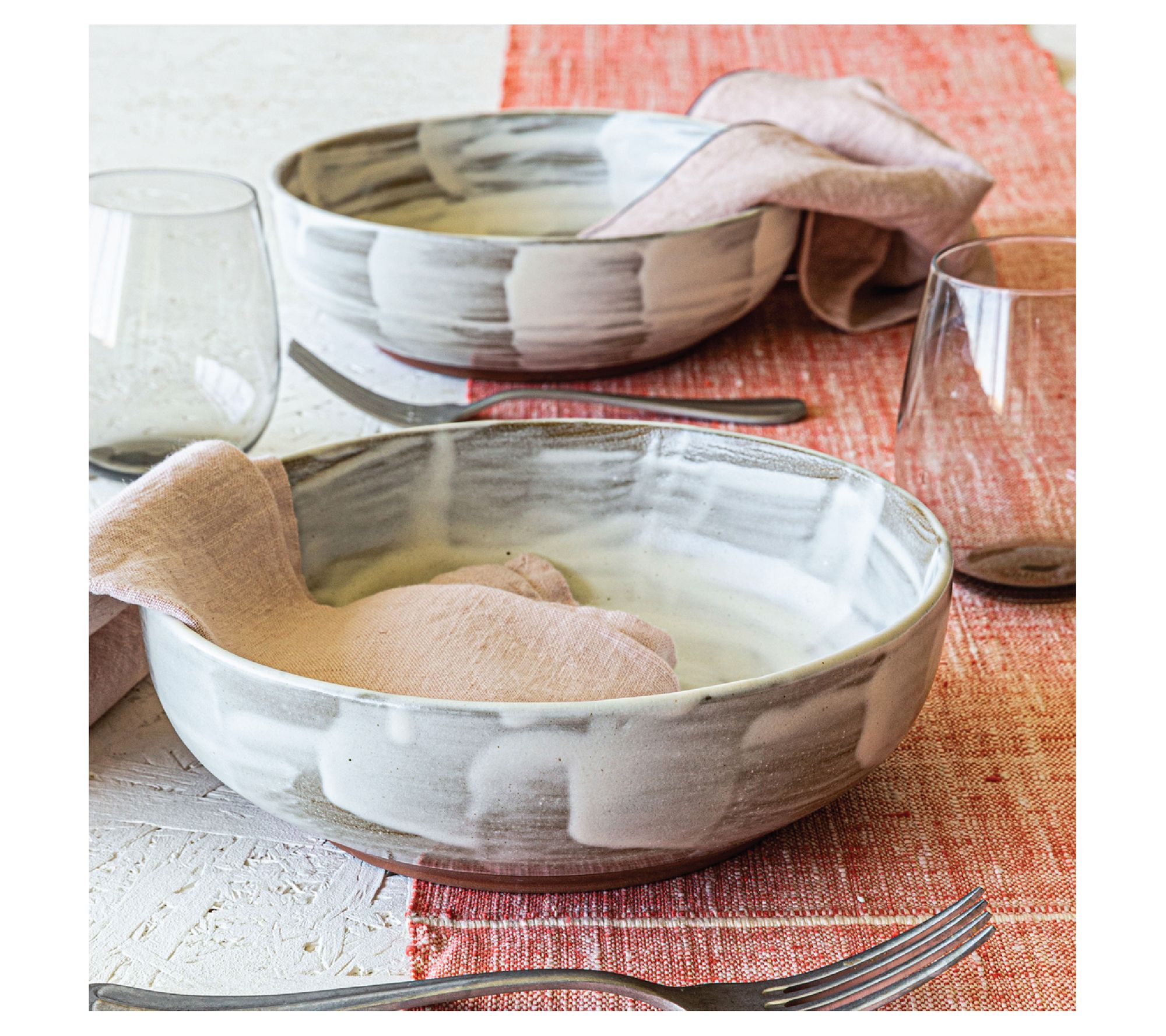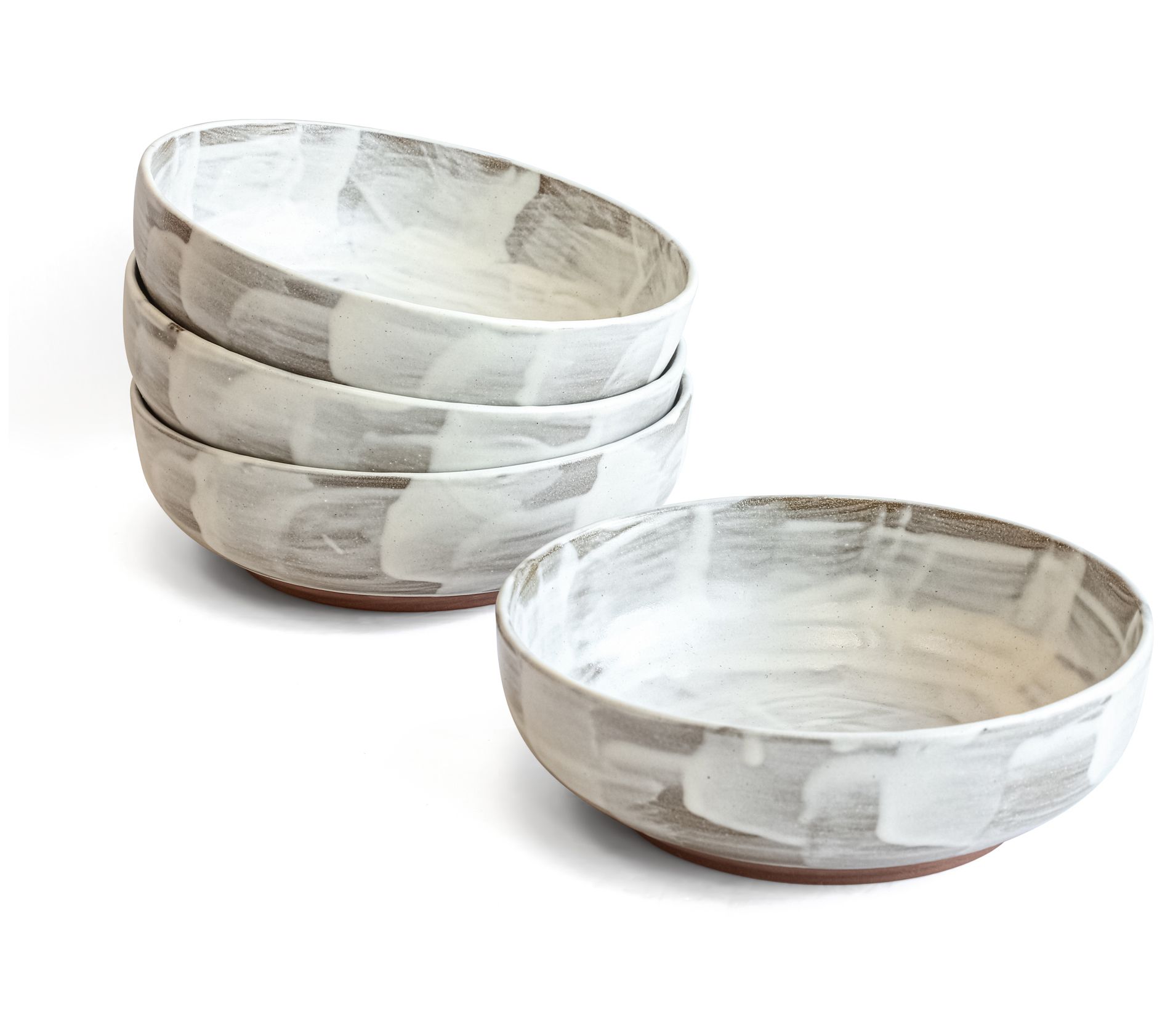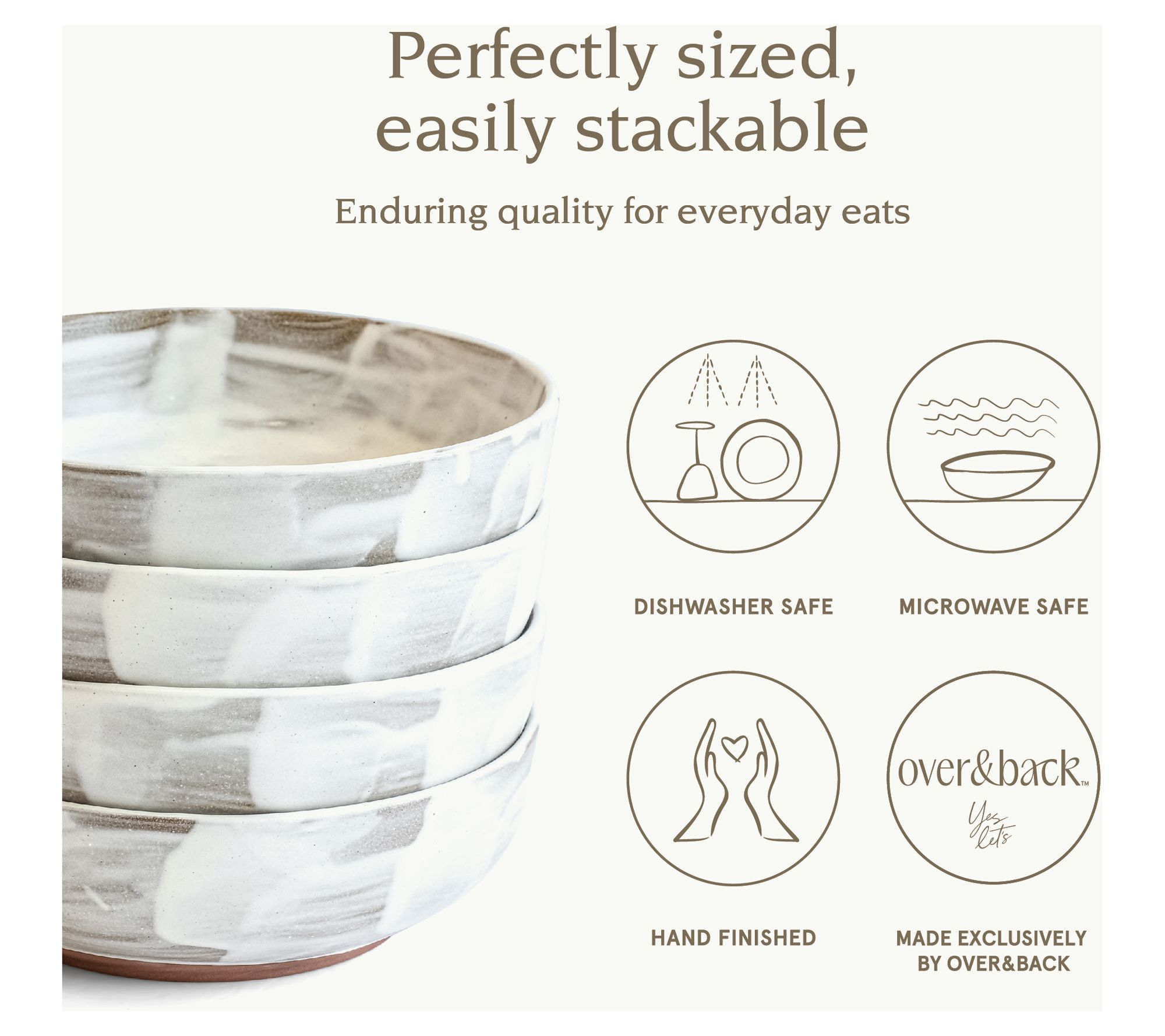 These artfully crafted Huxley dinner bowls offer a beautiful brushstroke-style finish with hues of cream and gray that enhance the look and feel of any meal, oven-safe to 300F and dishwasher-safe for quick cleanup. From overandback.
