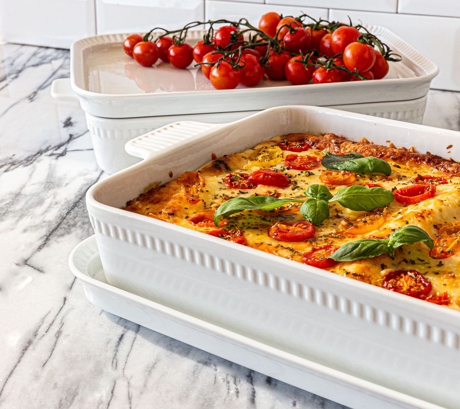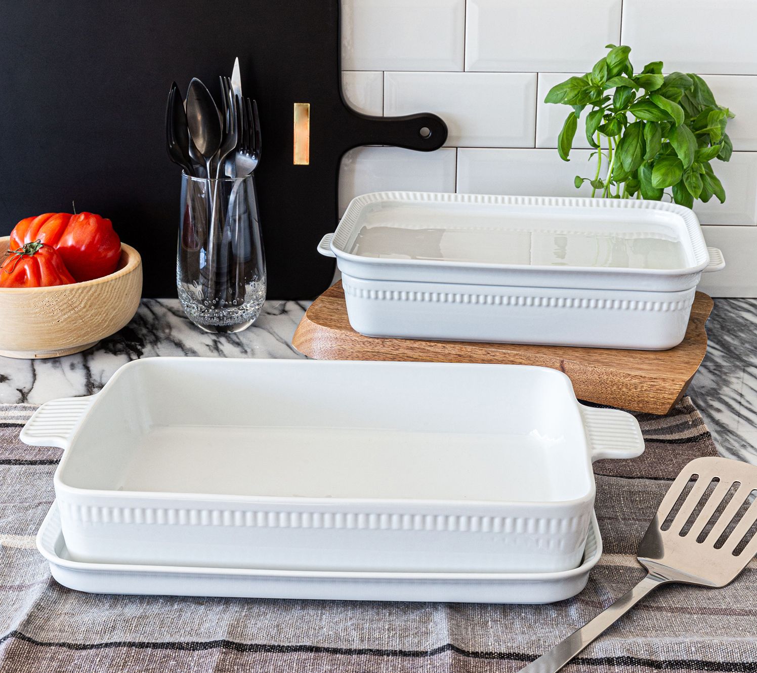 A perfect addition to any kitchen, these Rylan porcelain bakers with coordinating lids are great for making a delicious recipe and keeping it toasty at the dinner table, oven-safe to 350F and dishwasher-safe for quick and easy cleanup. From overandback.