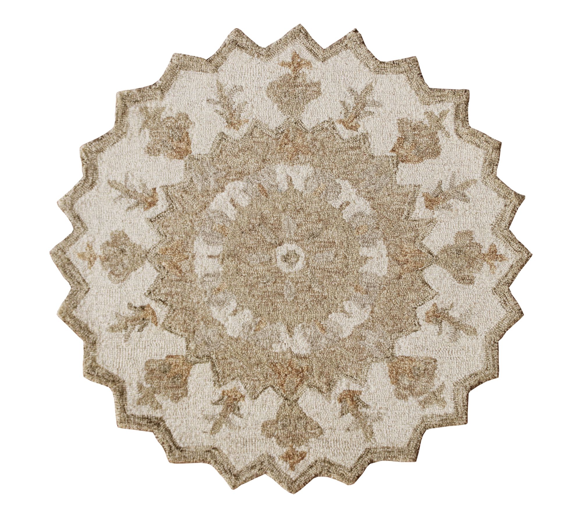 Design your home with an element of chic modern farmhouse charm. This round, beige medallion rug effortlessly adds sophistication and warmth to any entryway, living room, or bedroom. The soft and luxurious wool craftsmanship ensures a cozy touch, perfect for high-traffic areas. From Ox Bay.