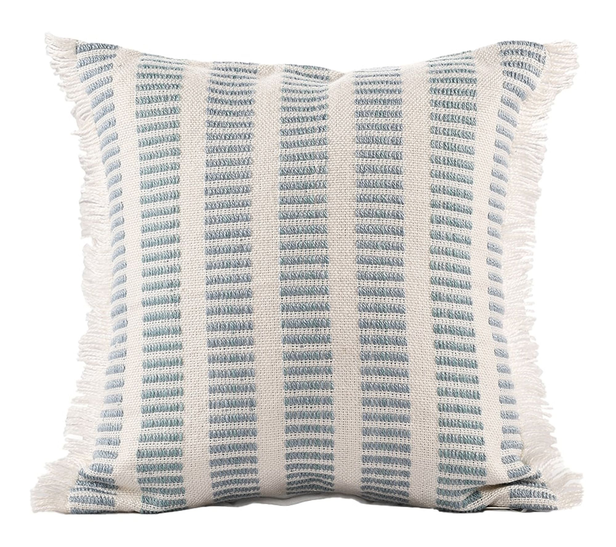 Ox Bay Blue/Ivory Striped Farmhouse Polyester Pillow, 20"x20"