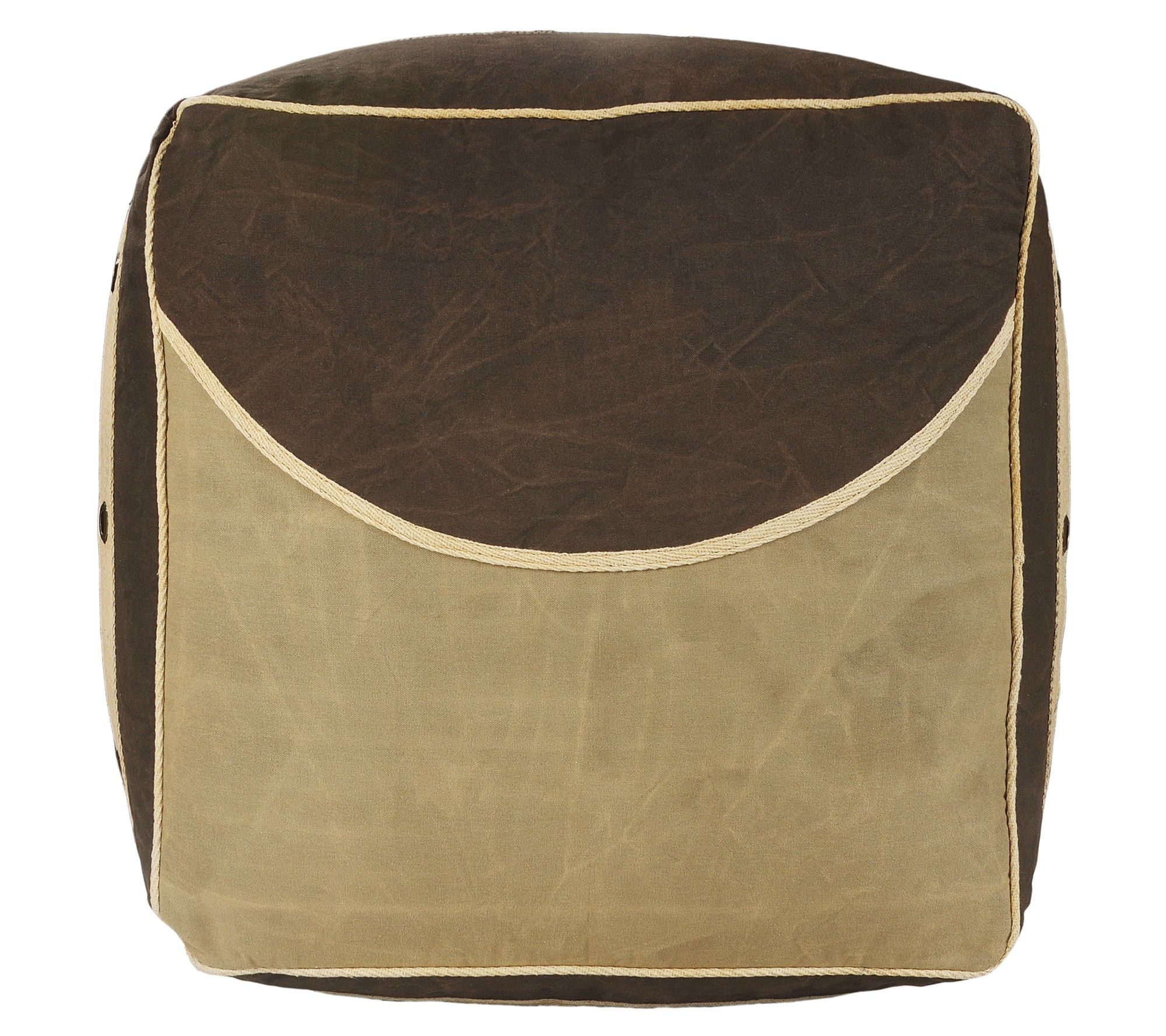 Ox Bay Bordered Flatweave Cotton Pouf Ottoman