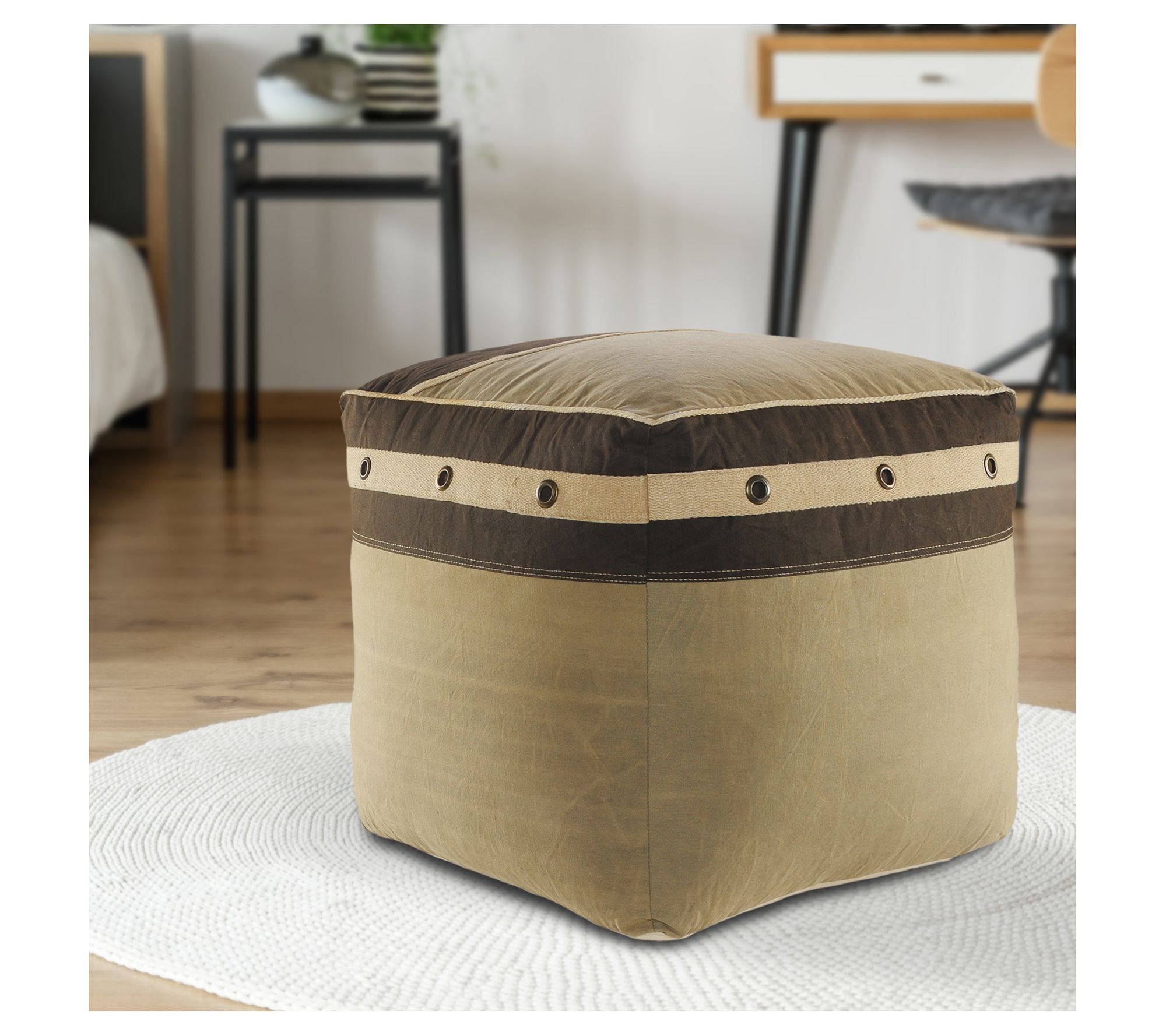 Elevate your living space with this soft cotton pouf, a versatile piece that blends seamlessly with any decor. Its bordered design adds a touch of elegance, making it the perfect addition to your home. From Ox Bay.