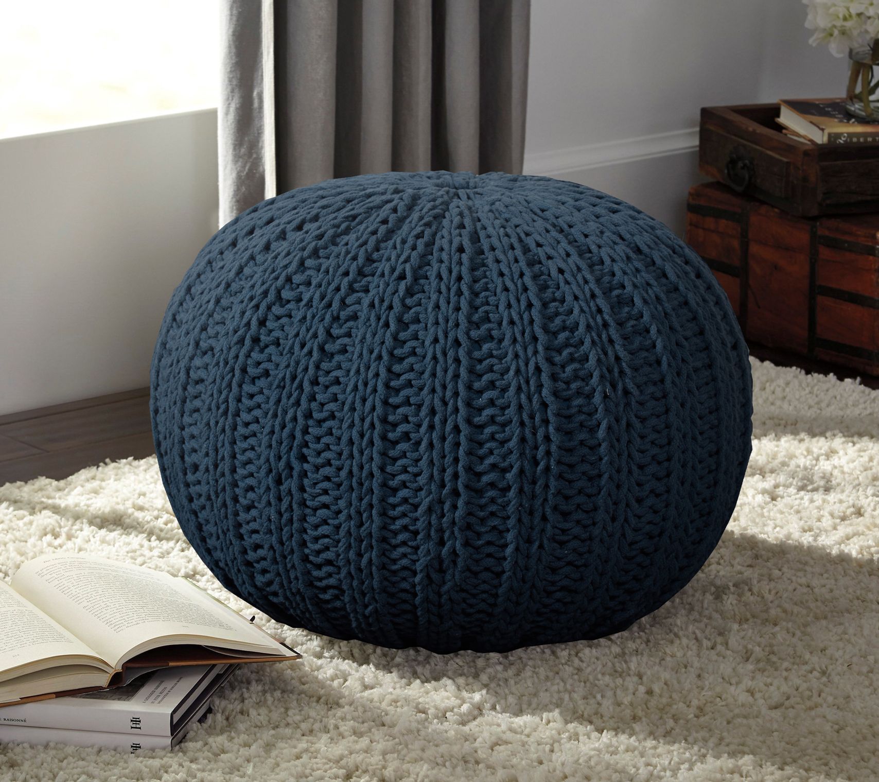 Ox Bay Cable Knit Cotton Pouf Ottoman