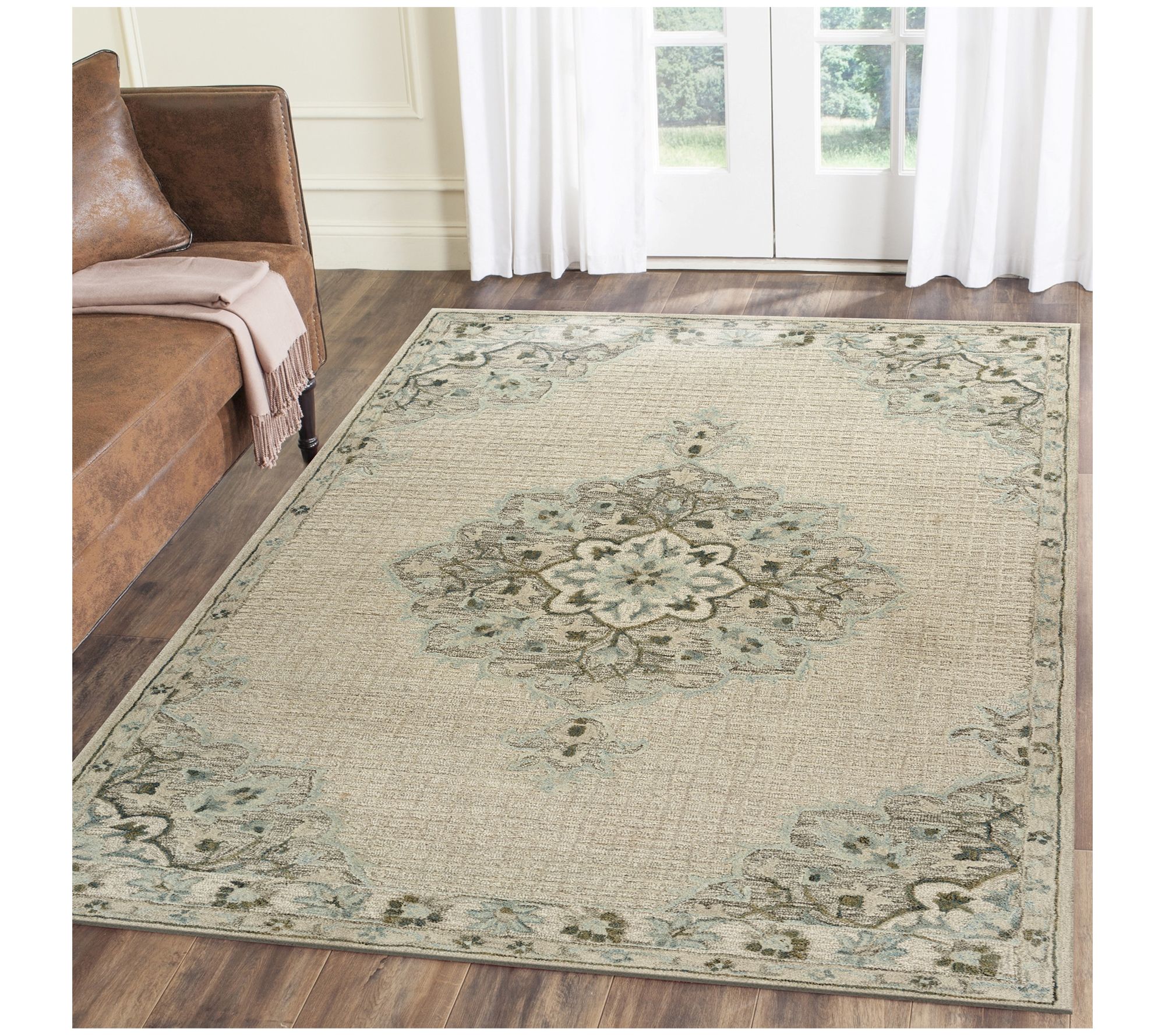 Create a cozy retreat in your living room or bedroom with this tufted rug from Ox Bay. The classic medallion design in gray or beige brings farmhouse charm to any space. From Ox Bay.