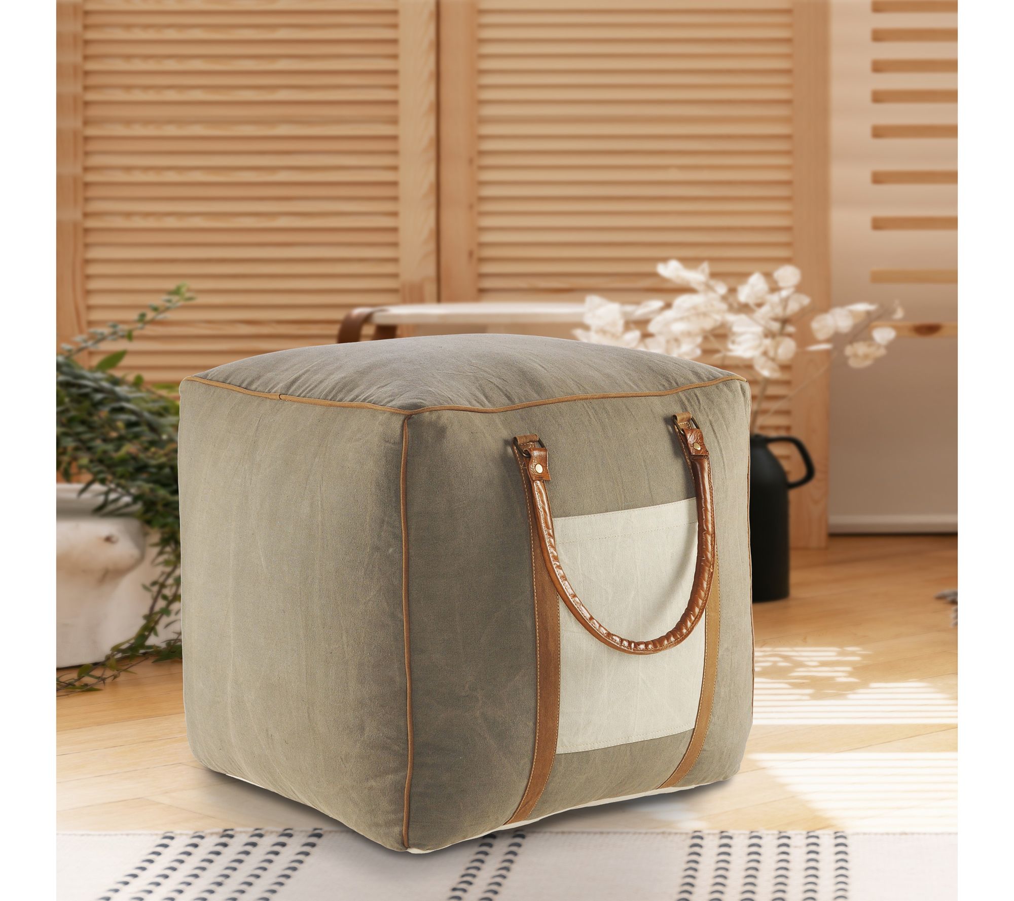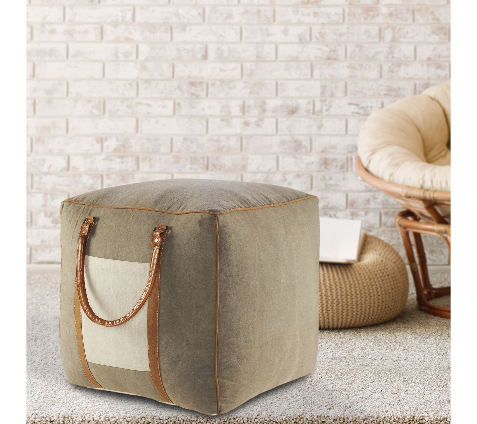 Ox Bay Color Block Hand-Made Cotton Blend PoufOttoman