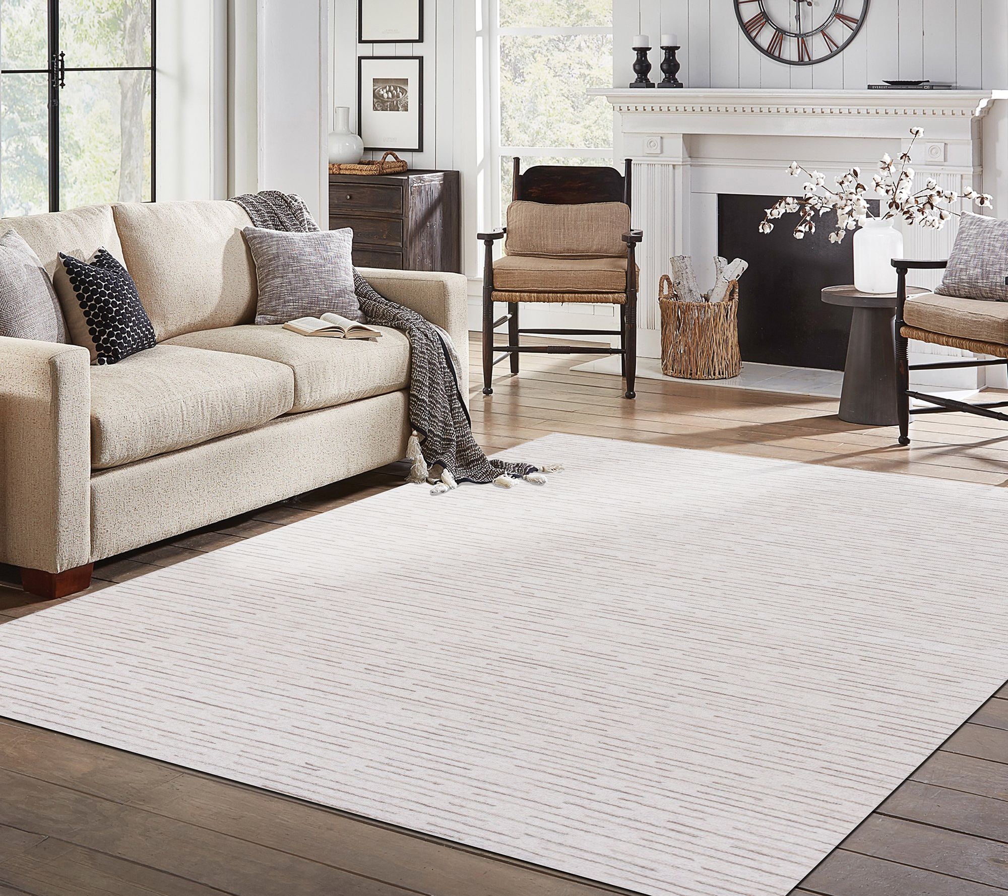 Treat your feet to the incredible softness and luxurious style of this contemporary striped area rug, made from 100% wool. From Ox Bay Trading & Supply Co.