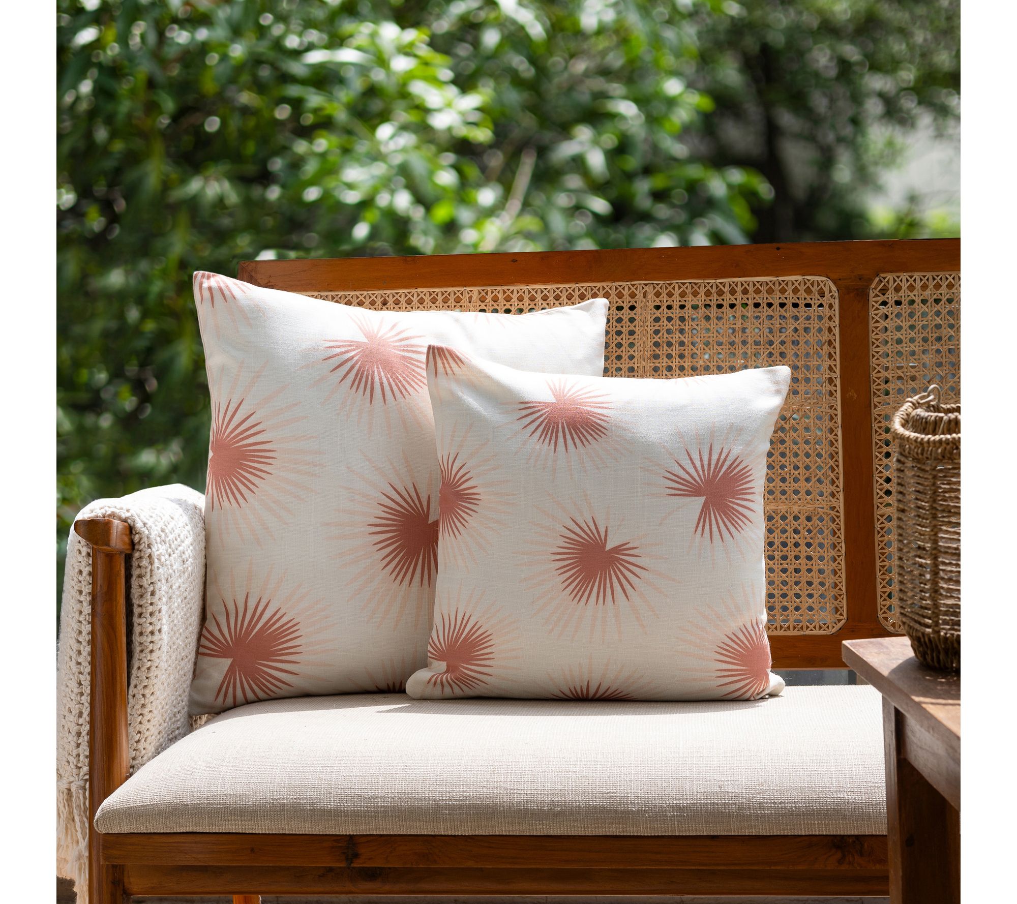 Set the scene for relaxation with this decorative pillow, featuring a vibrant tropical palm frond design in coral and cream. Whether tossed on your bed for a pop of color or set outdoors for a breezy coastal vibe, its weather-resistant polyester cover and easy-care zipper closure make style simple and maintenance a breeze. From Ox Bay.