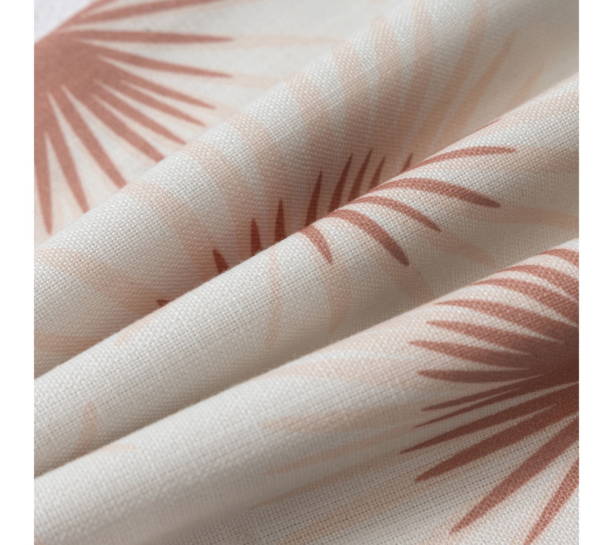 • Vibrant tropical palm frond botanical pattern in coral and off-white
