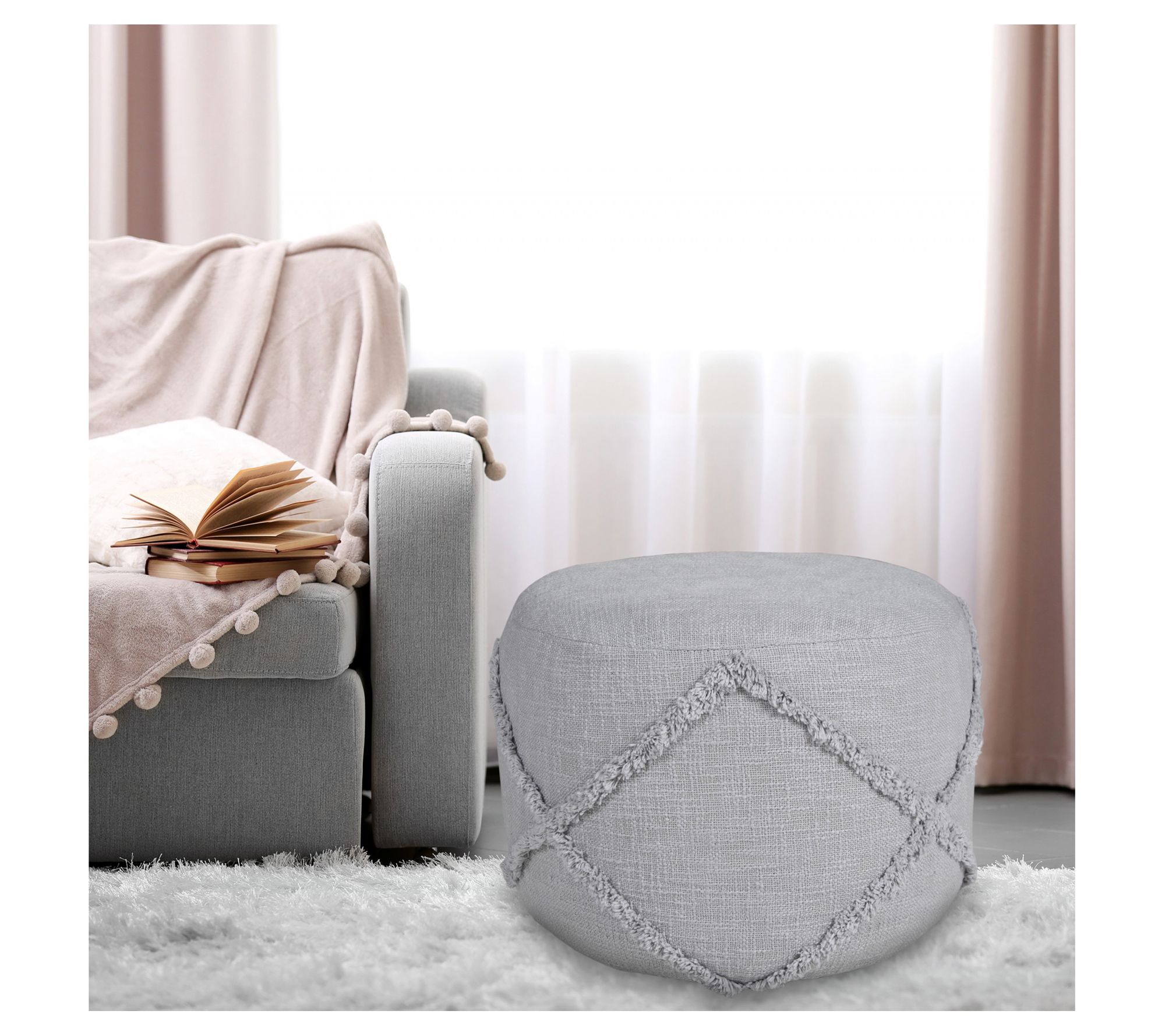 Add a touch of comfort and style to your living space with this soft cotton ottoman. Perfect for resting your feet or as an extra seat, this pouf brings a cozy, versatile addition to any room. From Ox Bay.