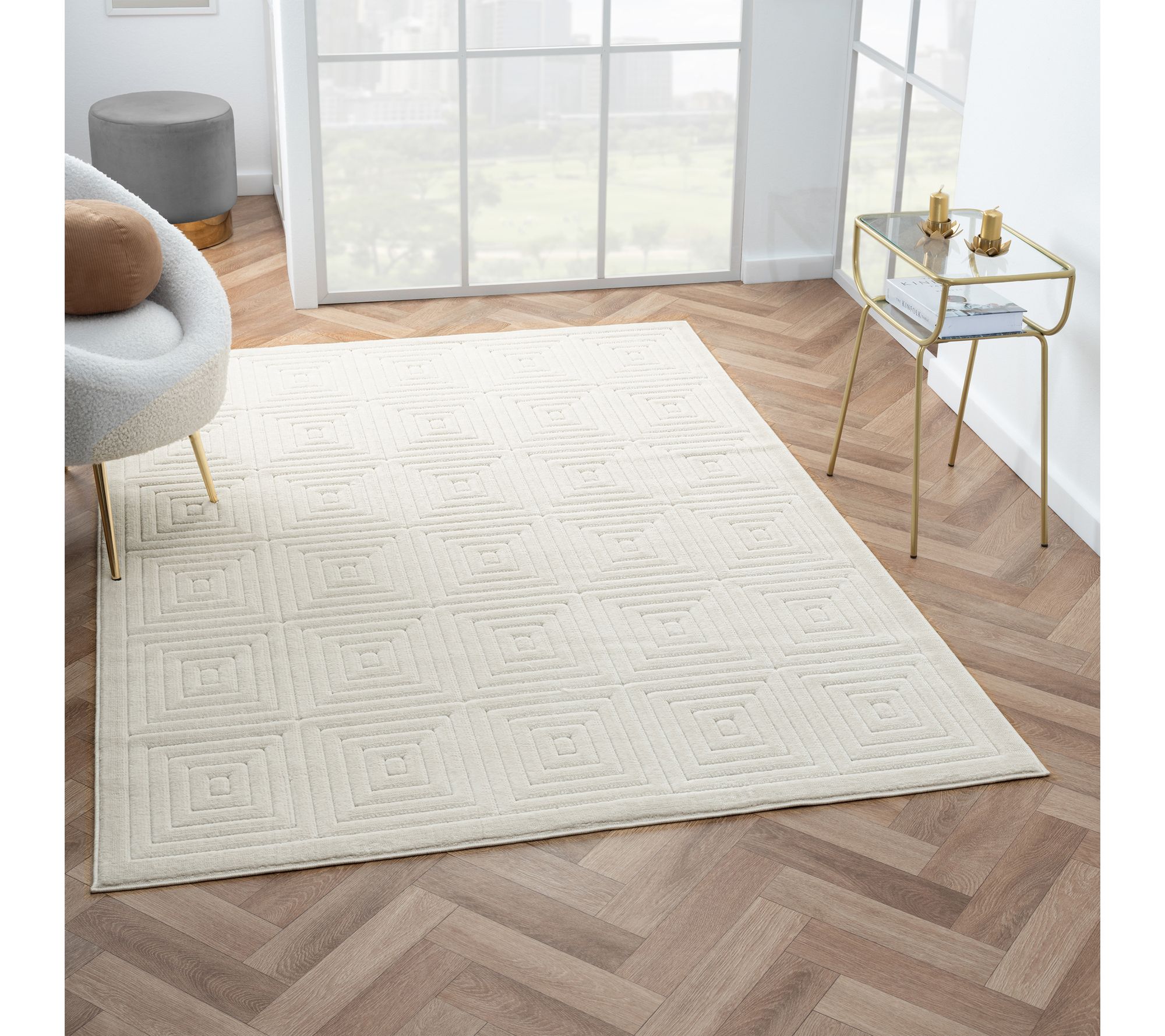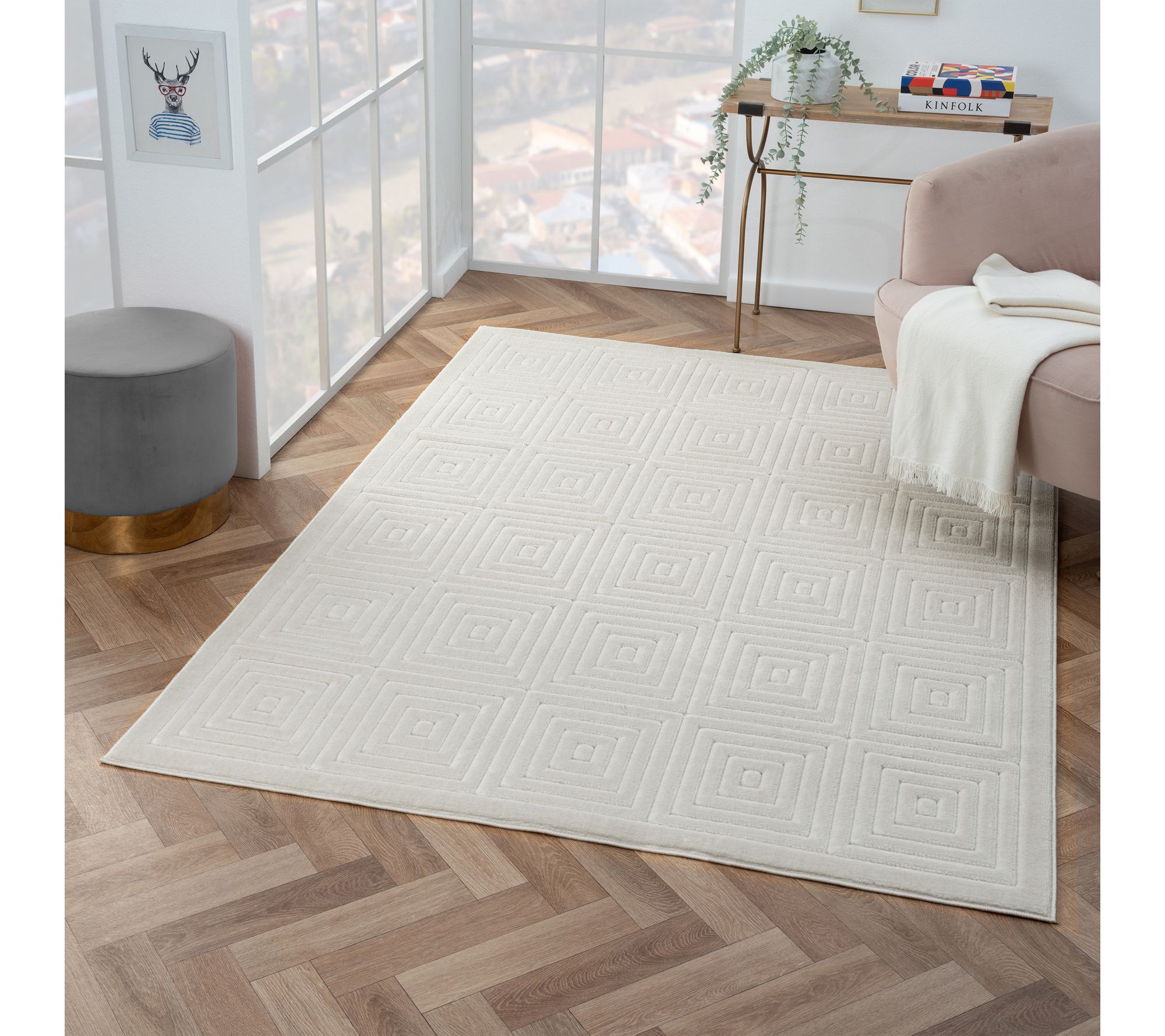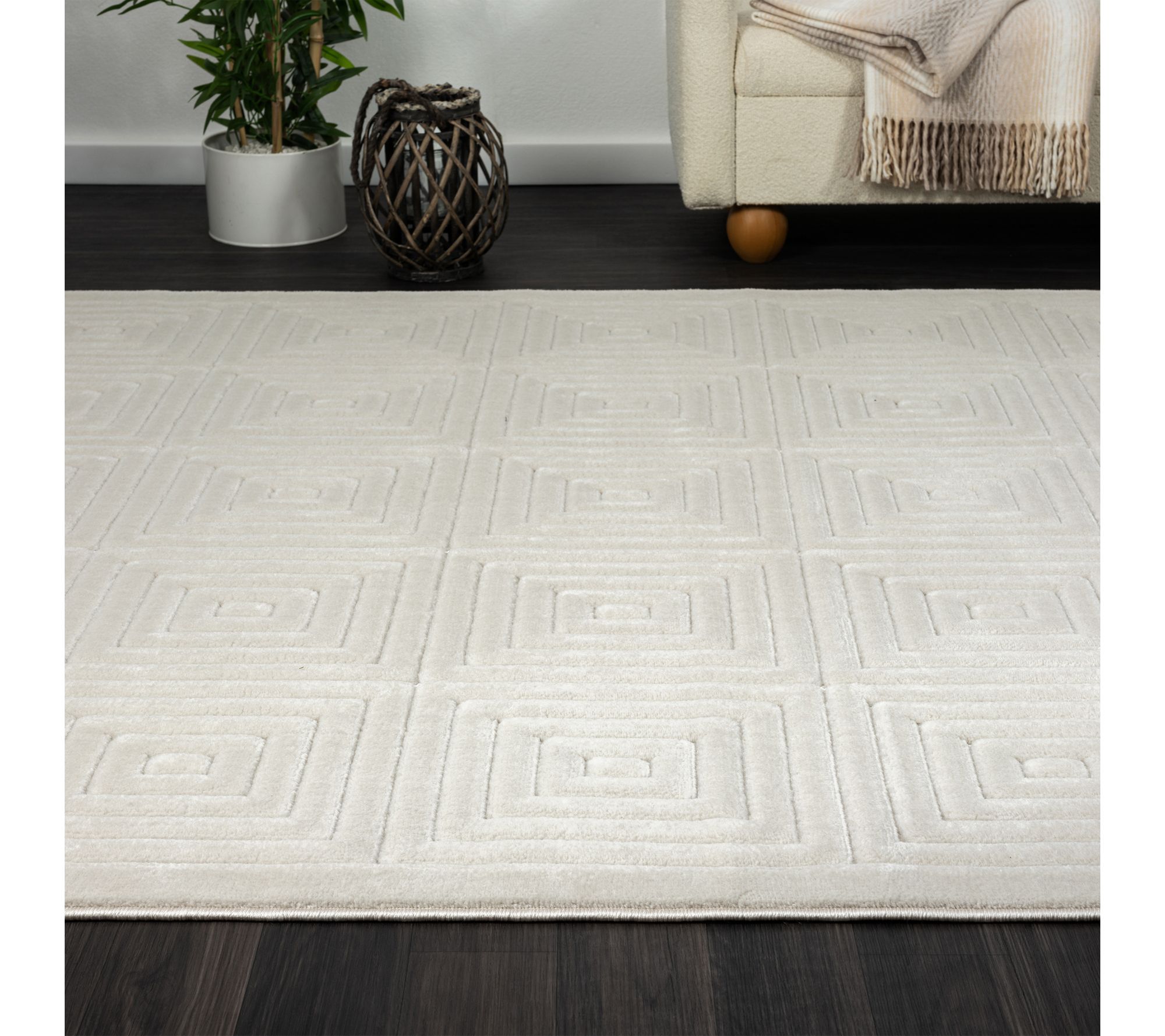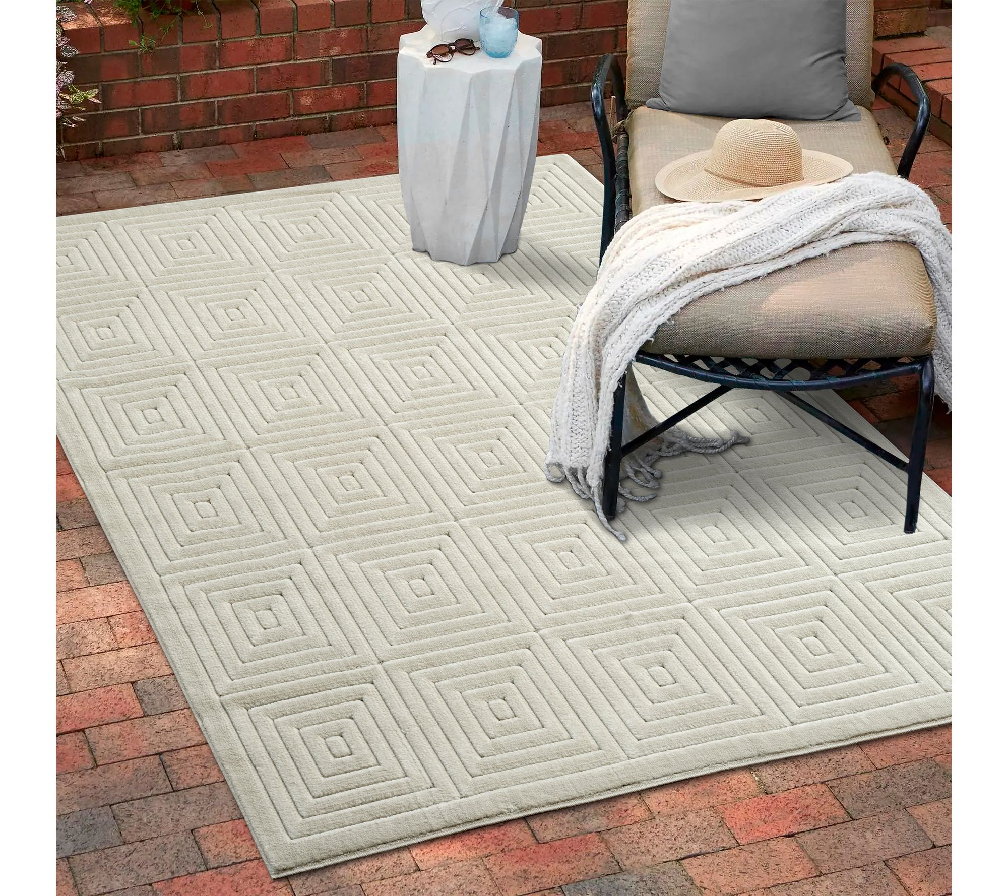 Bring contemporary charm to your outdoor entertaining space with this geometric rug -- its eye-catching pattern adds a modern touch to patios, decks, or sunrooms. Durable polypropylene construction stands up to everyday activity, so you can enjoy gatherings in comfort and style, rain or shine. From Ox Bay.