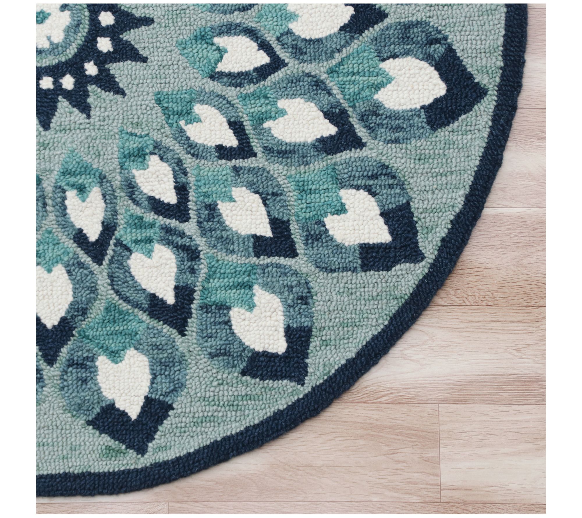 Elevate your decor with this Ox Bay tufted wool rug featuring a contemporary geometric medallion in shades of blue and ivory. Ideal for entryways, living rooms, or bedrooms, this rug adds farmhouse charm while tying your decor together. From Ox Bay.