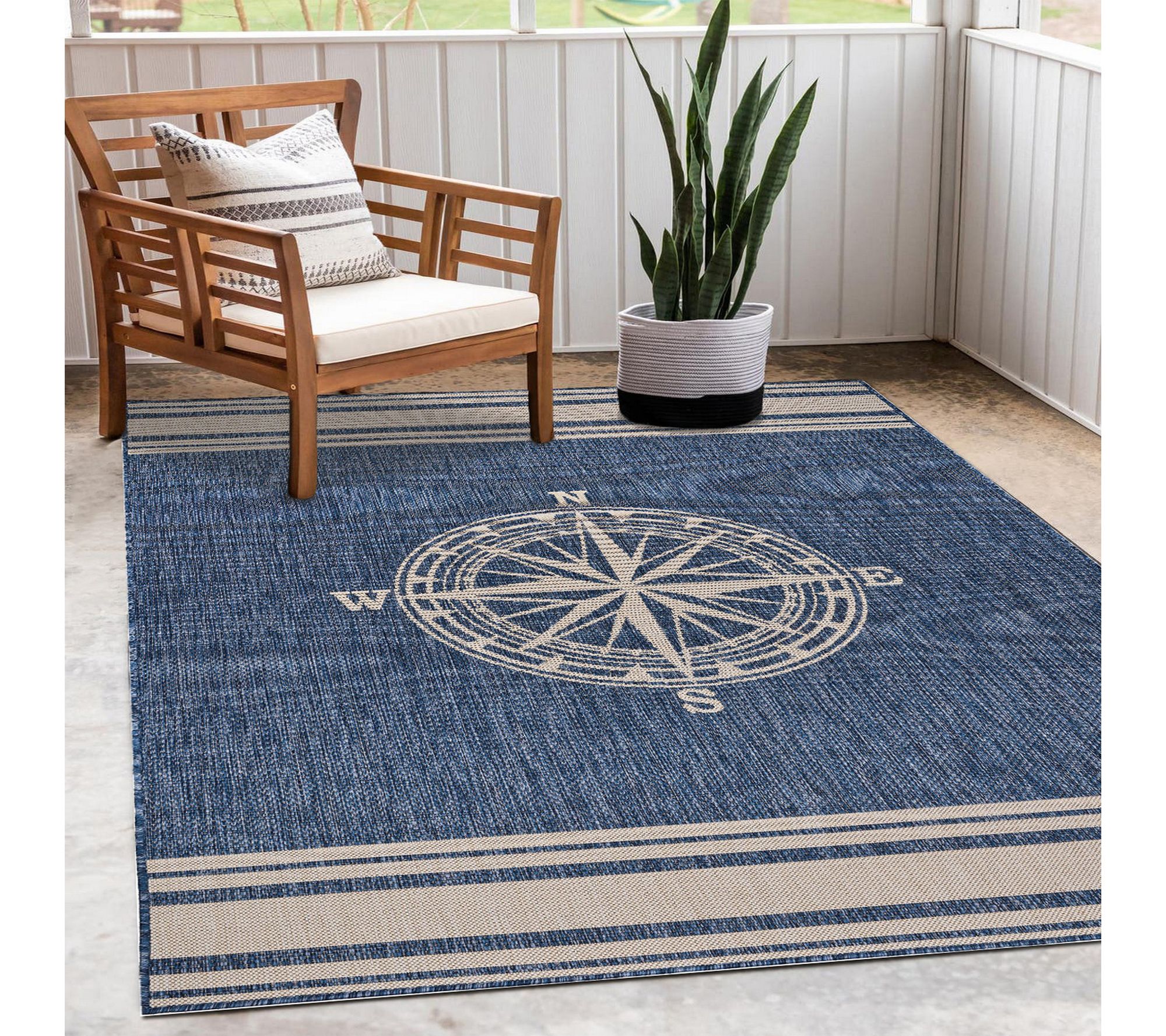 Bring coastal charm and contemporary flair to your favorite spaces with this geometric nautical area rug -- ideal for creating a relaxed, inviting vibe in a sunroom, patio, or living room. Crafted for durability and easy care, this soft yet sturdy floor covering stands up beautifully to everyday life, ready for everything from breezy mornings to evening gatherings. From Ox Bay.