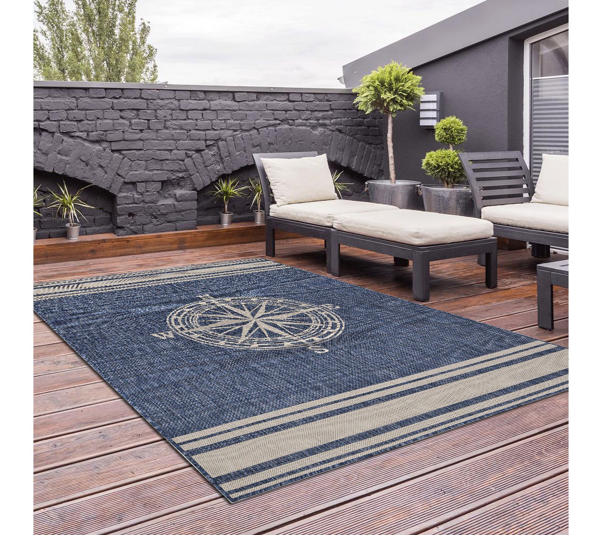 Ox Bay Geometric Nautical Polypropylene OutdoorRug, 5'3" x 7'