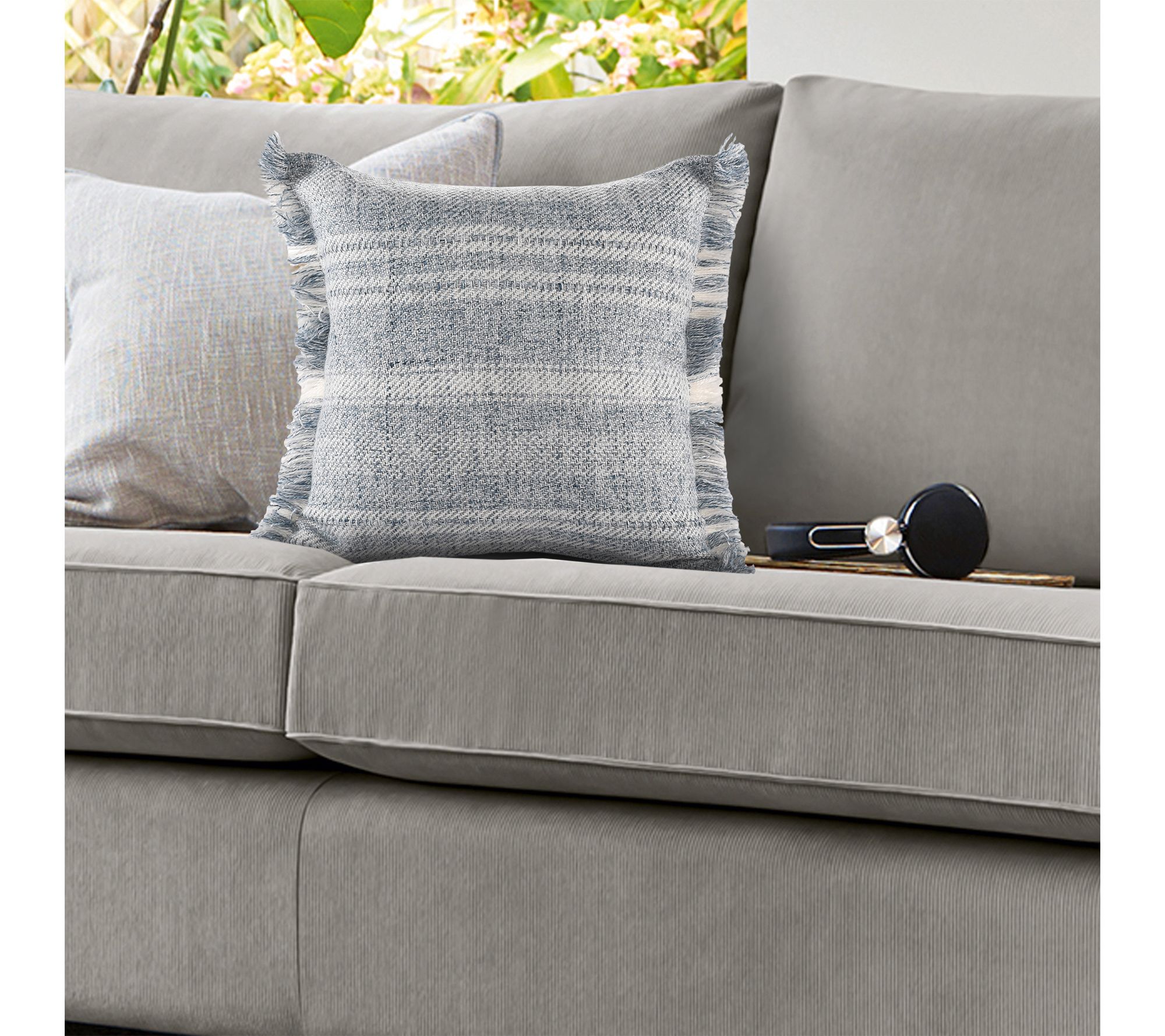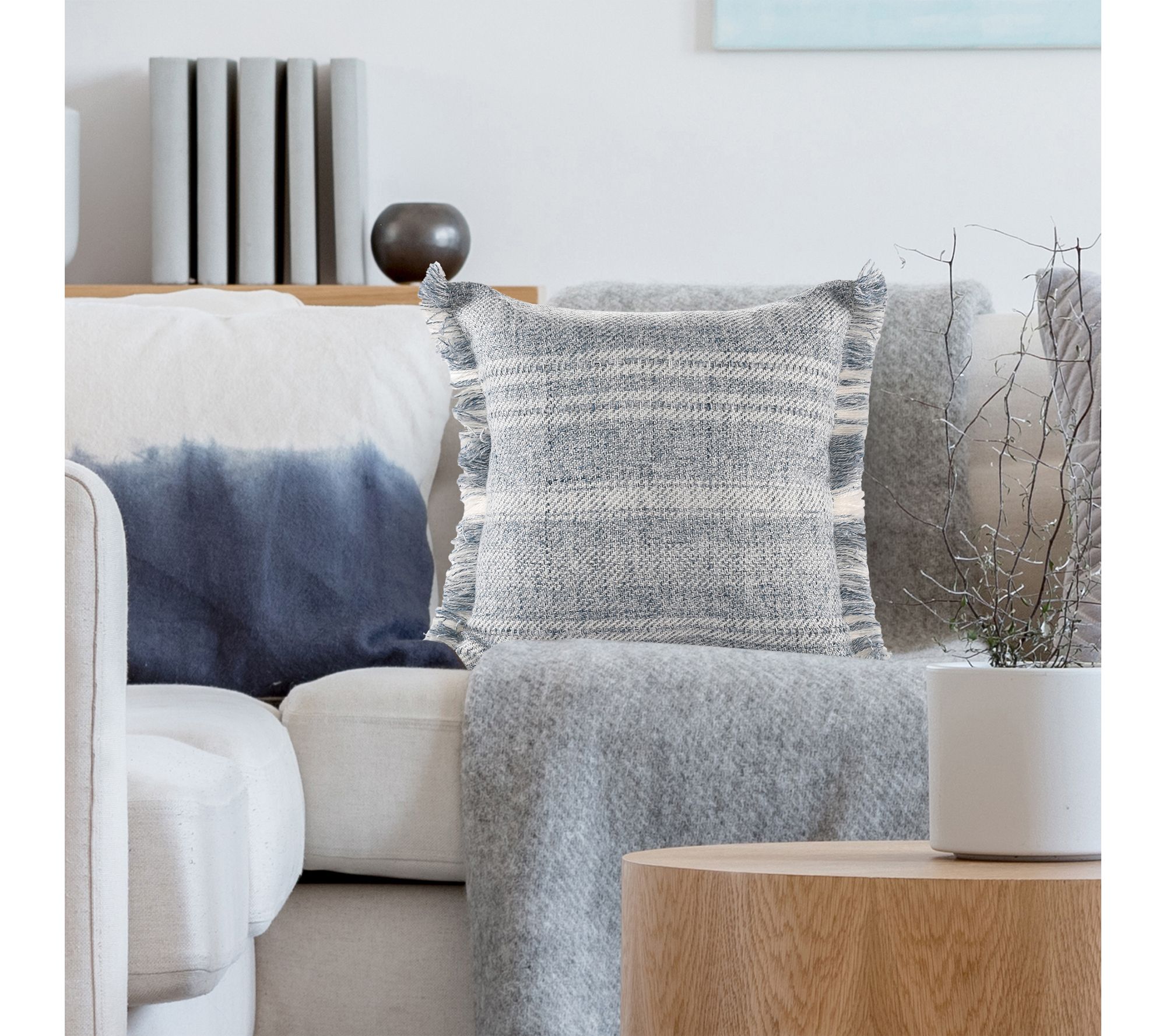 Ox Bay Gray/Ivory Striped Down Alternative Pillow, 20" x 20"