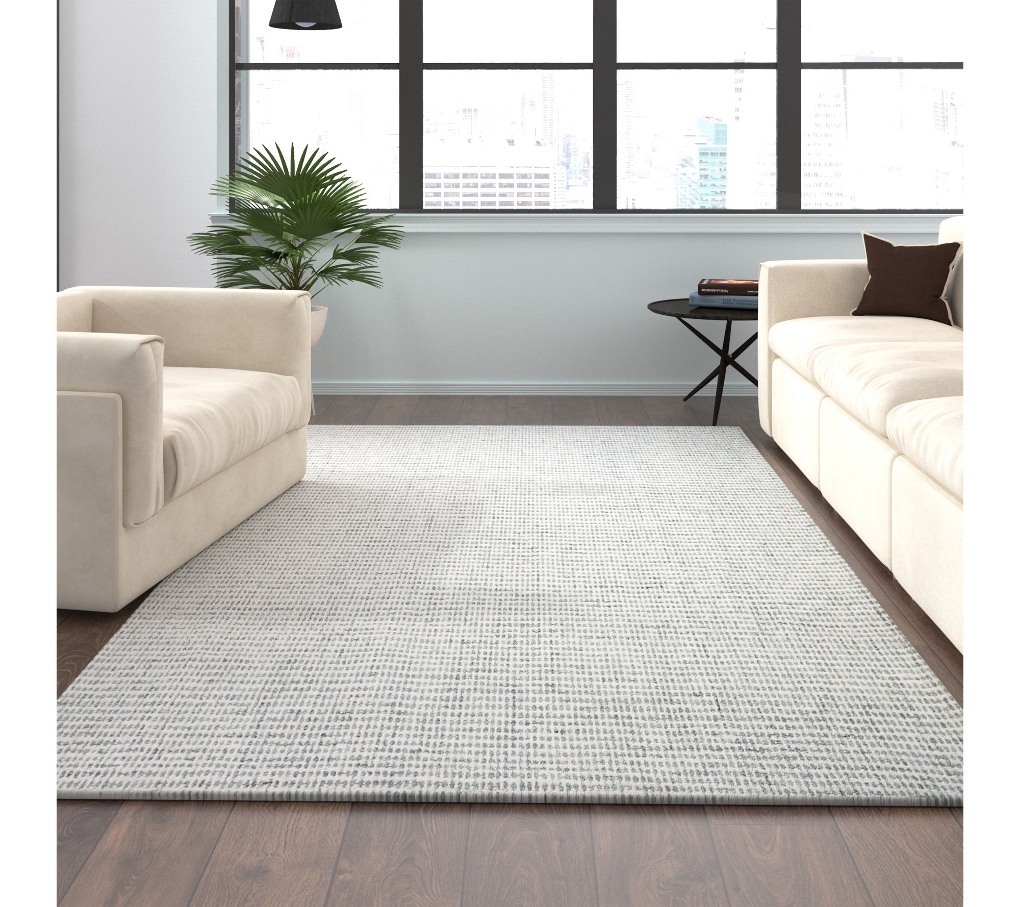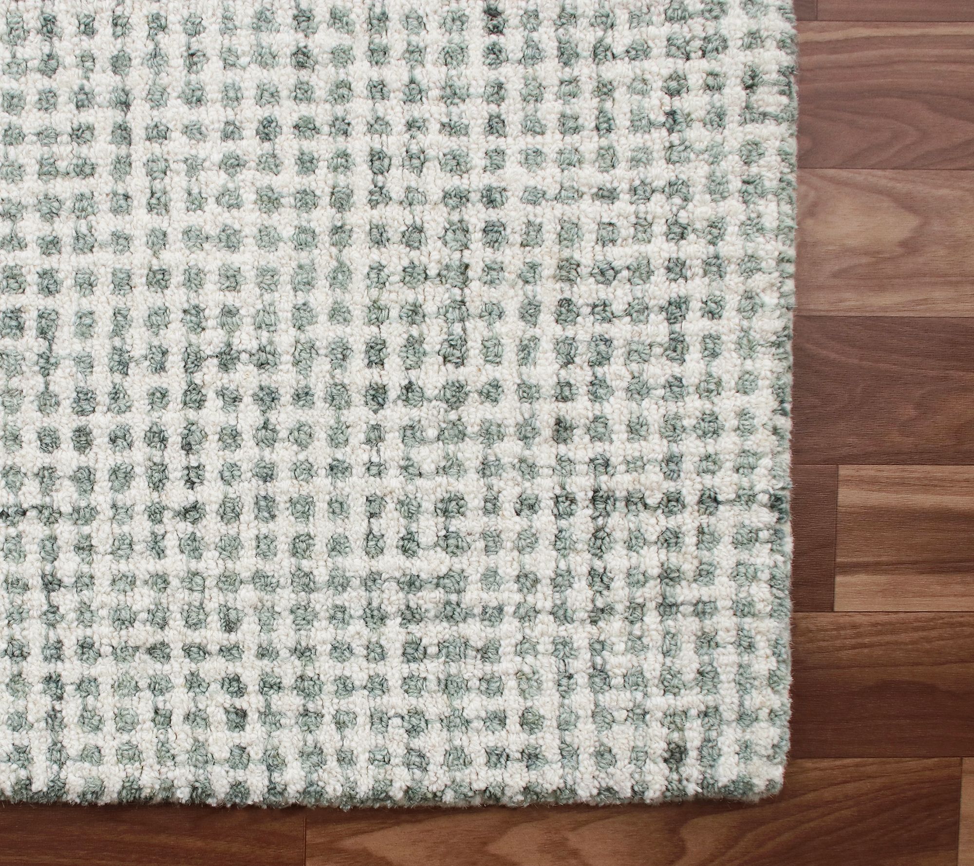 Ox Bay Green/Ivory Checkered Wool Indoor Rug, 7'9" x 9'9"