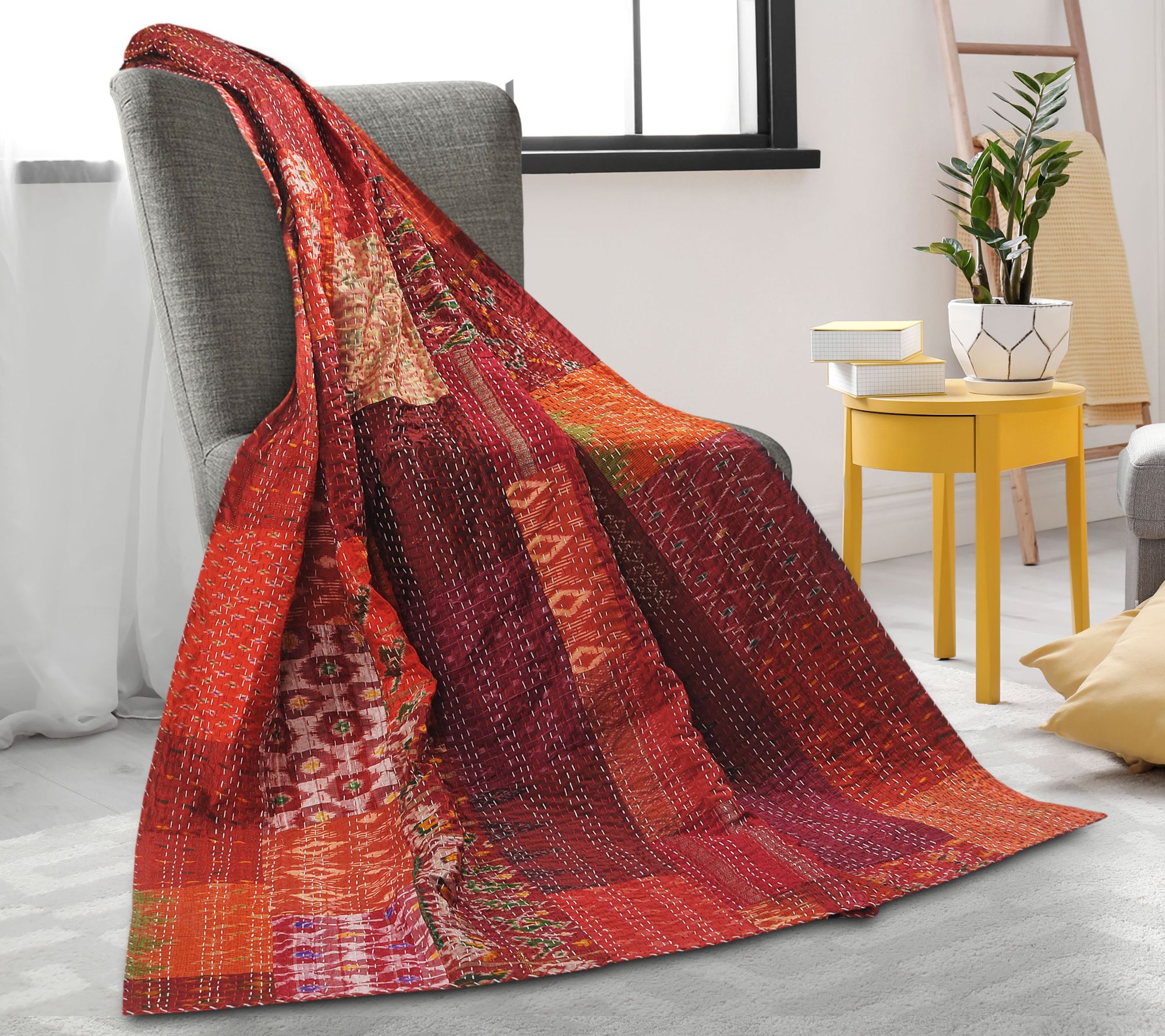Inspired by the rich cultures of India, this vibrant Kantha collection throw blanket is carefully crafted to enrich your space. From Ox Bay Trading & Supply Co.