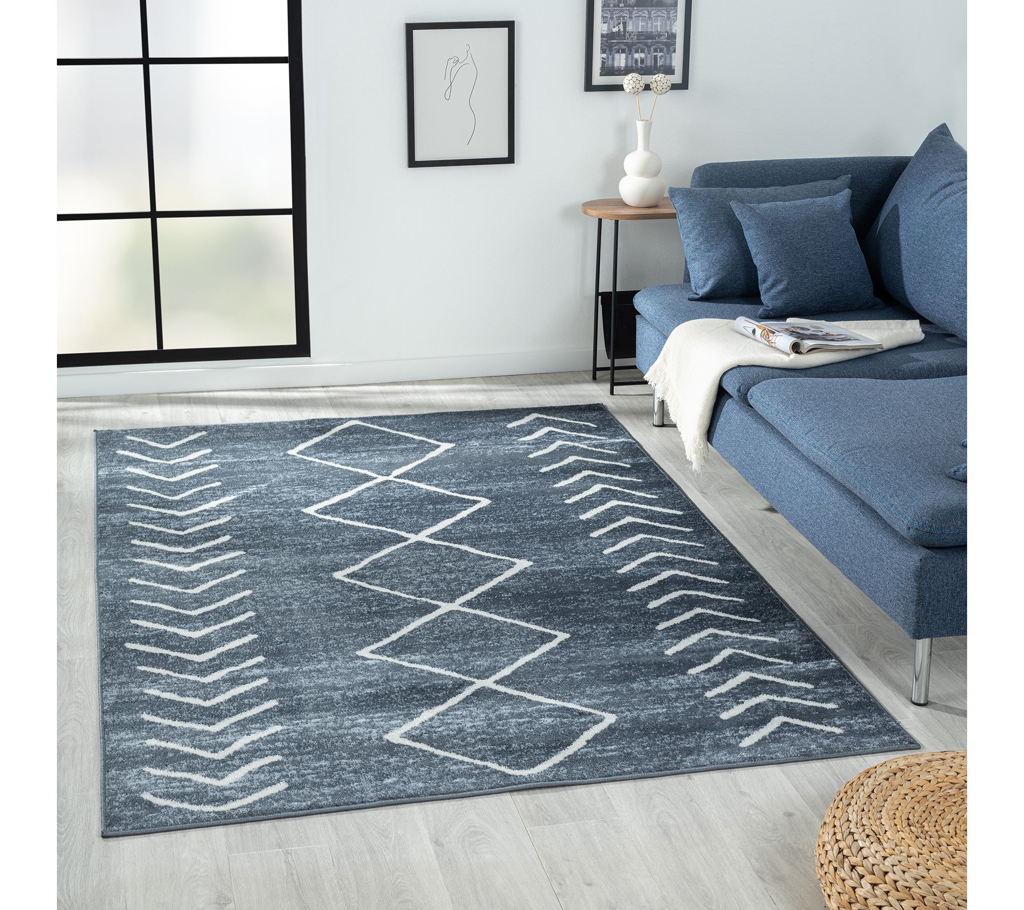 Designed by Evette Rios, this modern geometric area rug will infuse a touch of contemporary charm into any living room or bedroom. Its soft yet durable pile makes it ideal for high-traffic areas while adding a stylish flair to your space. From Ox Bay.