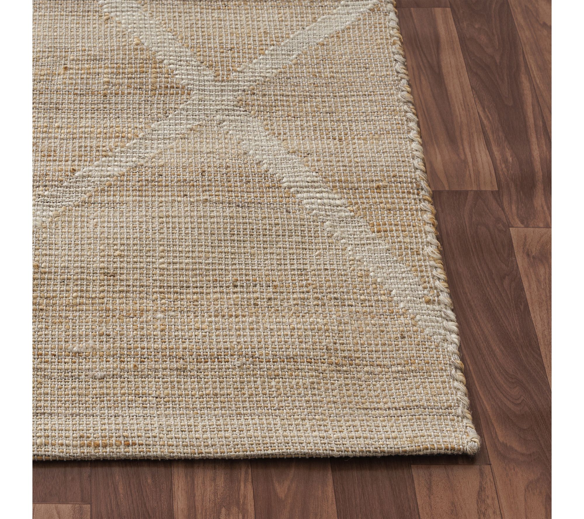 Add texture and warmth to your living space with this modern geometric indoor rug, designed to seamlessly blend into contemporary and farmhouse-inspired rooms. The woven construction showcases intricate detail, while its plush jute, wool, and cotton blend offers comfort beneath your feet -- making it an inviting addition to your bedroom or living area. From Ox Bay.