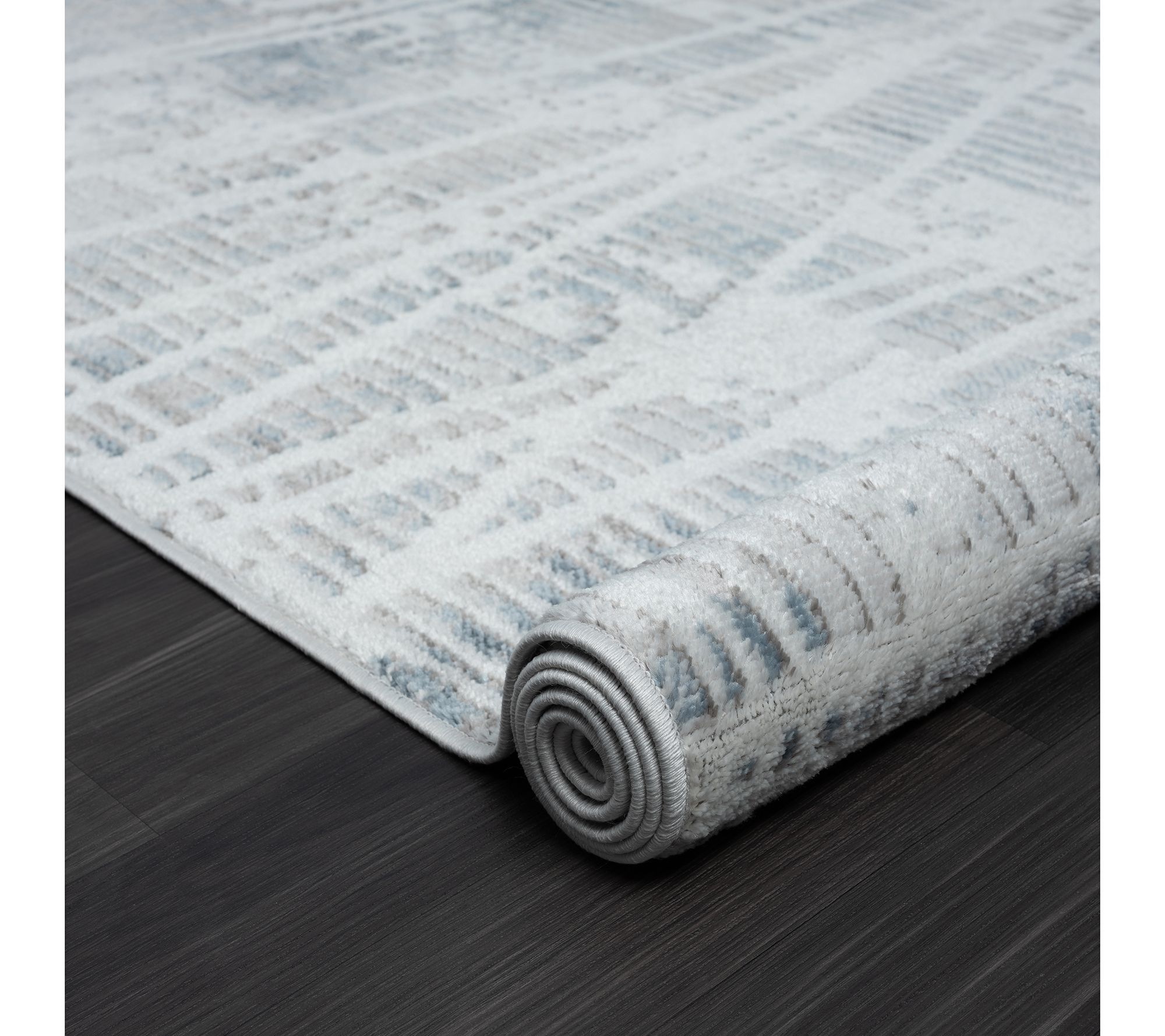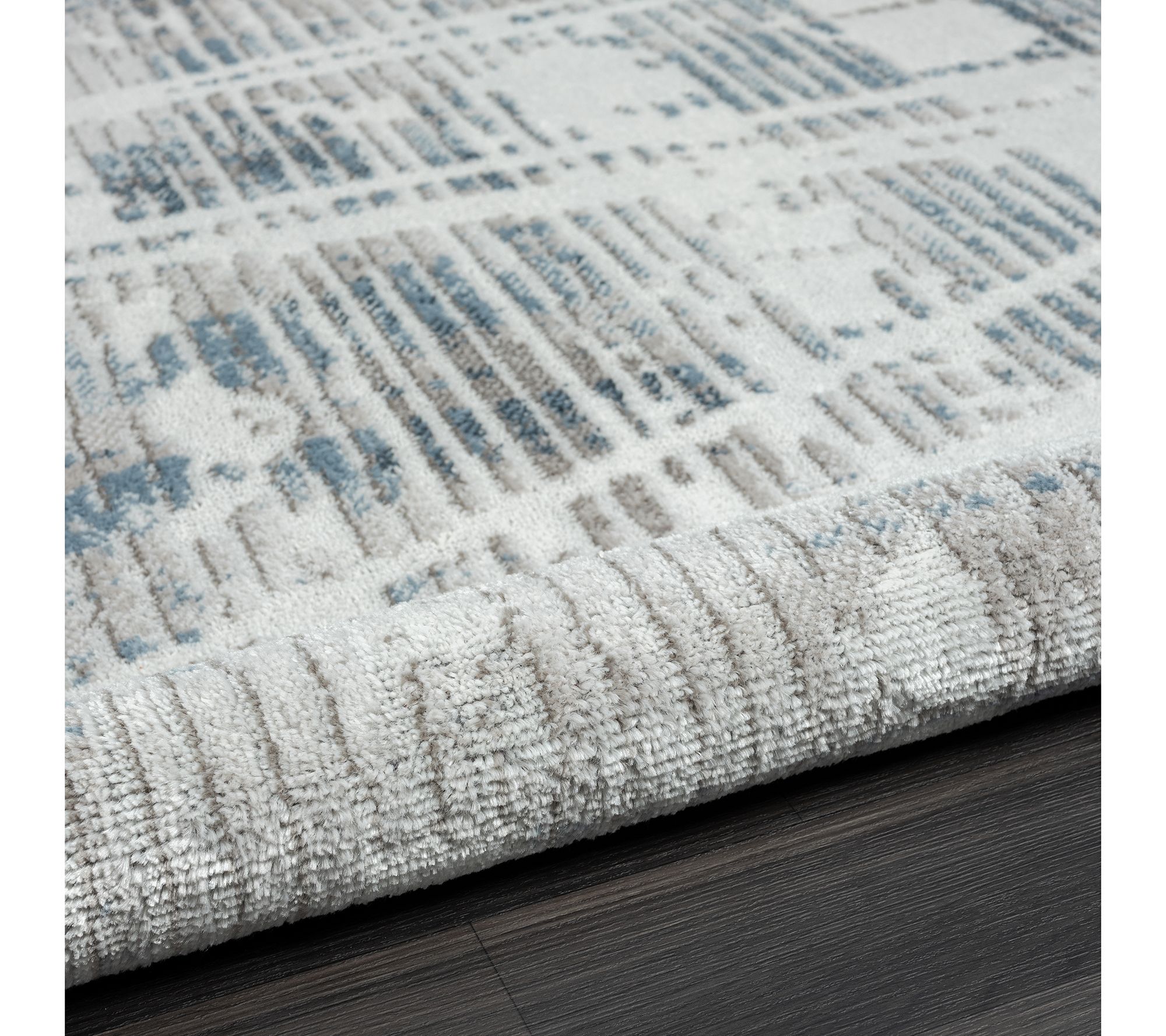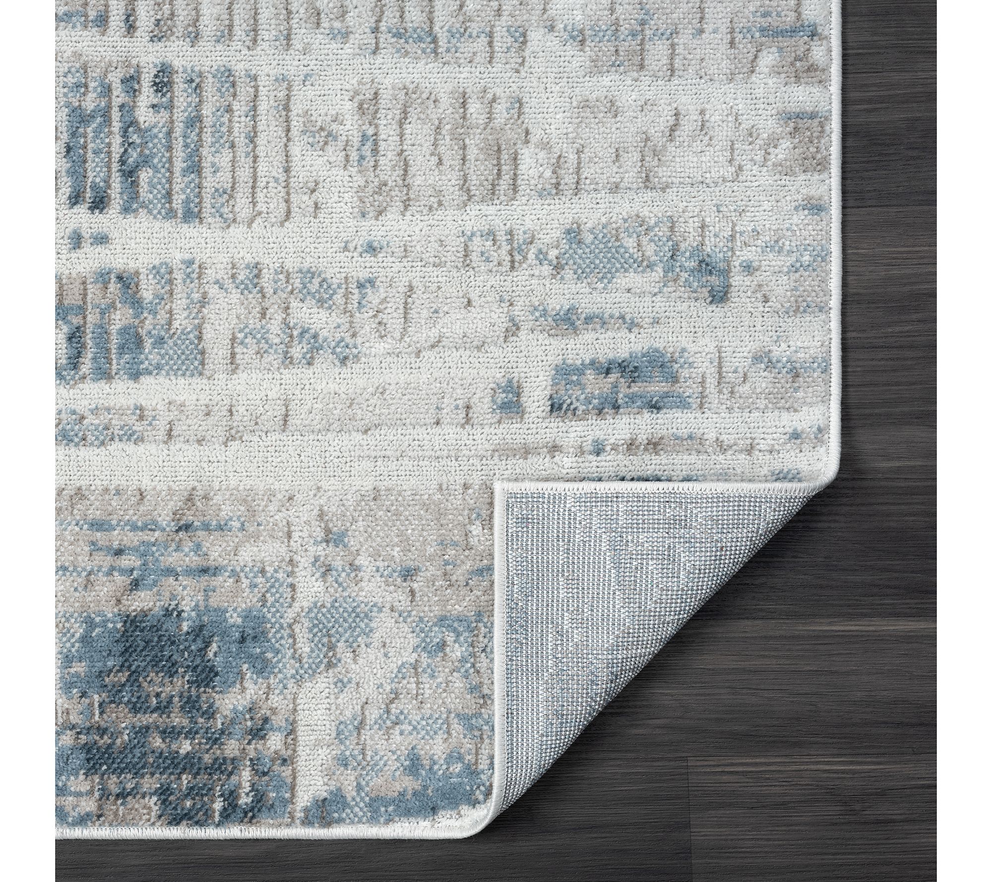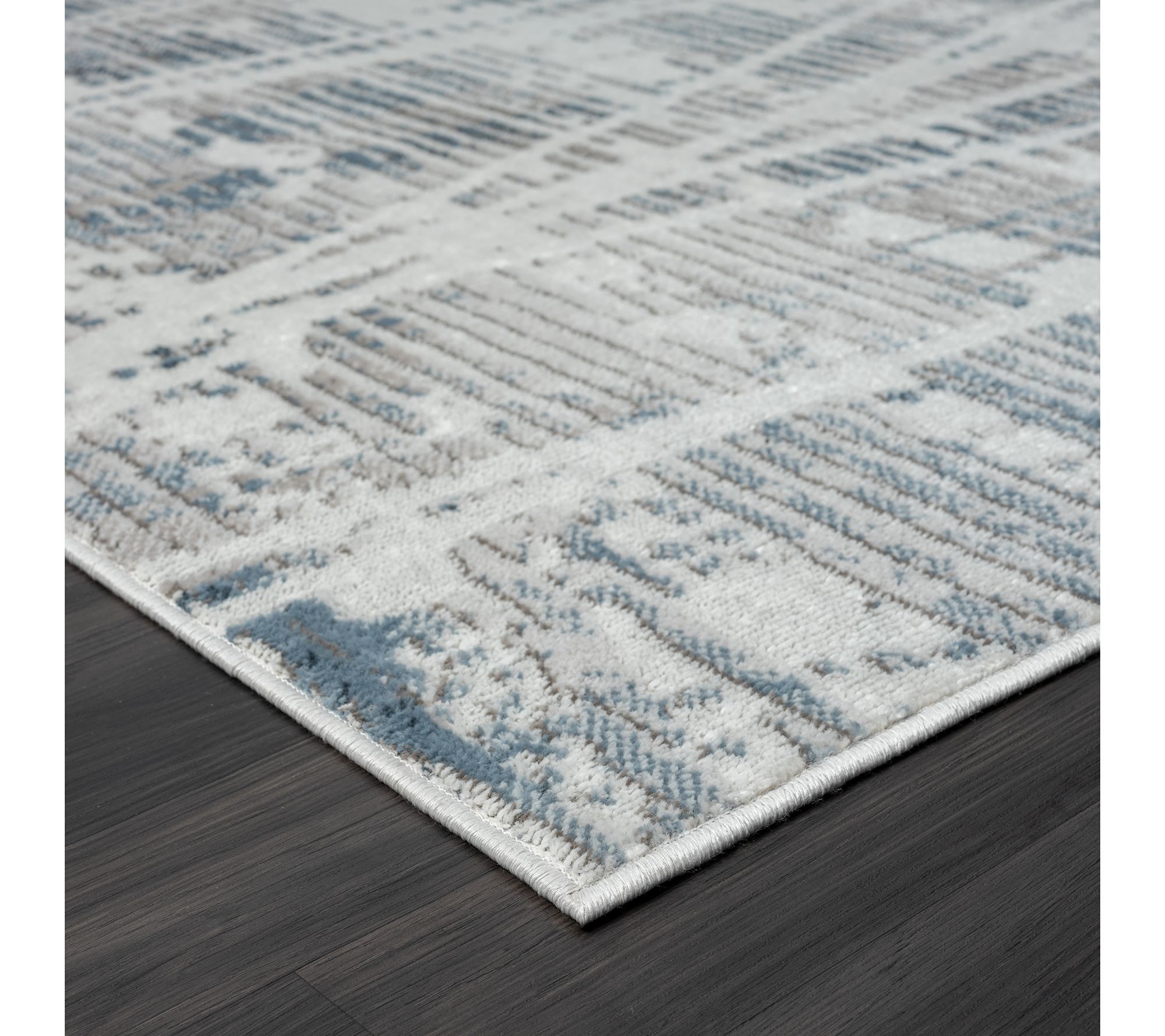Bring contemporary charm to your living room or bedroom with this plush performance indoor rug. The abstract striped design in shades of gray and blue adds a modern touch to any space. Crafted in Turkey, its soft yet durable pile is perfect for high-traffic areas. From Ox Bay.