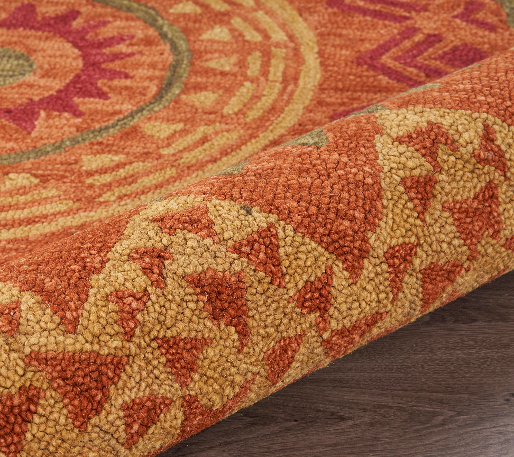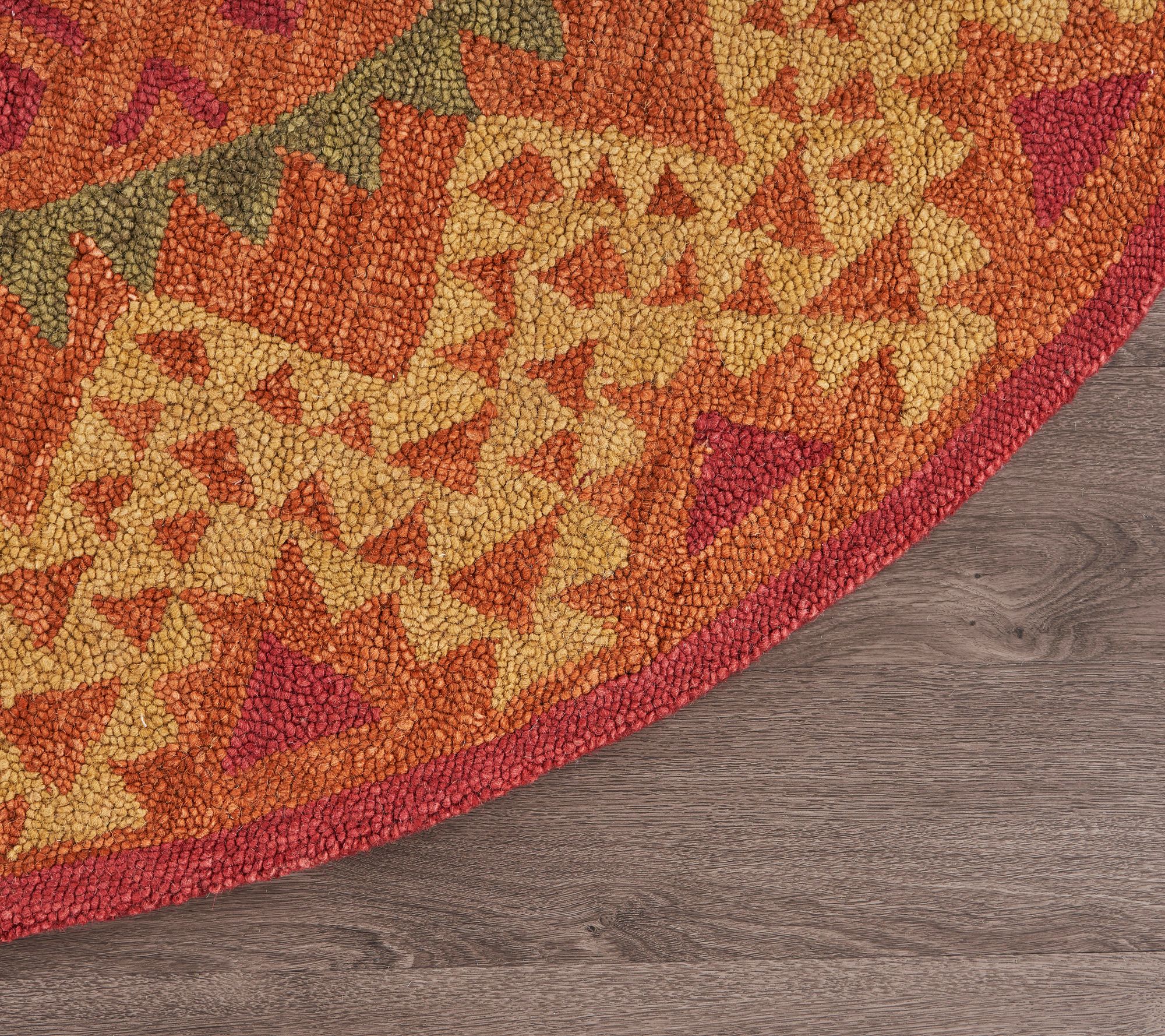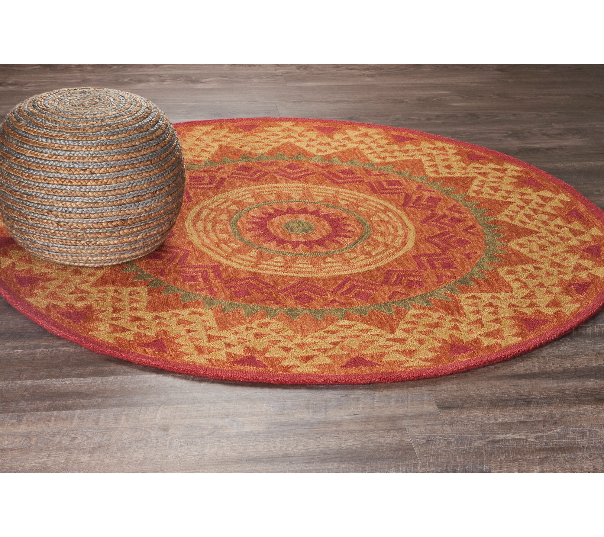 Ox Bay Orange Geometric Medallion Wool Indoor 4' Round Rug