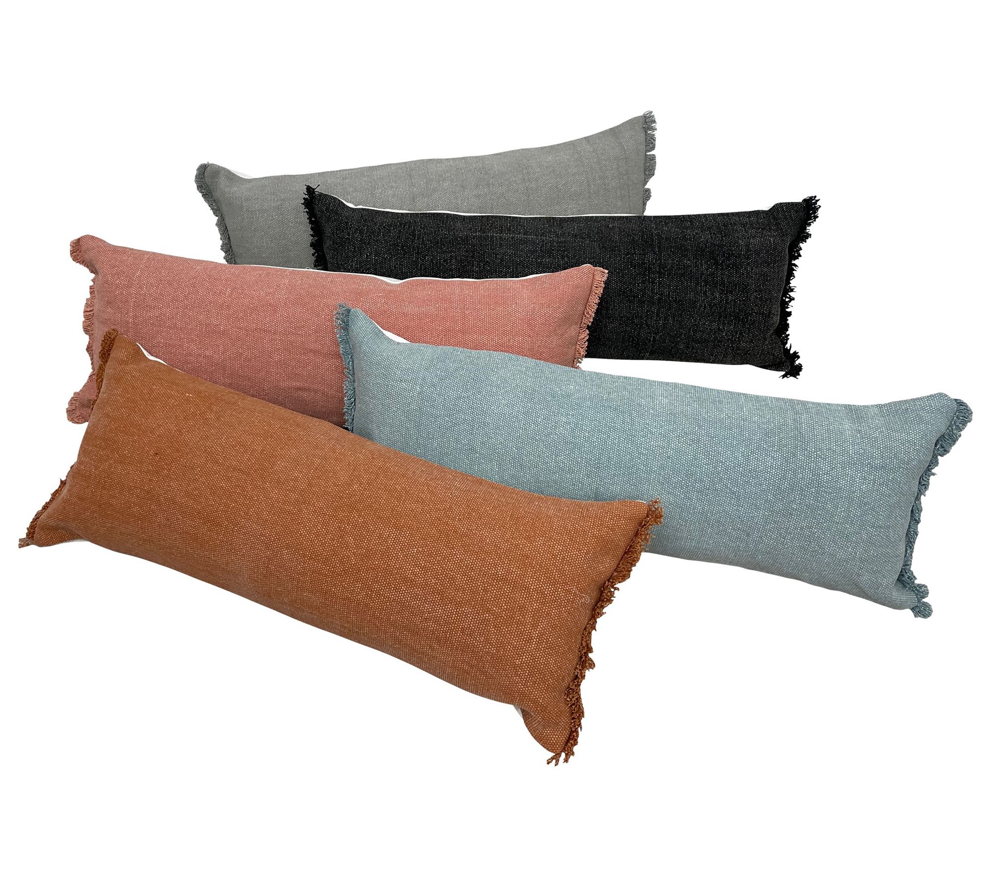 Ox Bay Solid Stonewash Lumbar Throw Pillow with Fringe