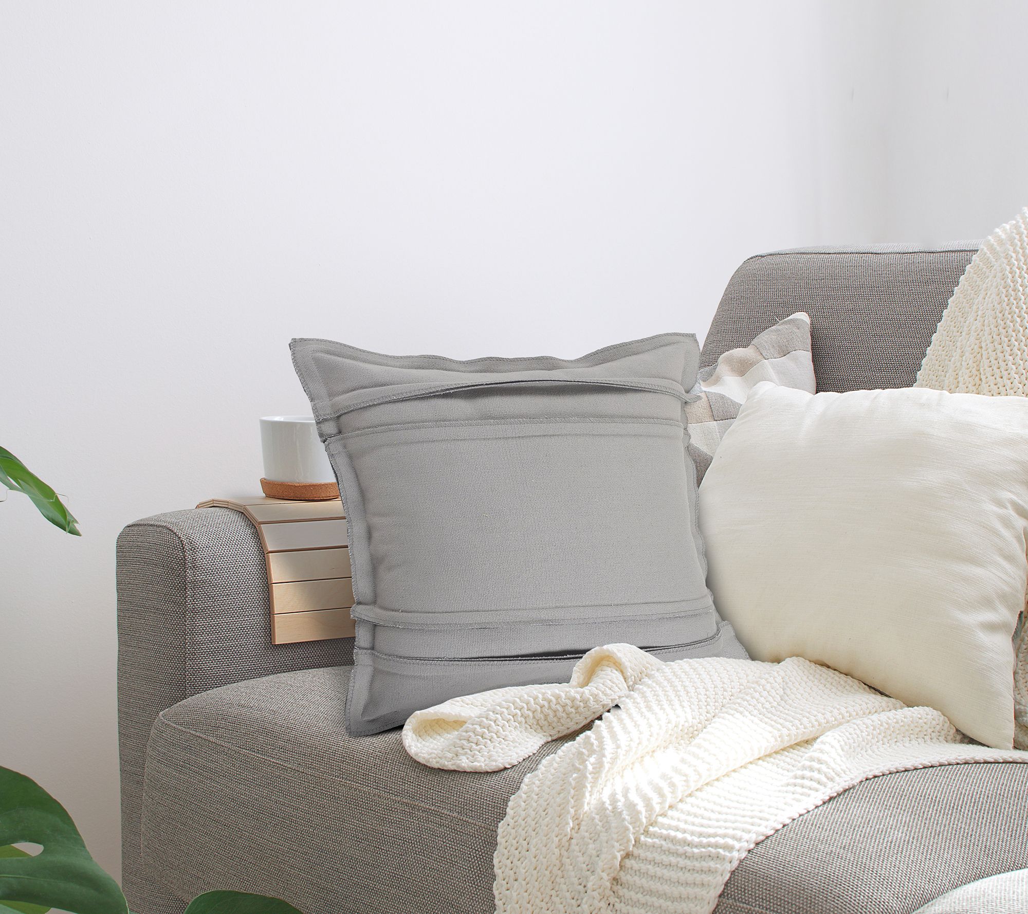 Ox Bay Solid Textured Straps Throw Pillow