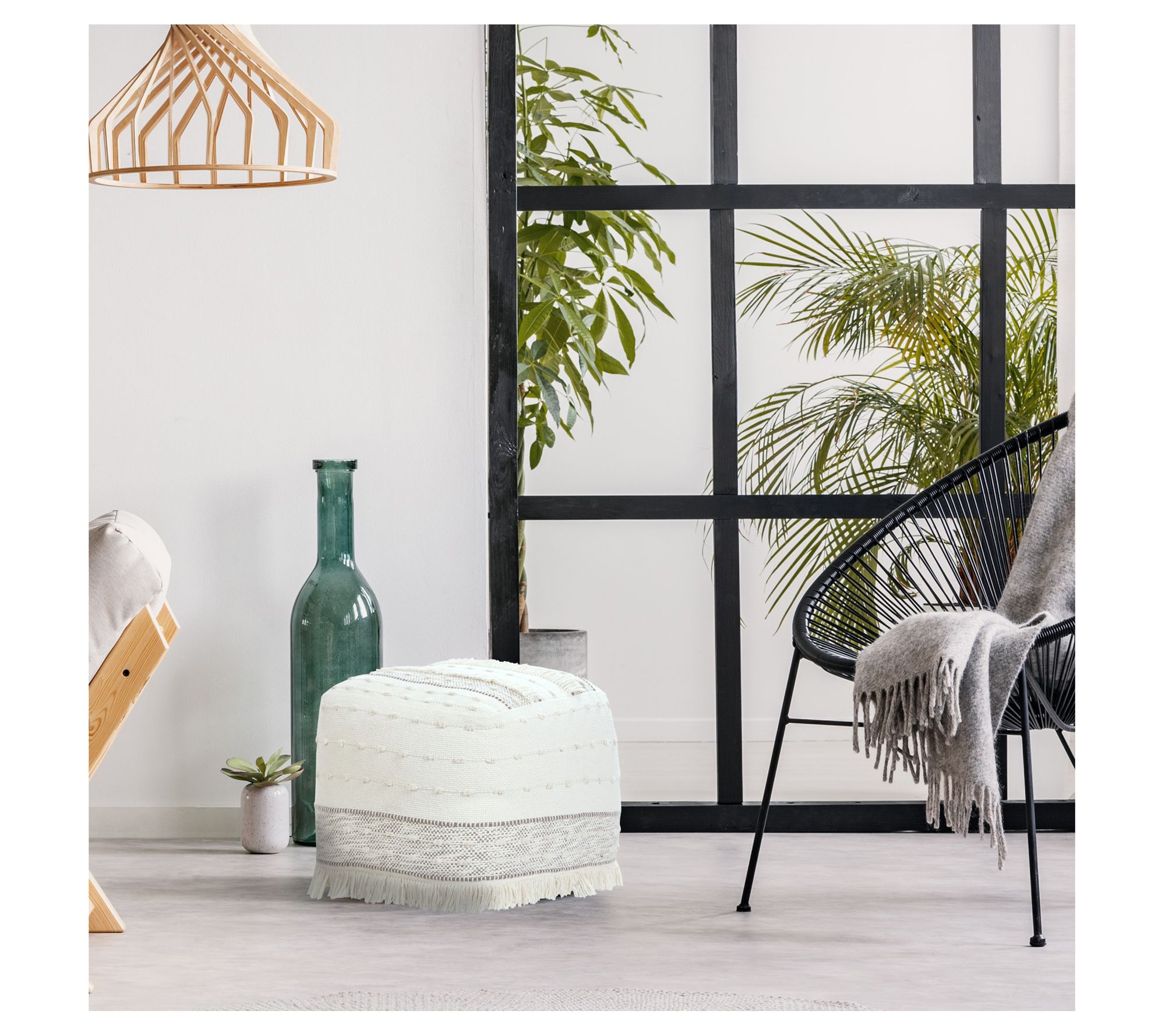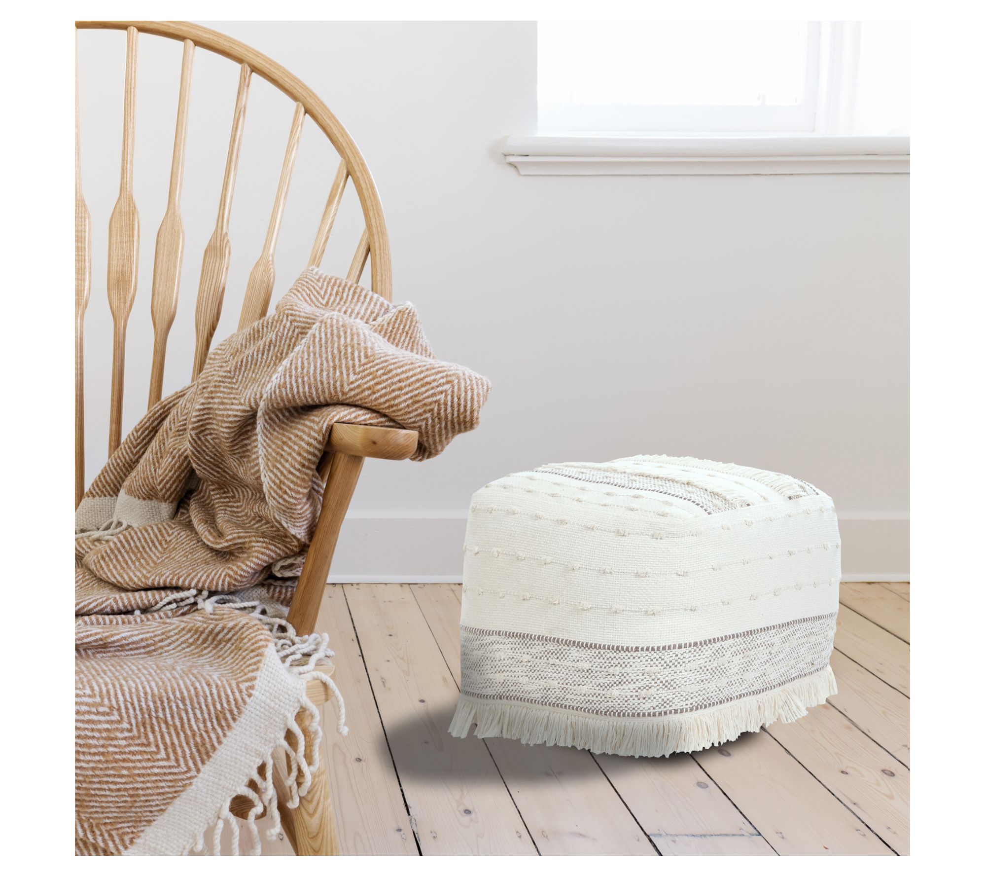 Elevate your space with this pouf ottoman that showcases a woven striped design. It's not just a piece of furniture; it's a conversation starter, adding an artistic flair and comfortable seating all in one stylish package. From Ox Bay.