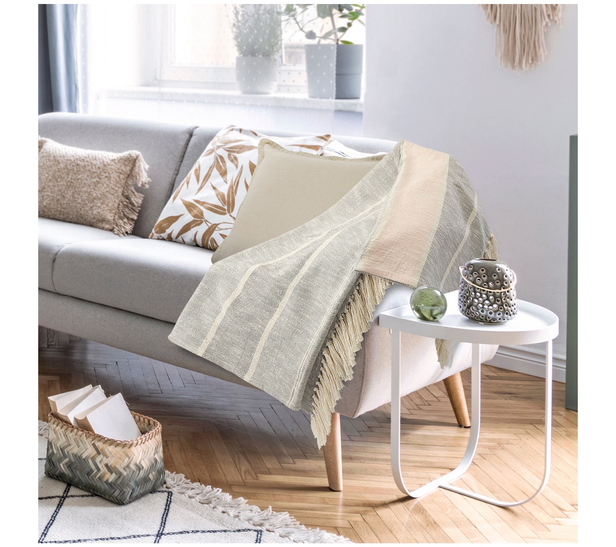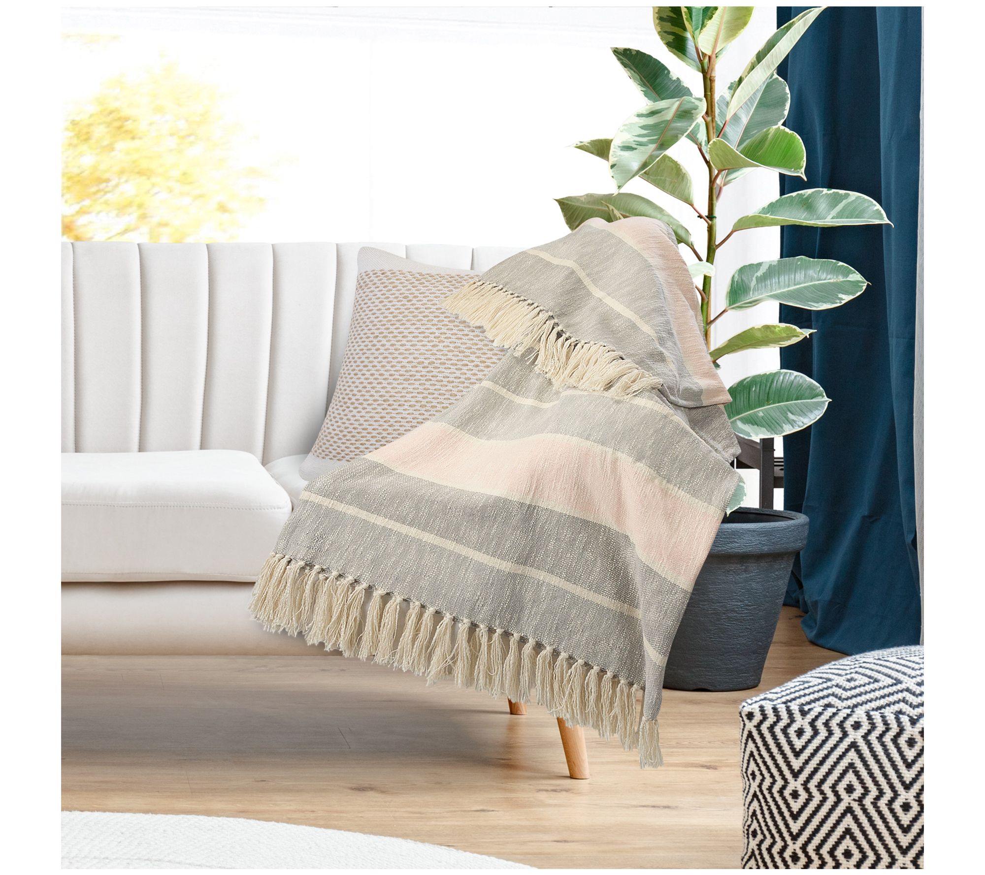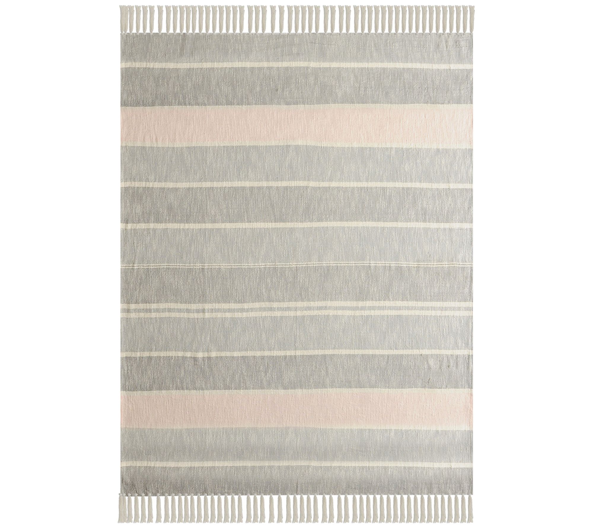 Ox Bay Touch of Blush Striped Throw Blanket with Fringe