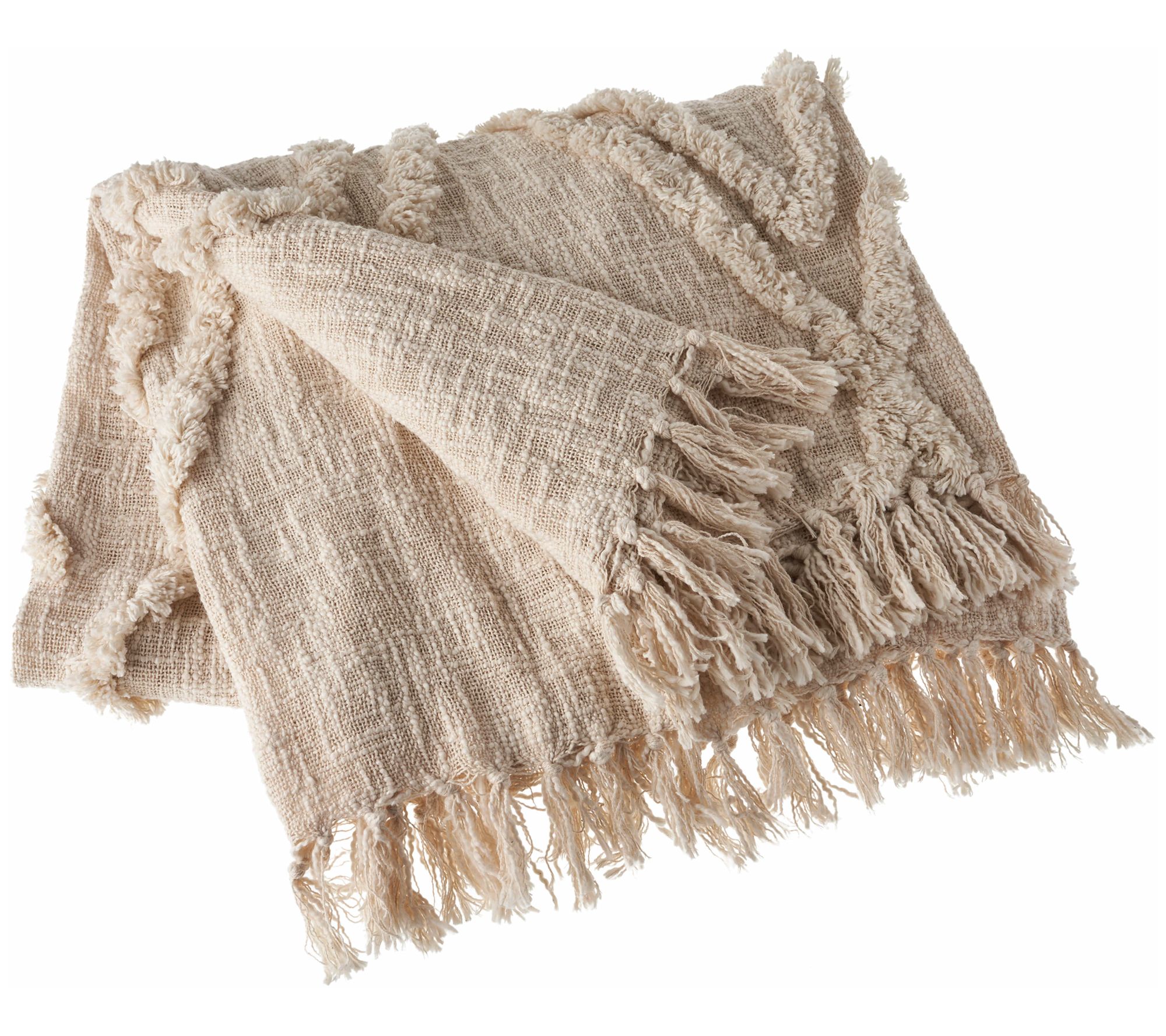 Luxurious, tufted diamond shapes and neutral hues make this throw blanket perfect for cozying up or accenting your home. From Ox Bay Trading & Supply Co.