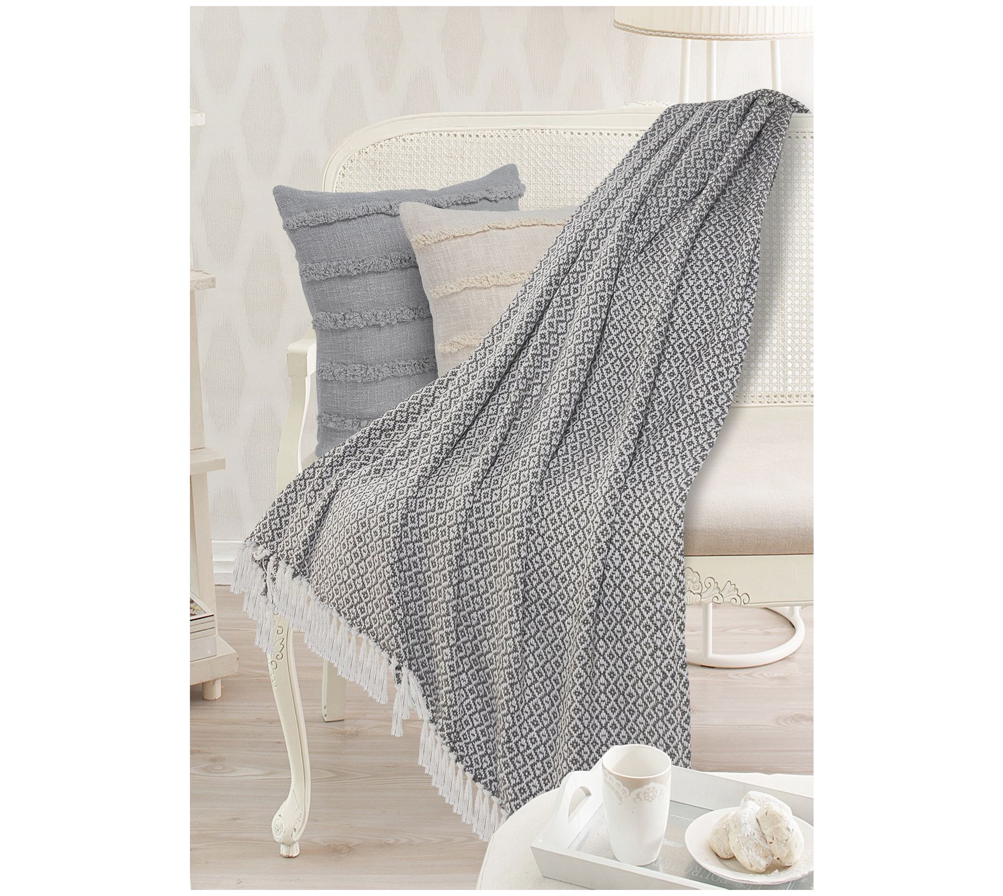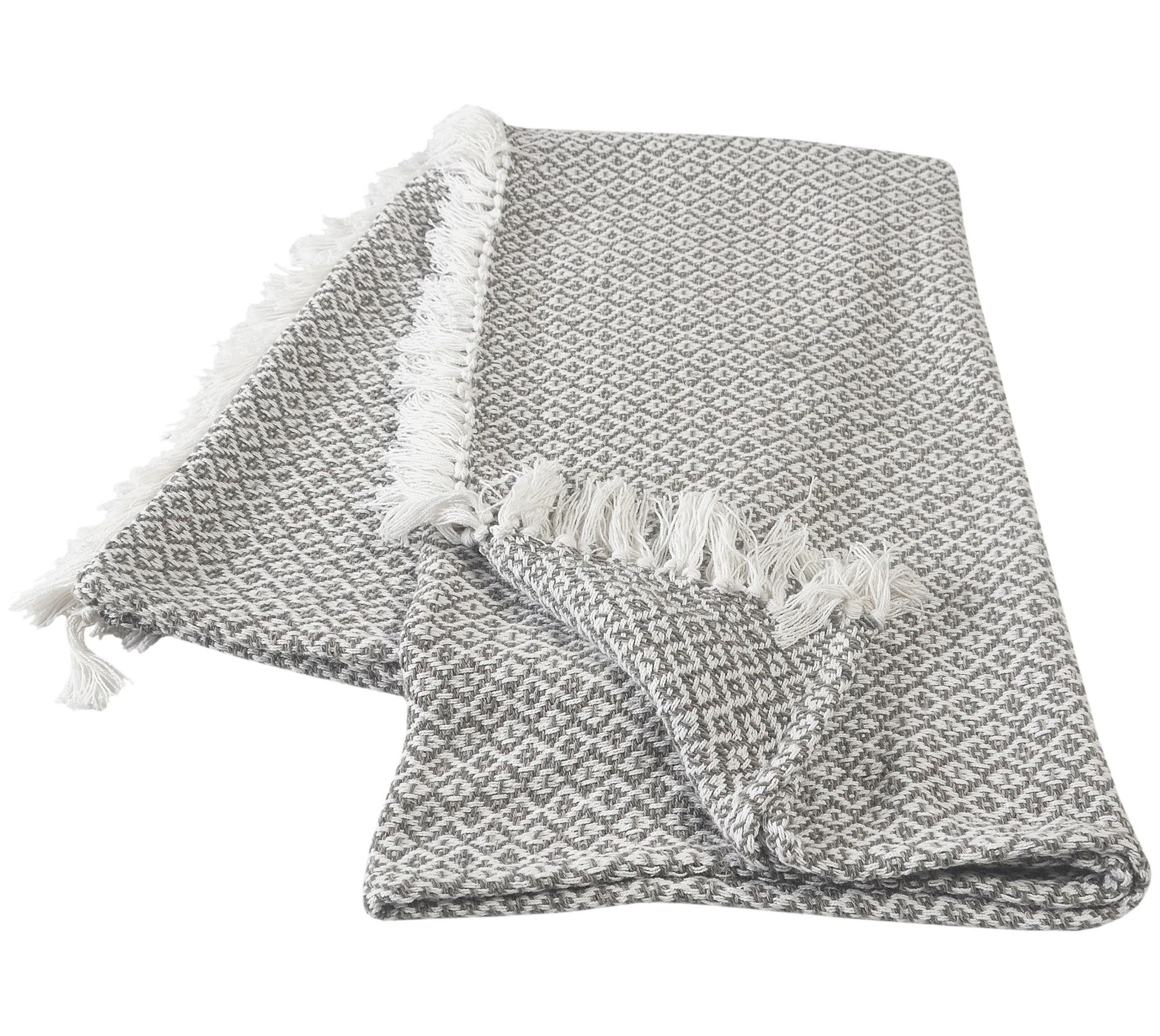 Snuggle up with this soft cotton throw that keeps you cozy while providing cool style thanks to its sophisticated diamond motif and fringed hem. From Ox Bay Trading and Supply Co.