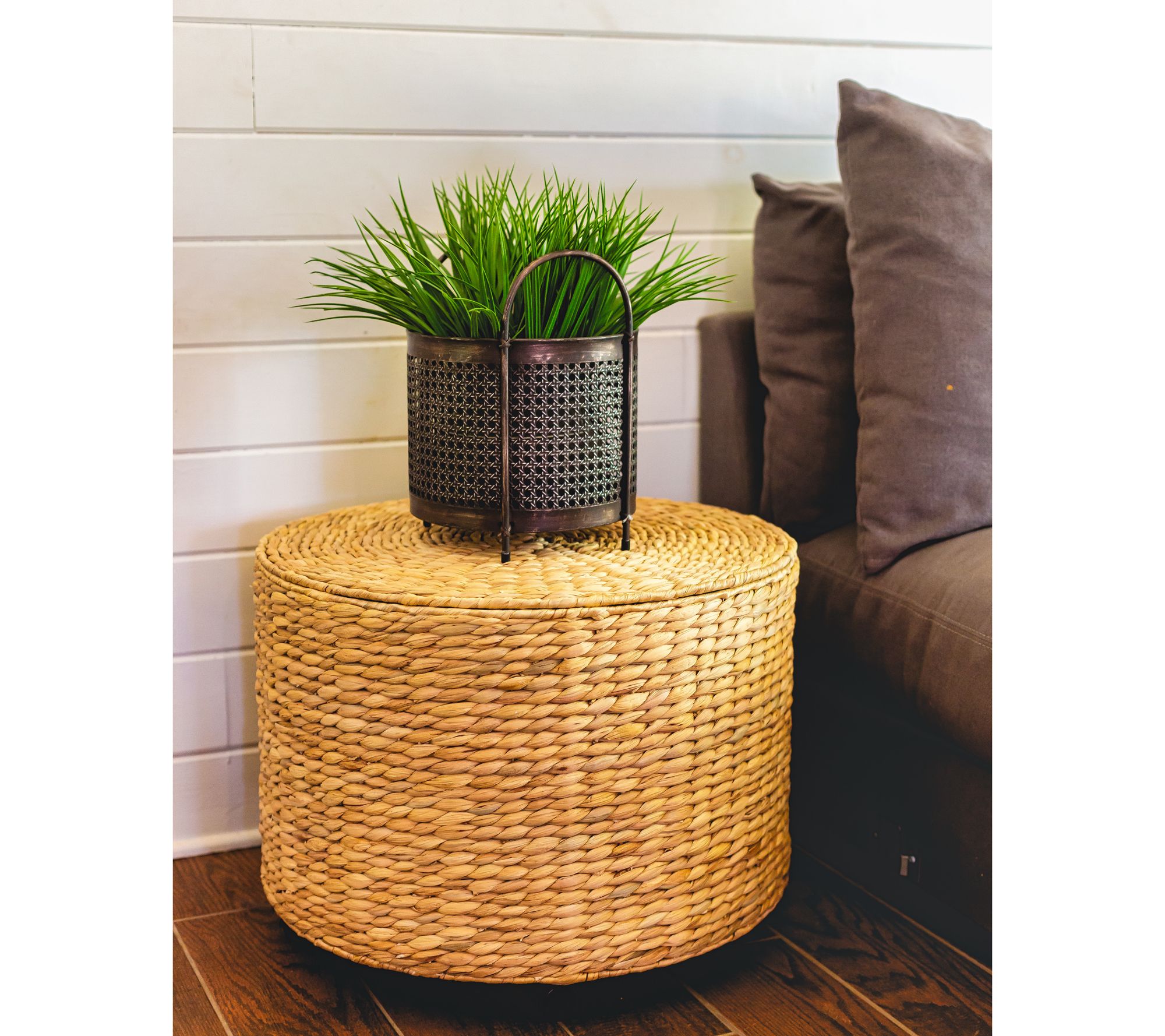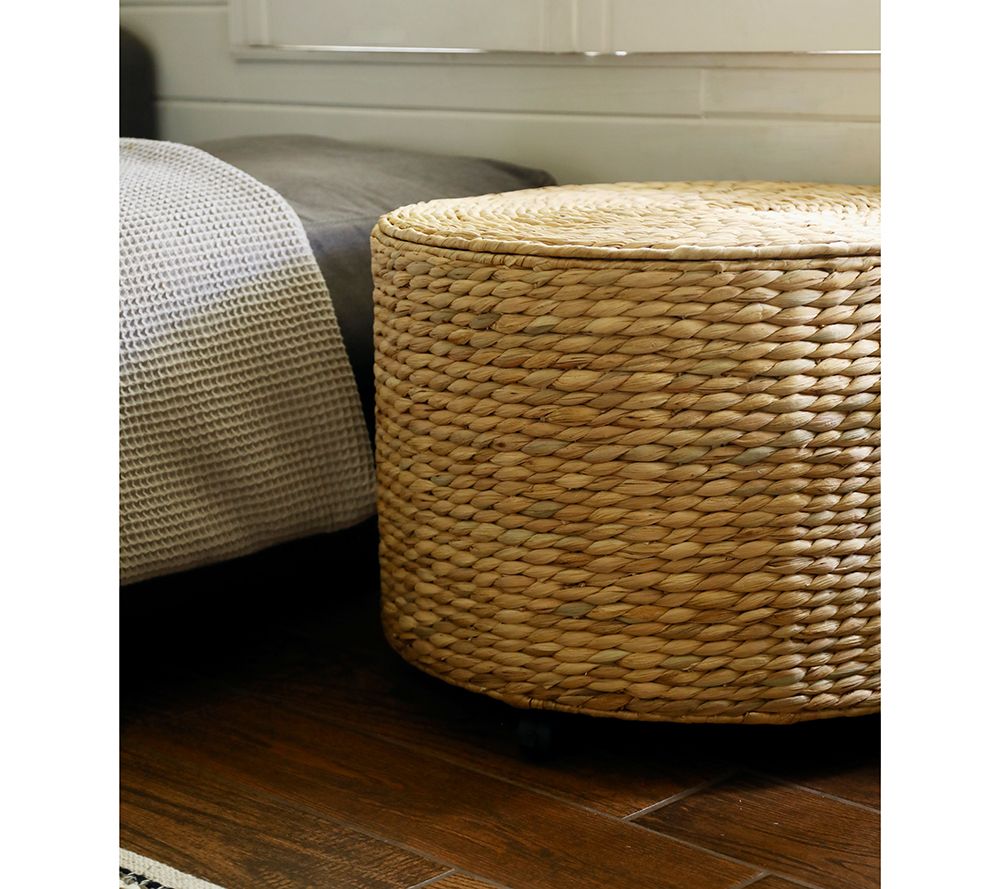 Pacific Thyme Round Water Hyacinth Table Ottoman with Storage