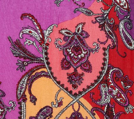 Fresh perspective. Welcome the warmer weather with this delightful paisley scroll-printed wrap. Finished with eyelash fringe on both ends, the colorful design will look fabulous over tops and dresses alike. From VT Luxe.