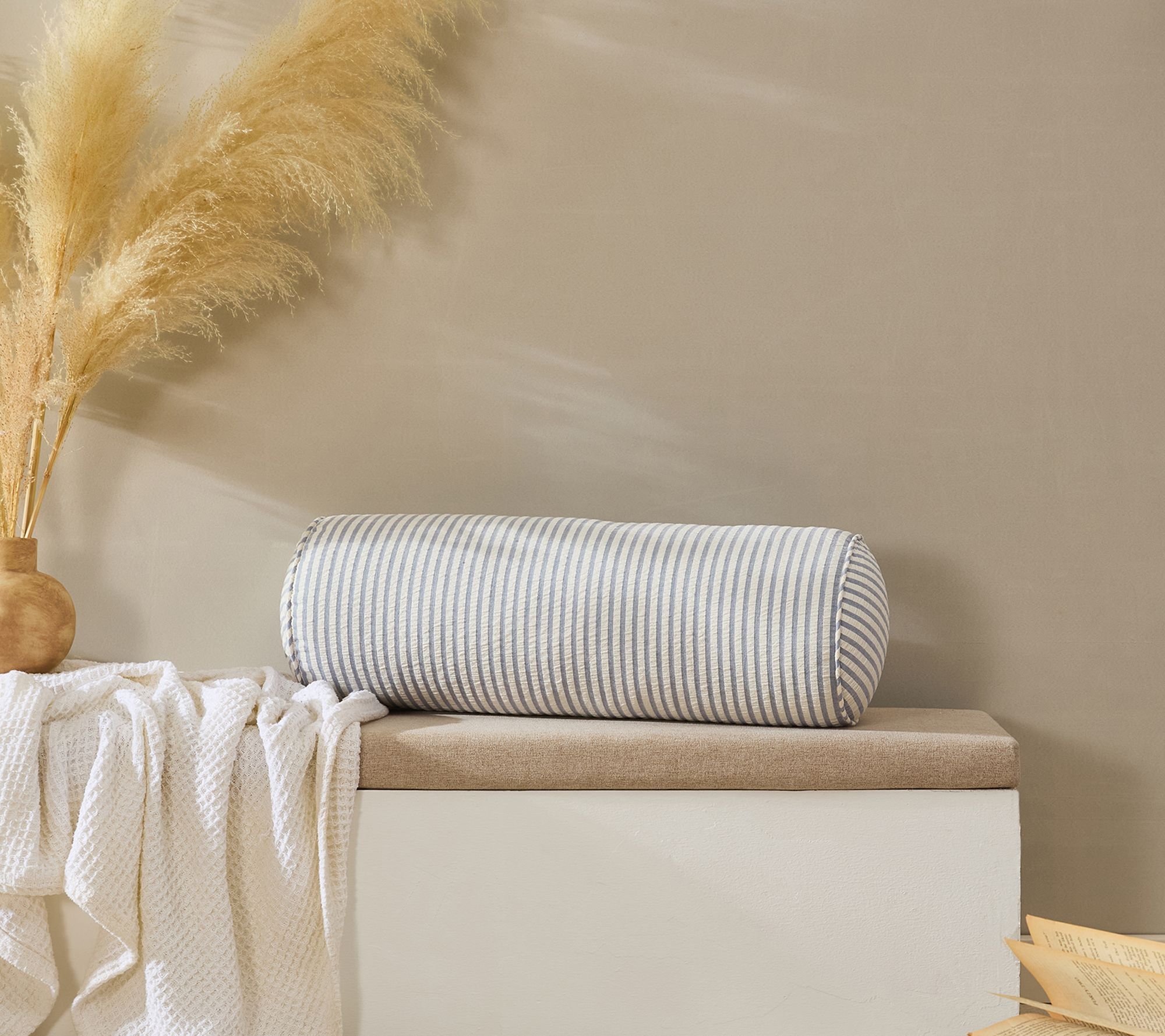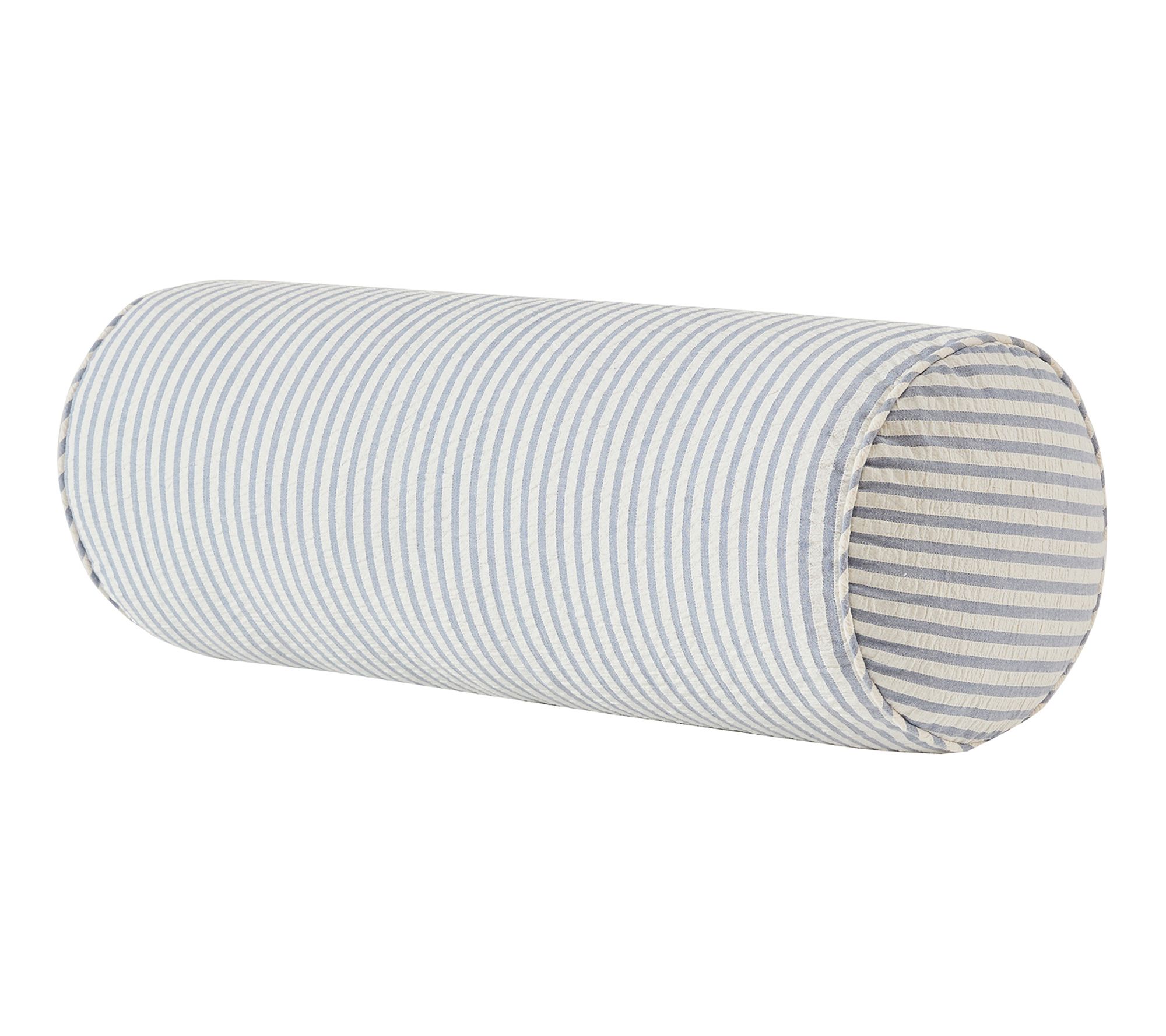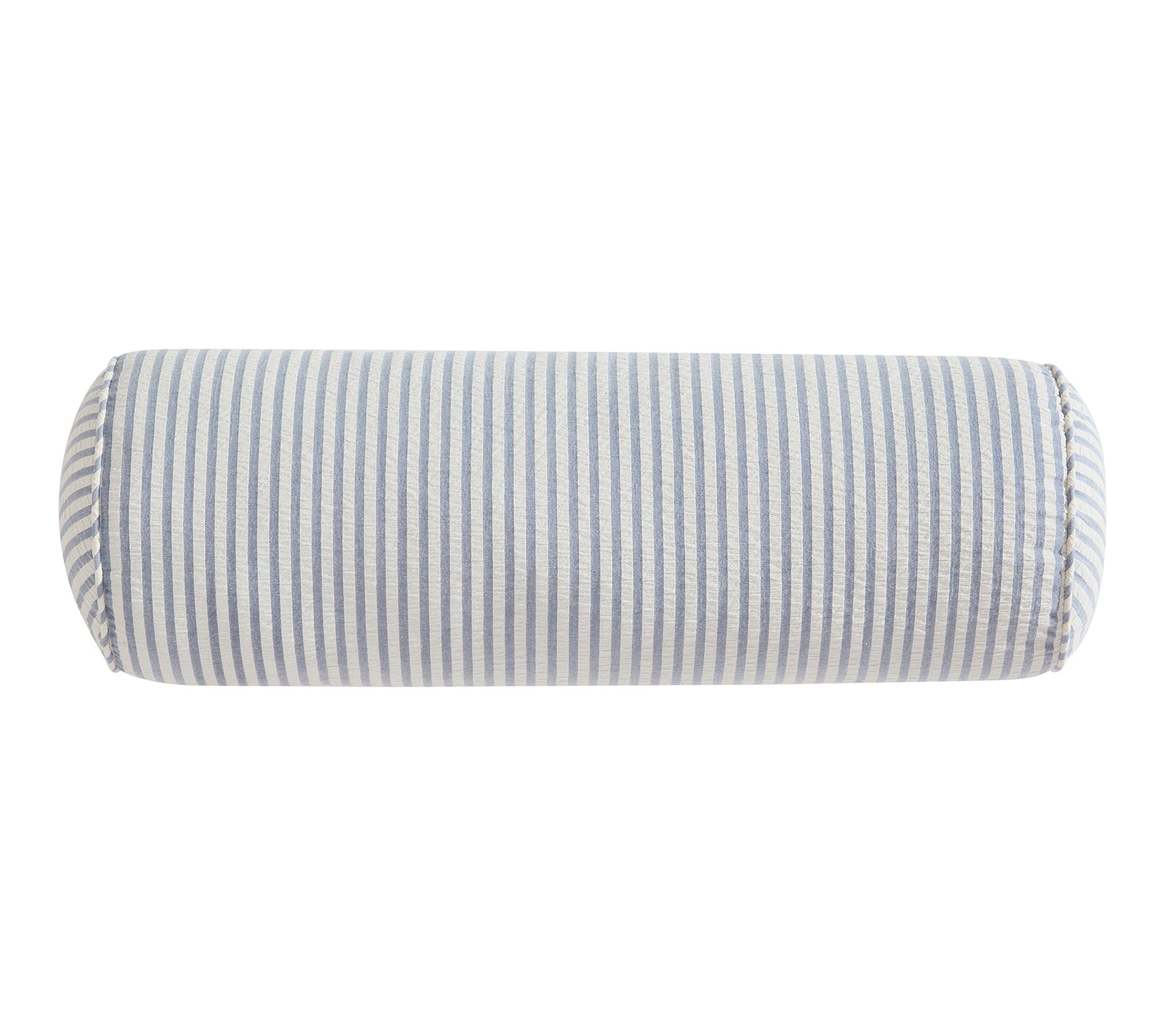 Calm the mood in any room with this decorative pillow's signature blue and white stripes and breezy seersucker texture -- perfect for brightening up a bed, sofa, or favorite reading nook. Cylindrical and corded at the ends, this bolster lends classic coastal flair wherever you need a dose of relaxation. From VCNY Home.