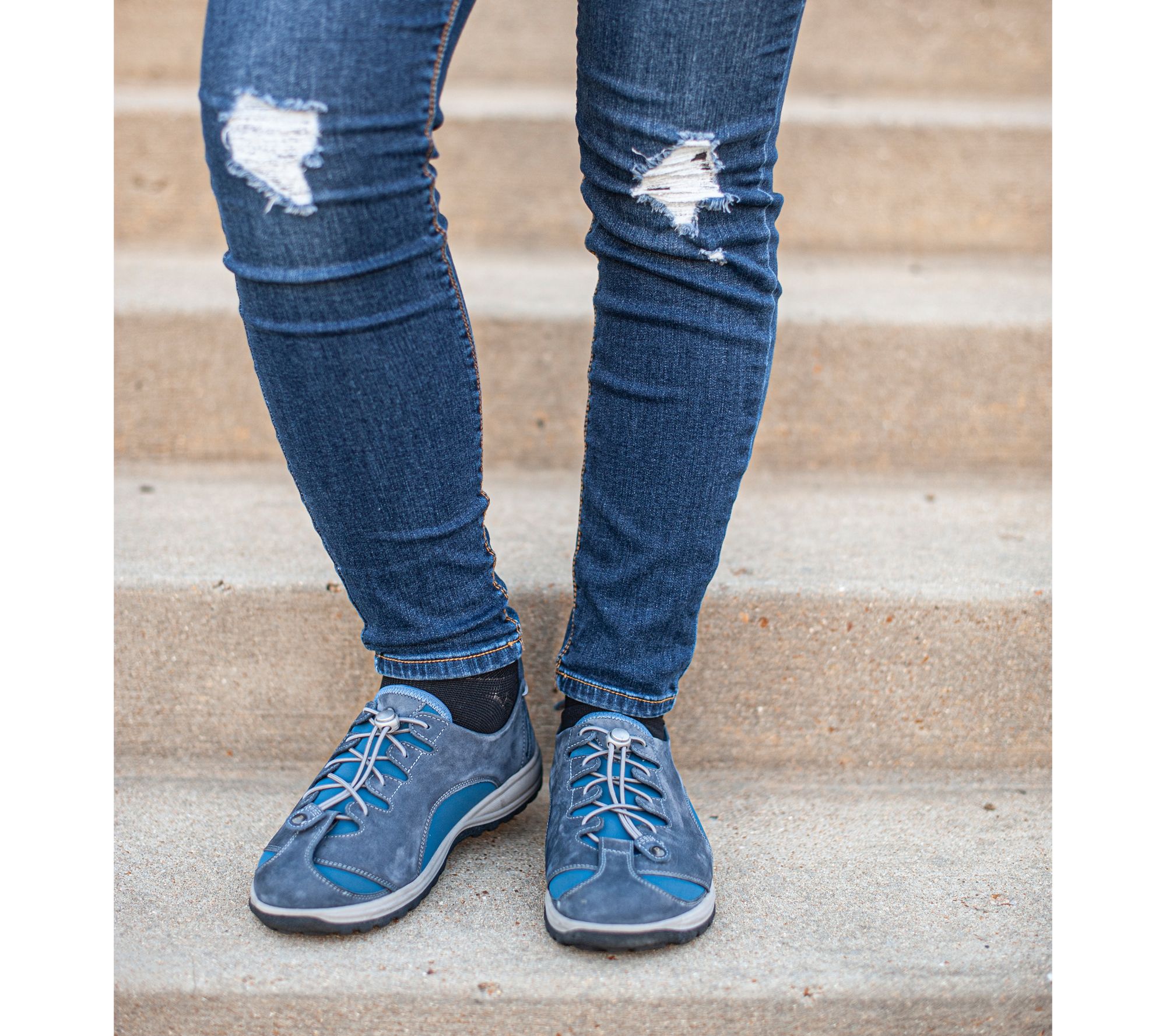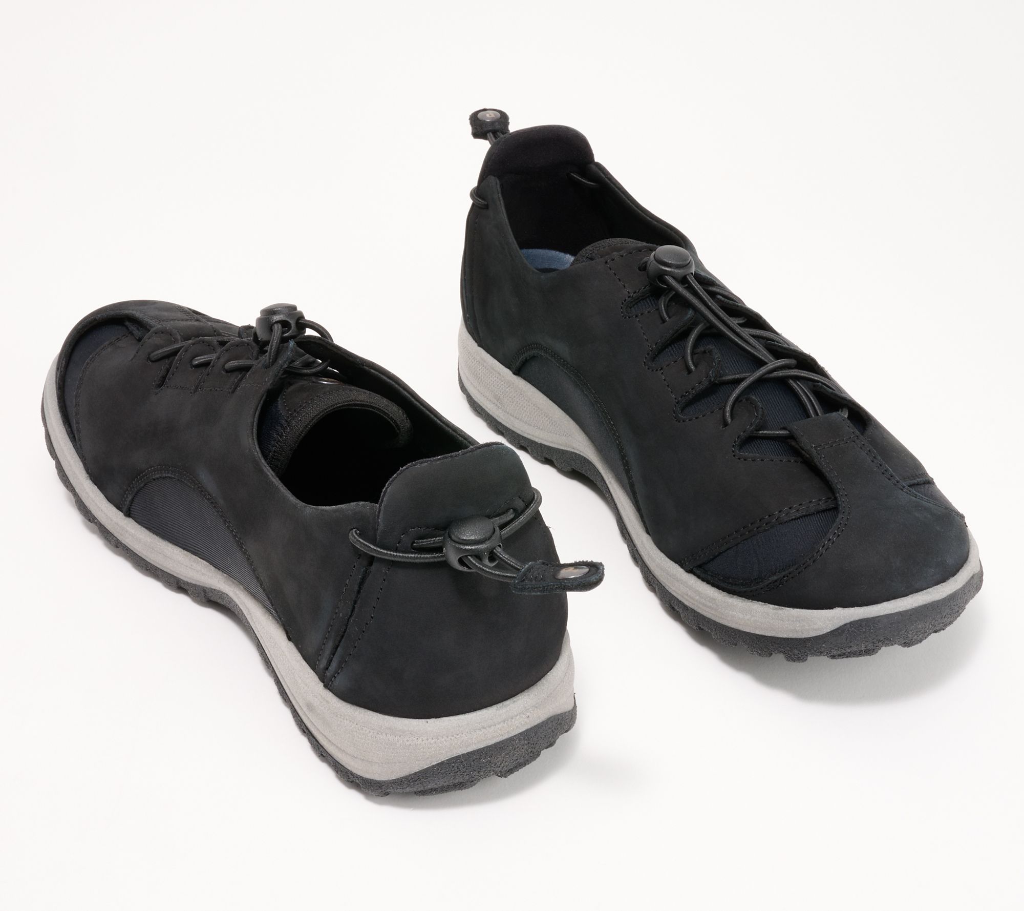 So easy to slip on and off, these expandable leather sneakers feature a bungee slide lacing system, providing a custom fit that doesn't require tying. Stretch panels along the heel and sides accommodate various foot shapes and sizes for ultimate, all-day comfort. From Pandere.