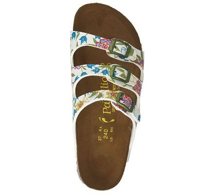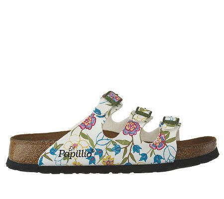It's the season for sandals! These pretty paint and stitched flower-print sandals with adjustable triple straps add style and comfort to your spring wardrobe. The padded insole and textured outsole make them perfect for all-day wear. From Papillio.