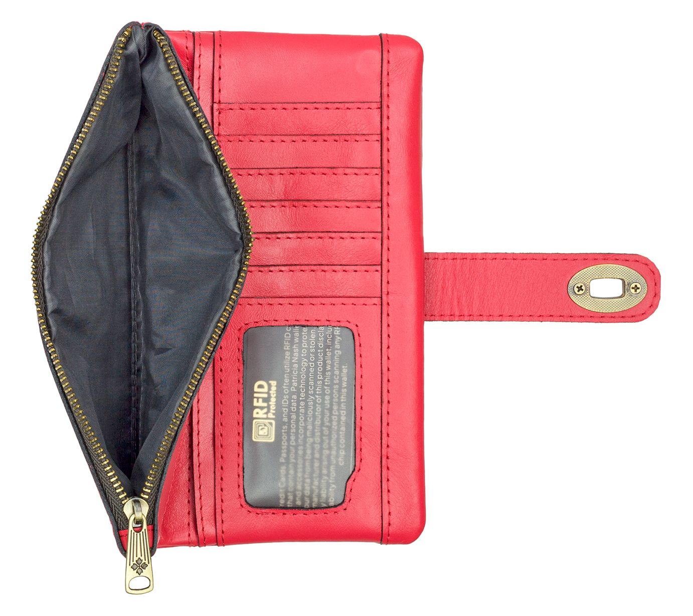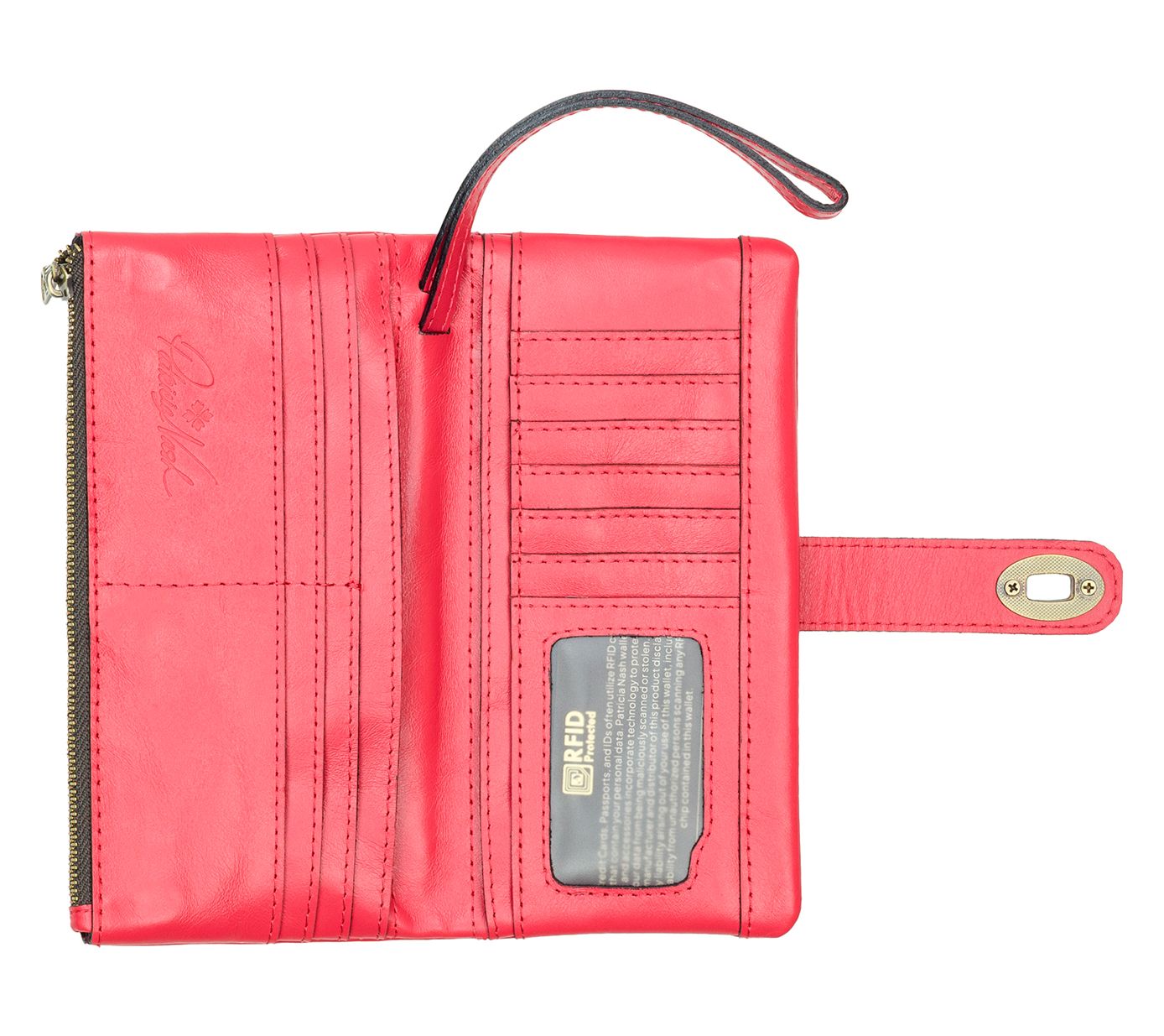 Carry your essentials in style with the Patricia Nash Annesley Wristlet. Sleek and sophisticated, this wristlet pairs vintage distressed leather with Patricia Nash's signature brushed metal hardware. Its smart design includes multiple card slots, bill pockets, and a secure twist-lock closure, keeping everything organized and safe. Perfect for day or night, this versatile wristlet is a chic addition to any outfit. From Patricia Nash.