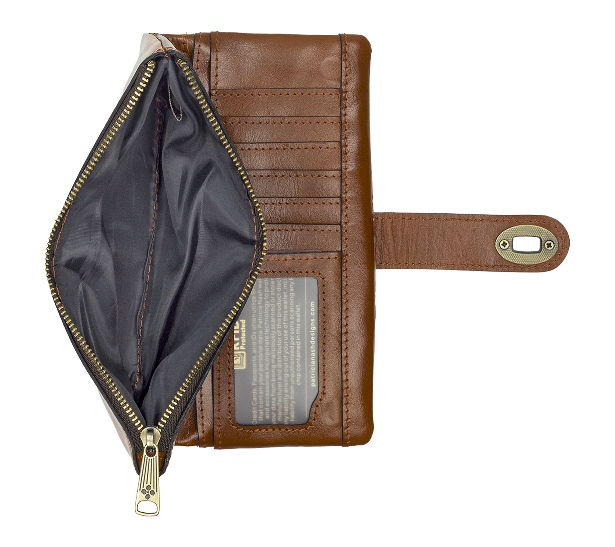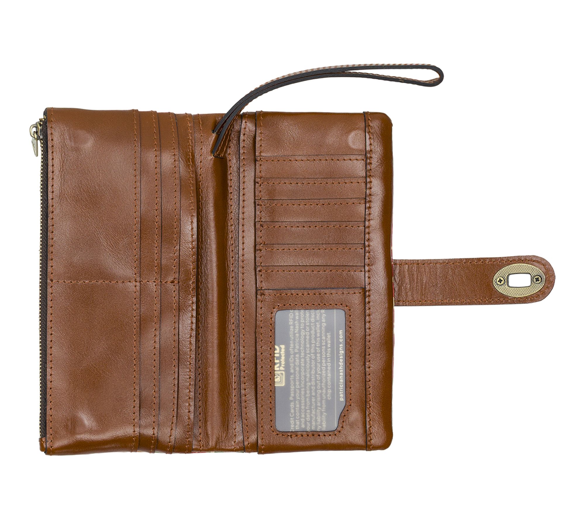 Slip this wristlet into your everyday routine or evening plans and let the vibrant French Hydrangeas print add a pop of charm to your look. With artisanal craftsmanship and secure twist-lock closure, it keeps essentials organized while the retractable wristlet strap ensures you're ready for errands or an impromptu dinner out. From Patricia Nash.
