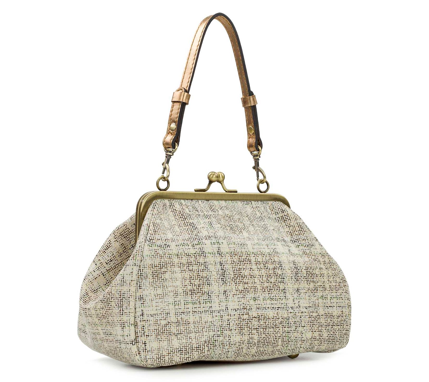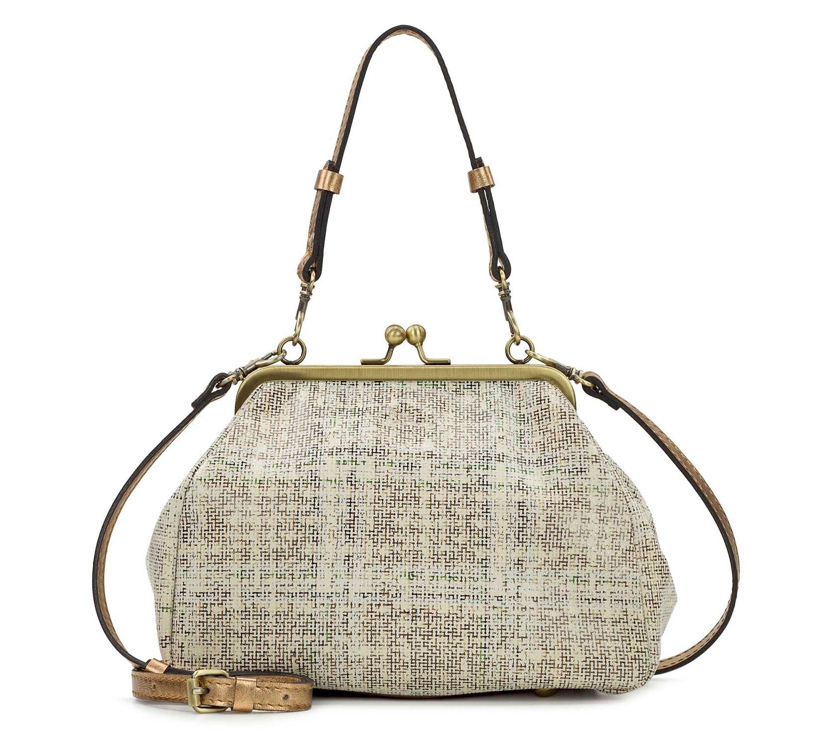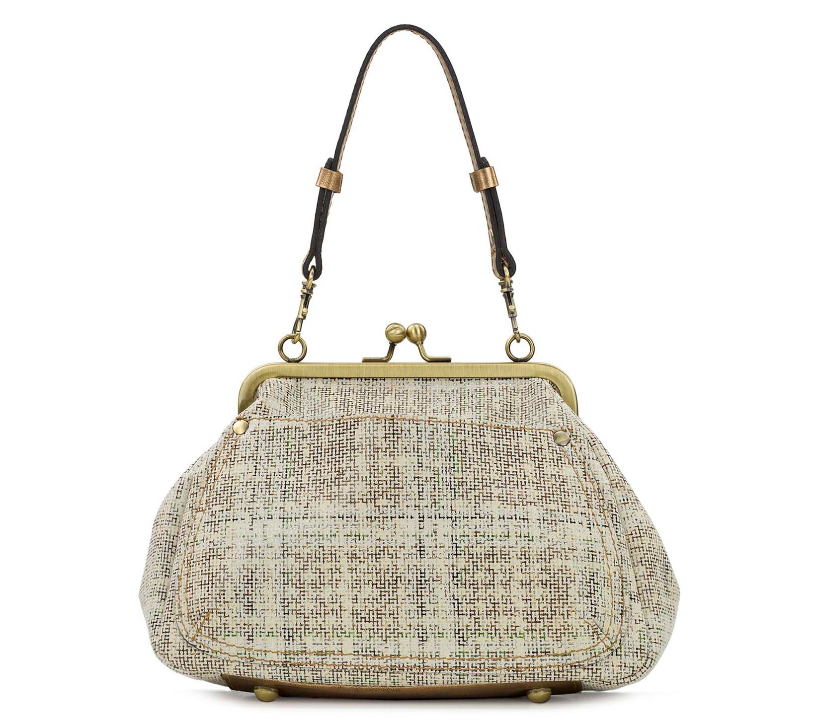 Patricia Nash Annie Golden Herringbone Tweed Leather Frame Bag