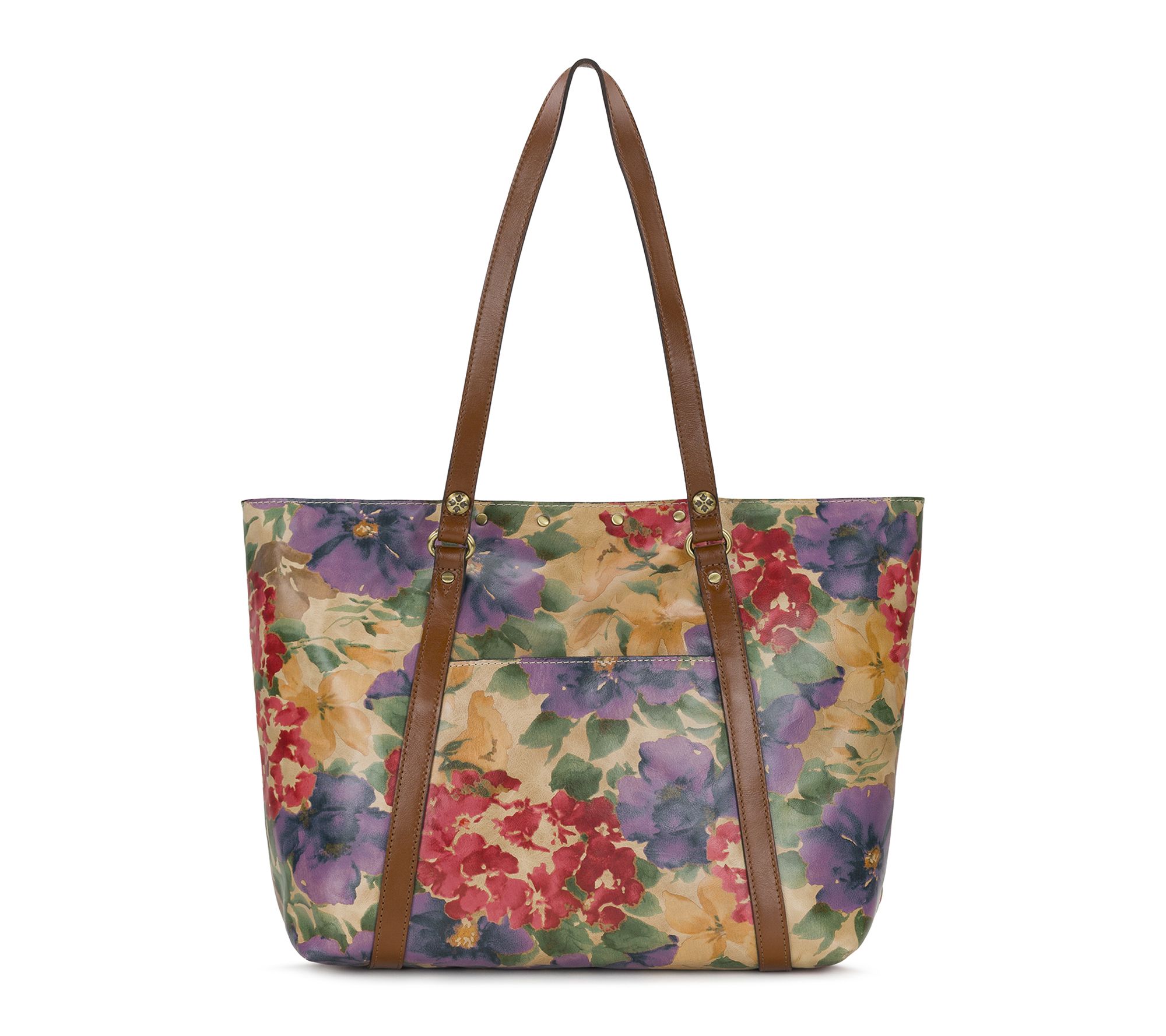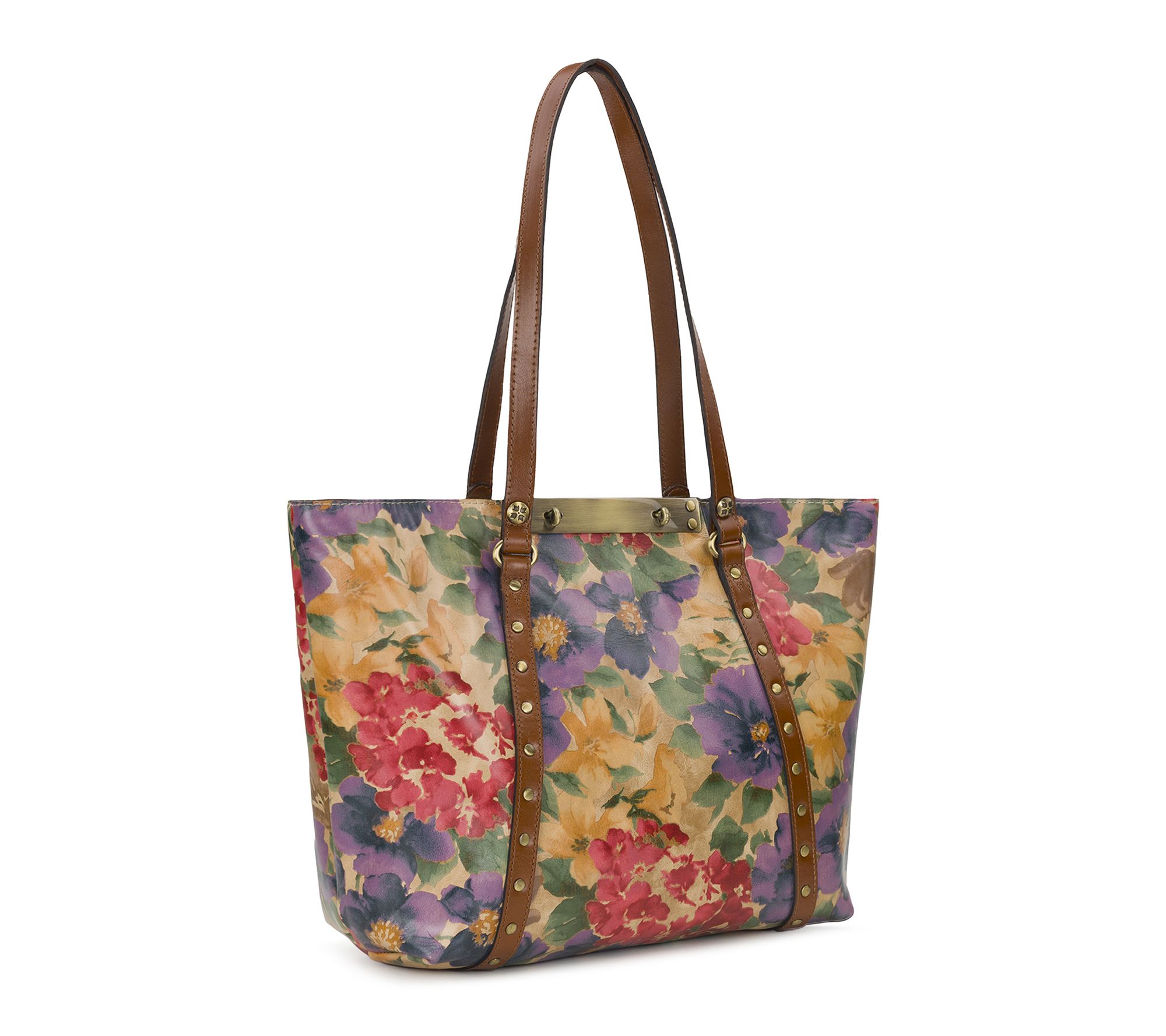 Take on your day with confidence -- this elegantly bold tote transitions effortlessly from boardroom meetings to weekend escapes. Stud details add flair, while double handles make for easy, comfortable carrying. French Hydrangeas print and signature medallions bring timeless beauty to every occasion. From Patricia Nash.