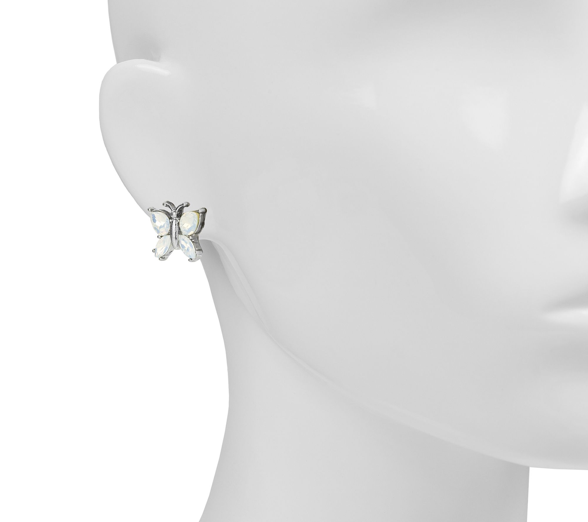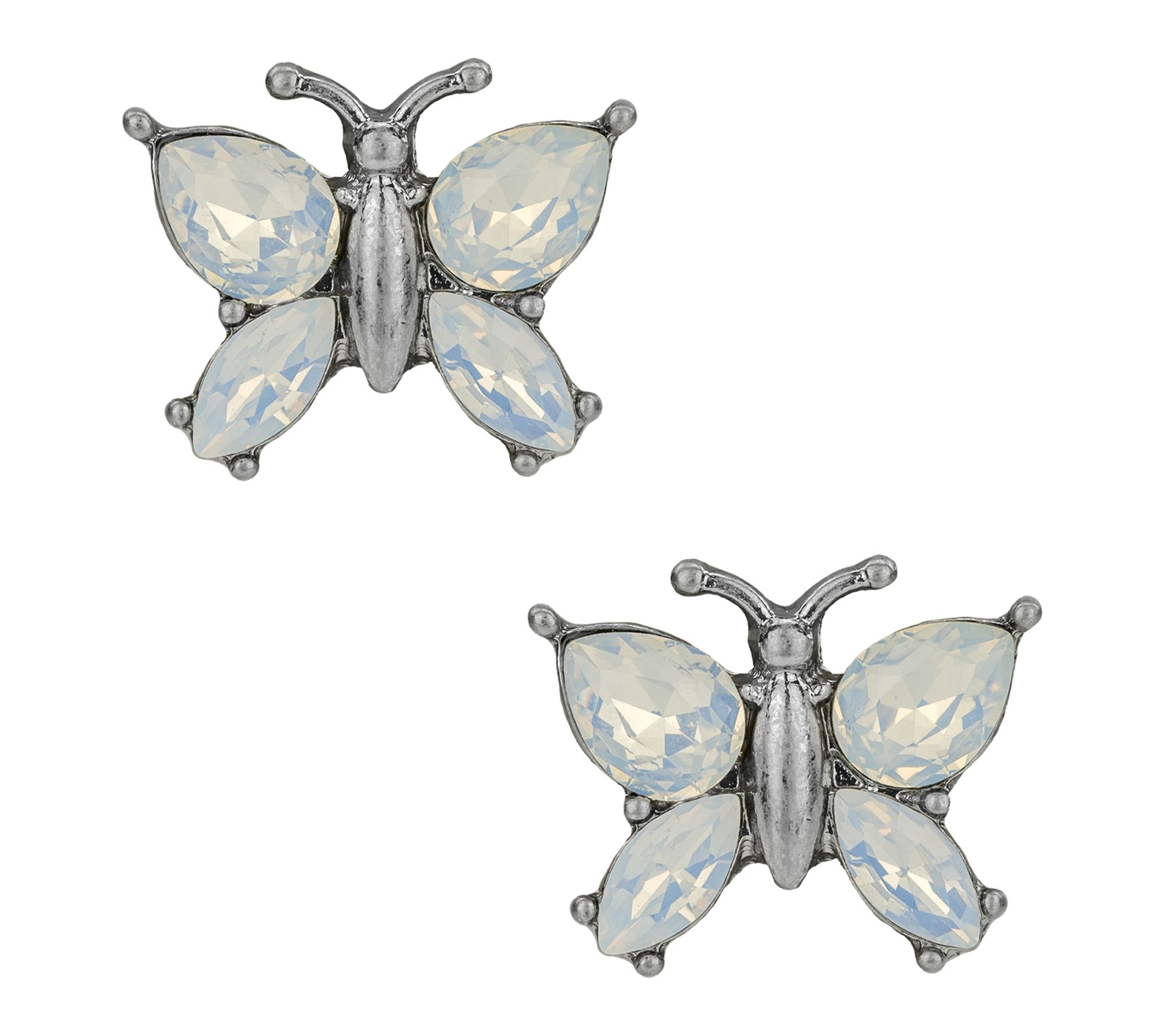 Add a touch of whimsy to your look with these butterfly-inspired stud earrings, sparkling with blue and gray crystal accents. Their shimmering wings catch the light as you move, making them a delightful choice for any daytime outing or evening occasion. From Patricia Nash.