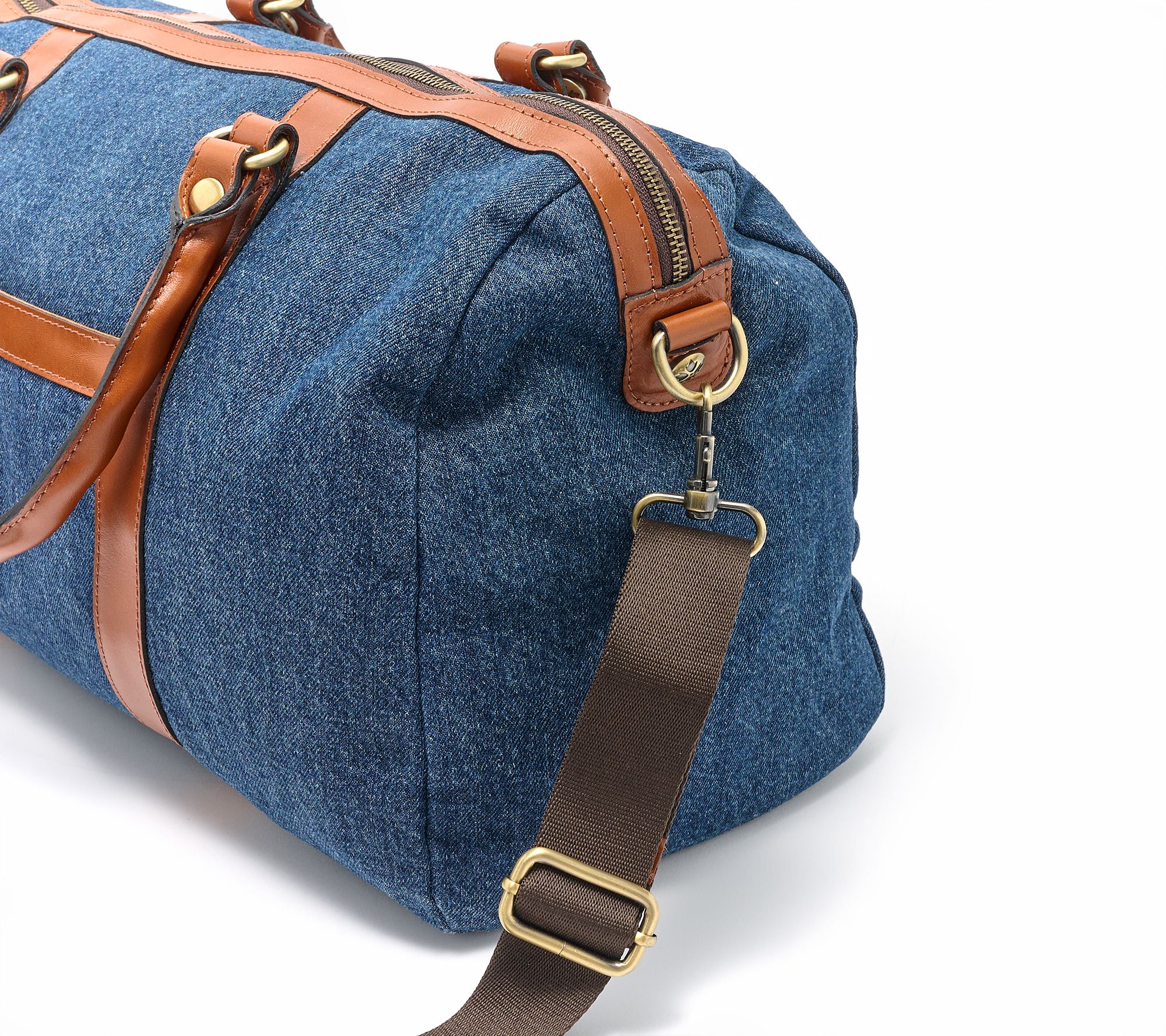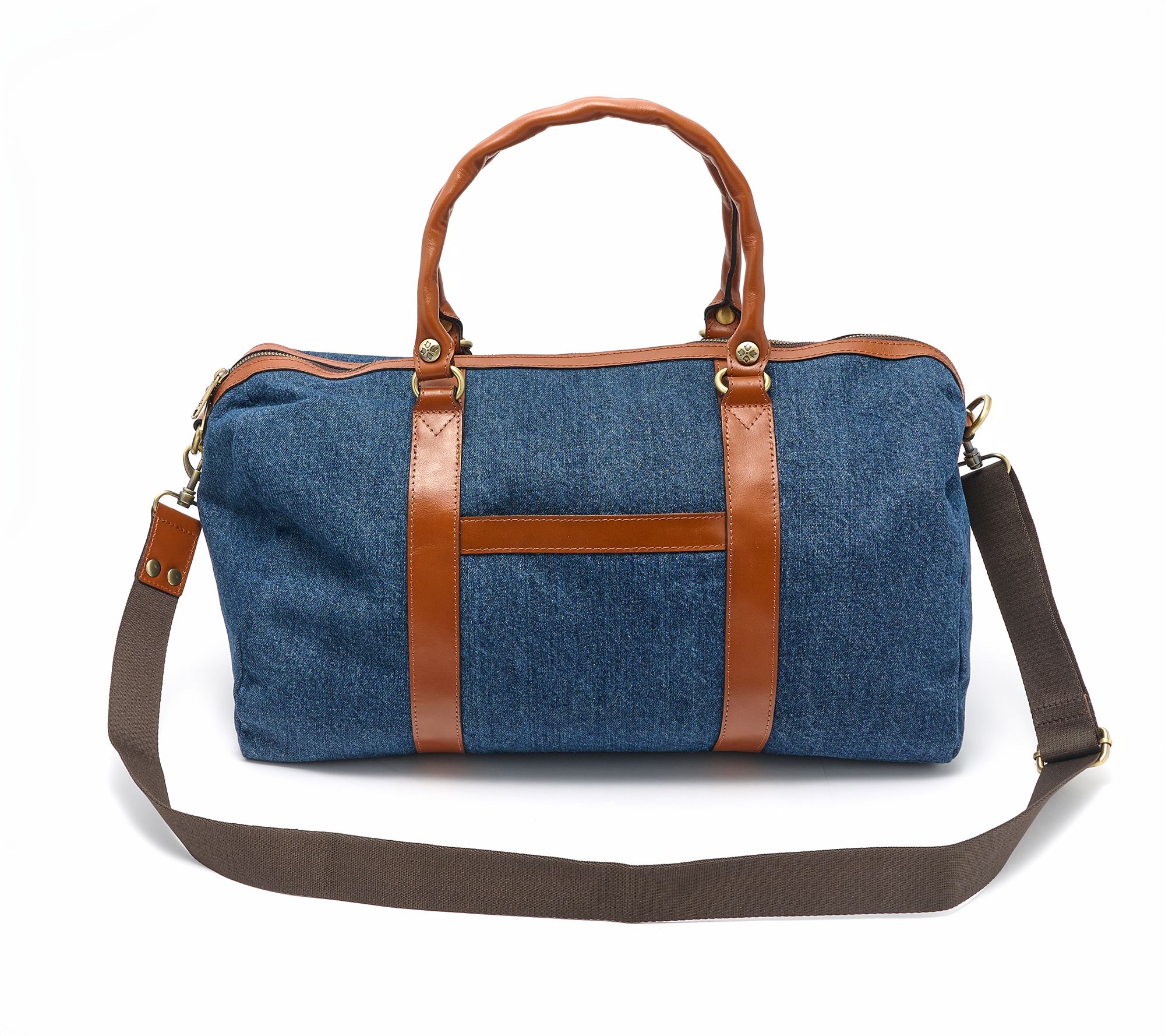Take your travels to the next level with the Patricia Nash Denim Milano Weekender. Stylish stud details add flair, while multiple pockets keep essentials organized. Effortlessly carry with top handles or the adjustable strap. The zipper closure helps keep everything secure, making it a smart companion for weekend trips or quick getaways. From Patricia Nash.